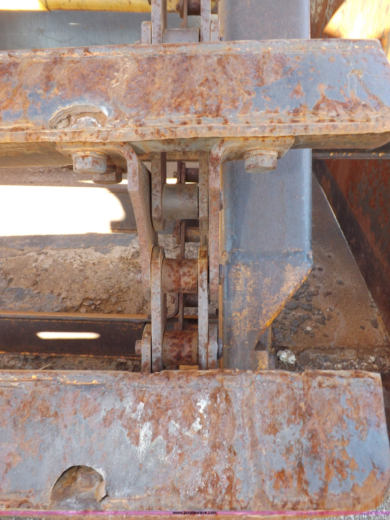 1971 John Deere 860 elevating scraper. 1,252 hours on first hour meter, 840 hours on second hour meter, Detroit 6057N six cylinder diesel engine, Powershift transmission 5F-1R gears, Differential lock, Heat, Air suspension seat, 15 cu. yd. capacity, 8'9"W three section reversible cutting edge, Hydraulic lift, gate, and elevator controls, Elevator reverse, Hydraulic brakes, 16.5-25 tires Recently replaced three tires, 42,300 lbs. base operating weight, 36'L x 9.5'W x 11'2"H overall, Recently replaced batteries, Turn cylinder mounts repaired, Ritto bowl arm repaired, Elevator chains not in sync , Lights damaged, Cracked door glass, Rust, Sheet metal damage, Serial 000555T. View equipment video. Woodward County District 1. State Hwy 412 and Graham St. Mooreland, OK 73852