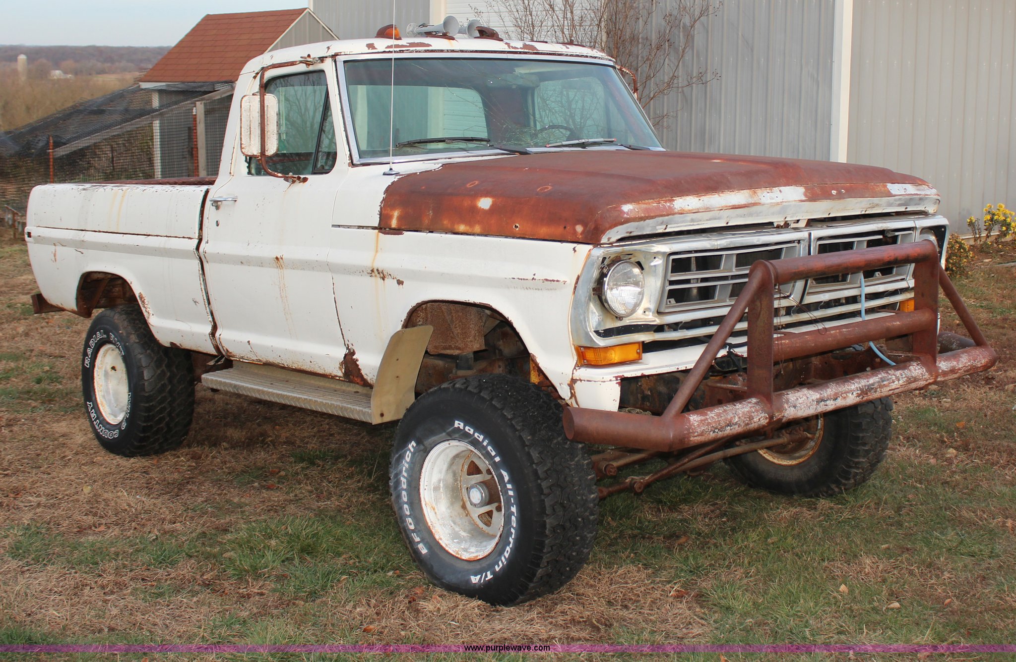 Purple Wave is selling a used 1/2 Ton Pickup or Van in Kansas. This item is a 1971 Ford F150 pickup truck with the following: 55,800 miles on odometer, 360 C.I.D. V8 gas engine, Four speed manual transmission, Heat, Manual windows and locks, Vinyl interior, Gooseneck ball hitch, 33 x 12.50R15 tires, Windshield cracked, Rust, Vehicle has not been used in 15 years, Engine is operational