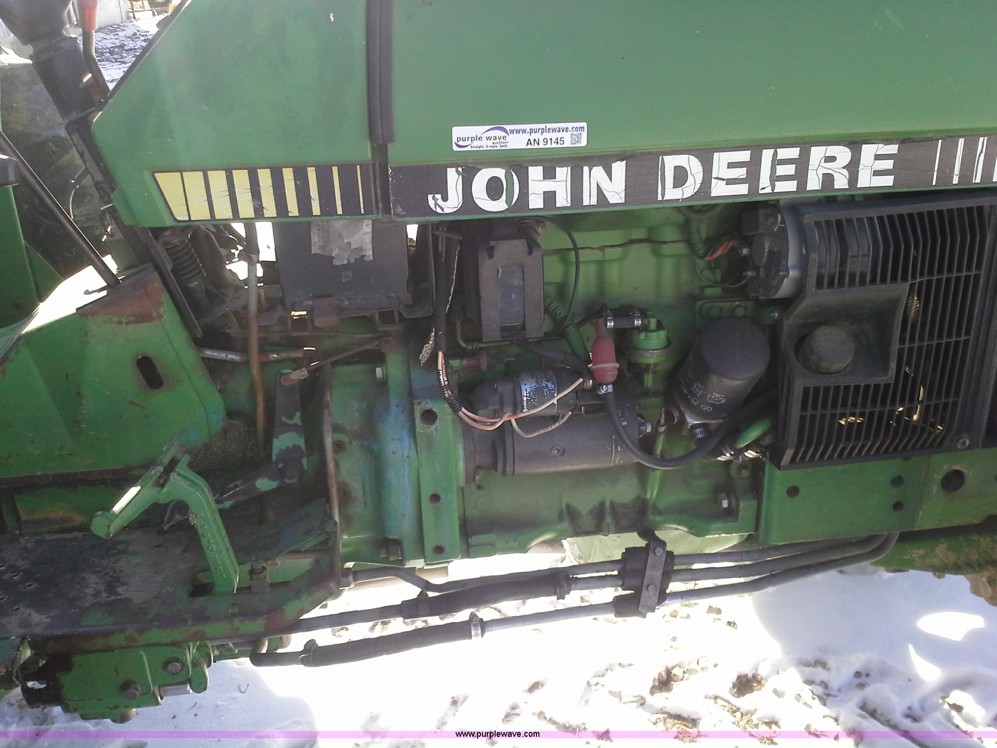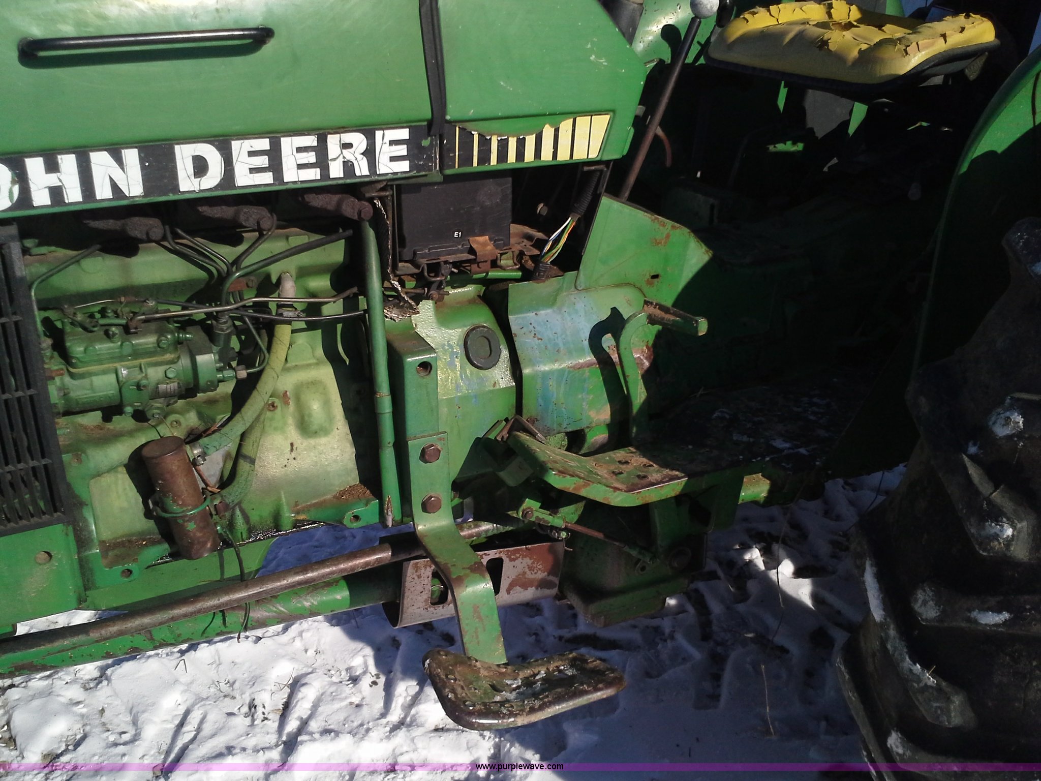 Purple Wave is selling a used Tractor in Missouri. This item is a John Deere 2155 tractor with the following: 953 hours on meter, Four cylinder diesel engine, Manual transmission, 8F-8R gears, Four wheel drive, Spring suspension seat, Three point, Draw bar, 540/1000 PTO, Rear hydraulic remote, 9.5x24 front tires, 16.9x28 rear tires, Spear not included, Serial L02155F754728