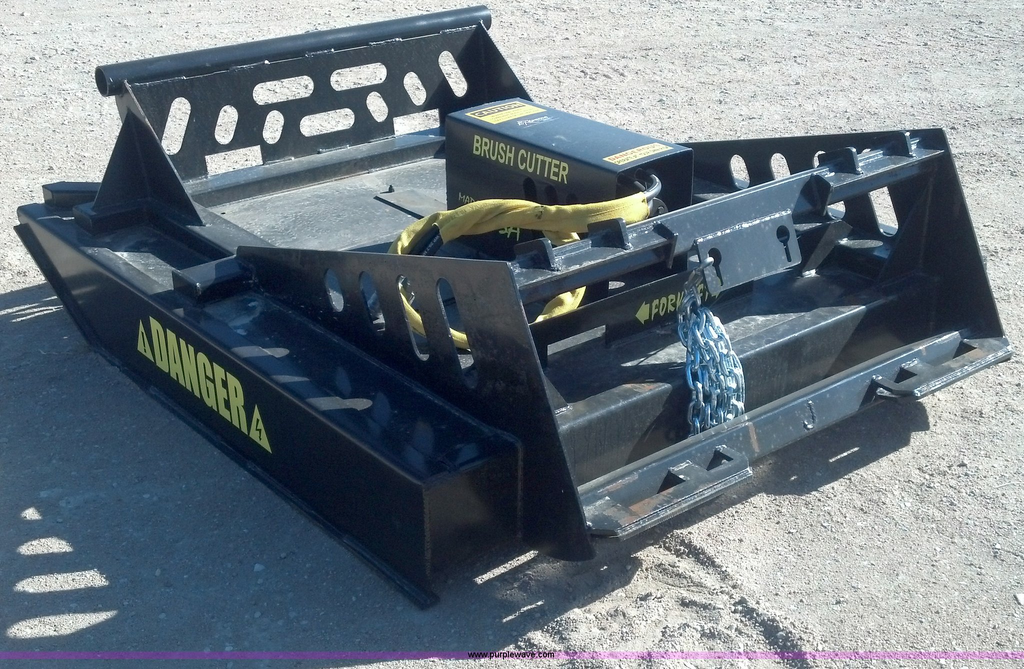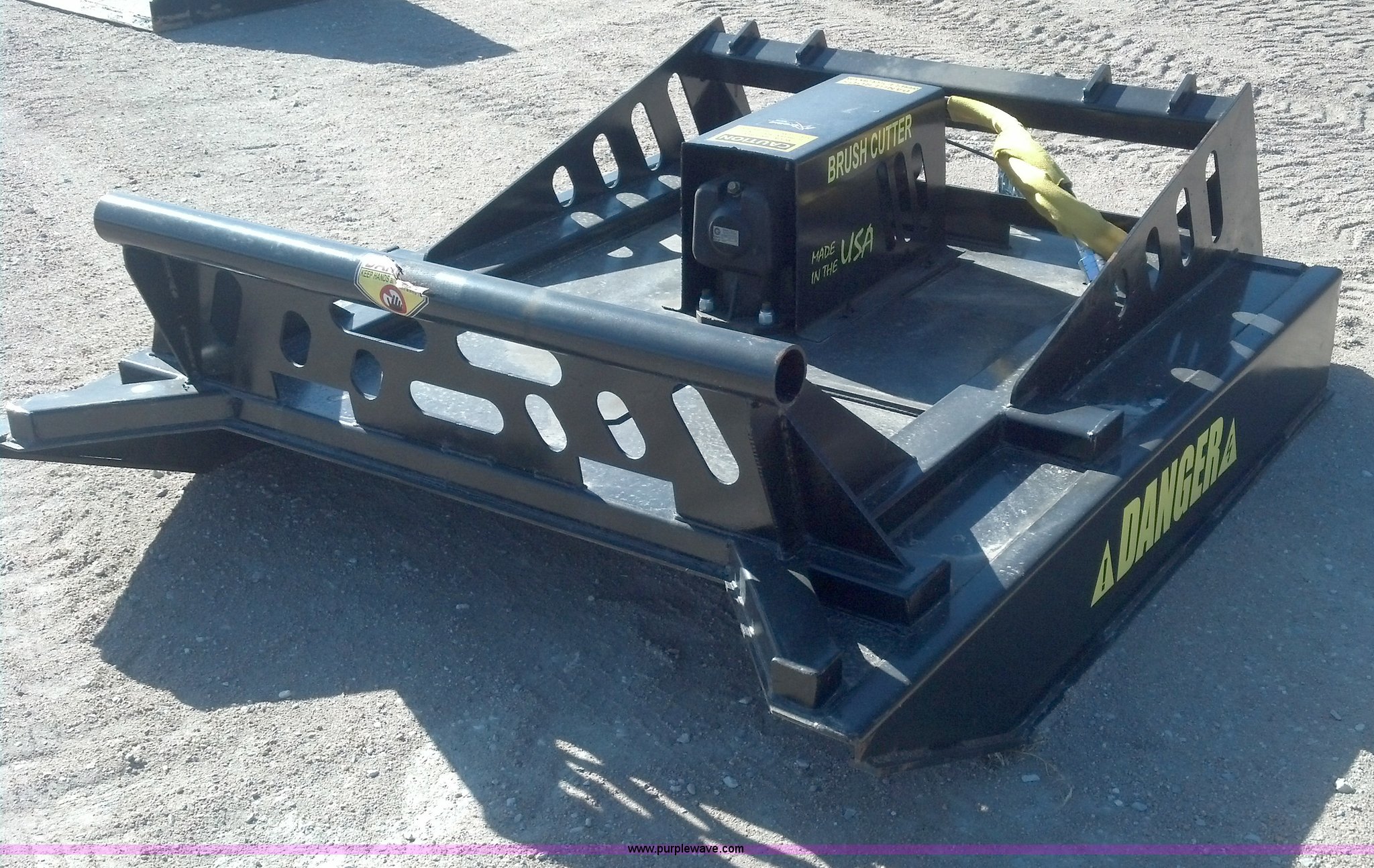 Purple Wave is selling a used Other Attach. or Equip. in Kansas. This item is a Wildkat heavy duty brush cutter/mower with push bar with the following: 60"W, Skid steer quick attach, Chains/forklift pockets, Sven gauge steel deck, Omni gear box, 75 HP, Parker hoses, drive motor with cross port, Low flow hydraulics up to 20 gpm, not more than 25 gpm, 1/2" thick blades, Unused