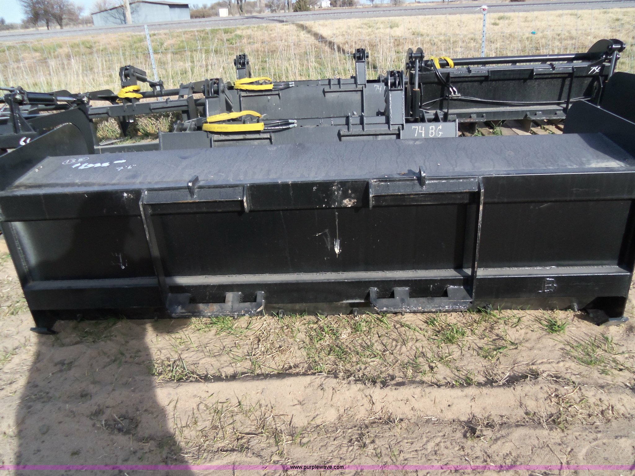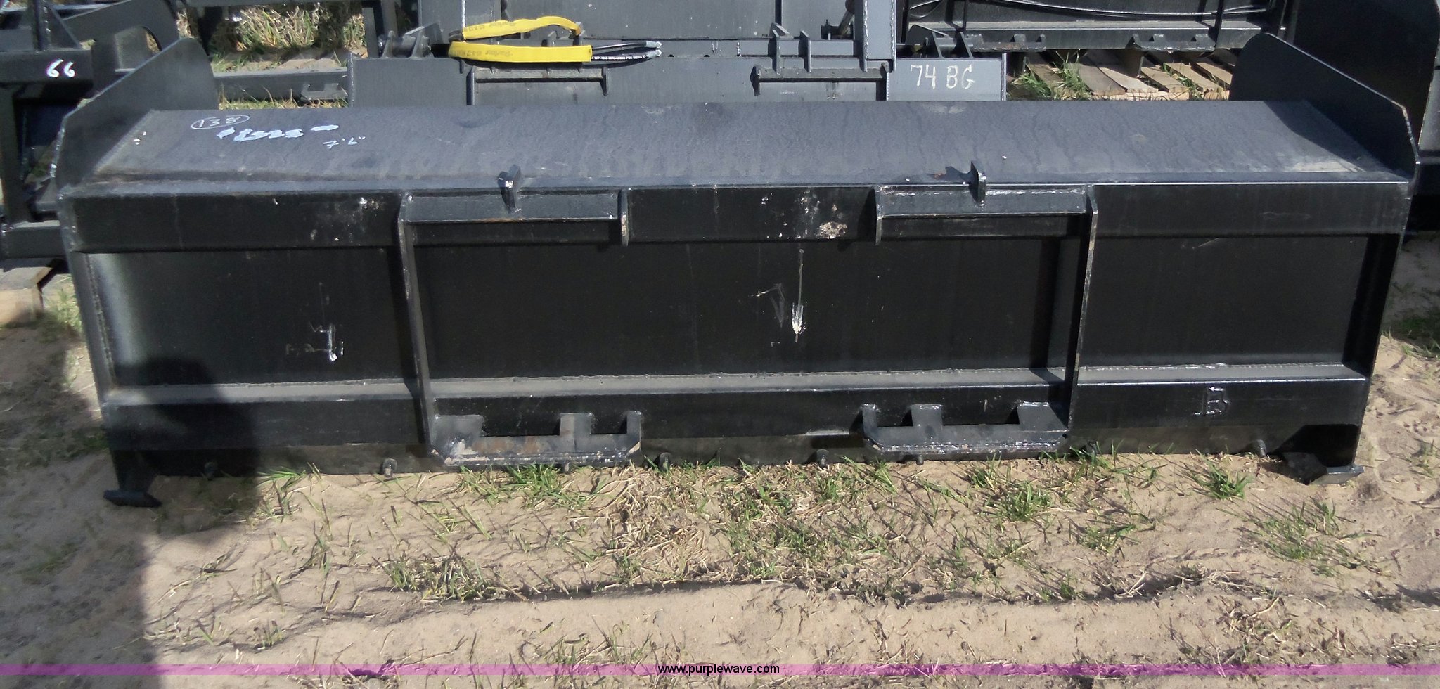 Purple Wave is selling a used Other Attach. or Equip. in Kansas. This item is a Wildkat snow pusher with the following: 90"W x 30"H, 2" x 4" rear tubing, 1/4" wrap, 1/4" sides, 3/8" x 8" pushing edge, 1/2" skid tracks, Unused