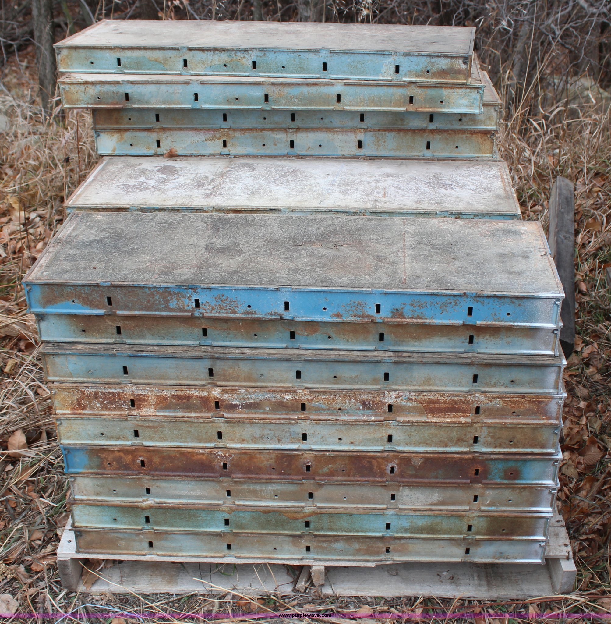 Assorted concrete forms. (120) 3'L x 2'W concrete forms, (4) 3'L x 18"W filler forms, (4) 3'L x 12"W filler forms, (100) 6'L x 2'W concrete forms, (6) 6'L x 14"W filler forms, (4) 6'L x 8"W filler forms, (2) 6'L x 6"W filler forms, (4) 6'L x 4"W filler forms, (4) 6'L x 6"W outside corners. Representative photo. Alta Vista, KS 66834