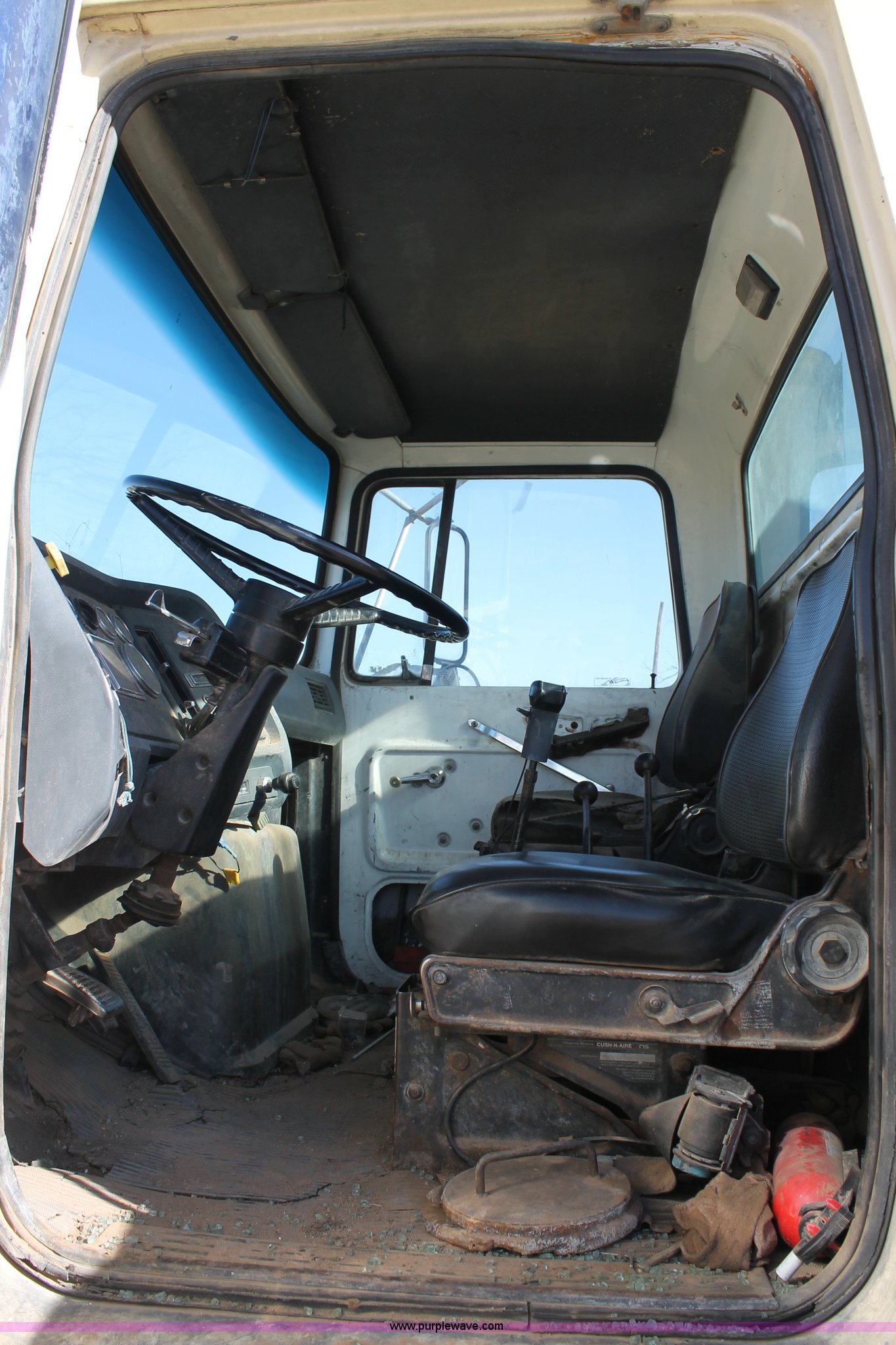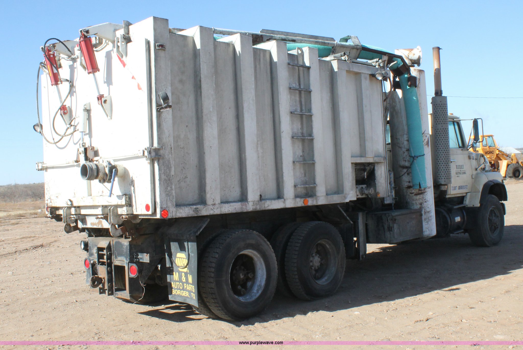 Purple Wave is selling a used Vacuum Truck in Texas. This item is a 1989 Ford L9000 vactor truck with the following: 610,270 miles on odometer, 1,679 hours on meter, Caterpillar 3406 14.6L L6 diesel engine, Engine installed in 2003, Nine speed manual transmission, Air suspension seat, 12 cu. yd. capacity, RBST 10X20 blower, Serial 55751L, Dump bed with hyraulic rear hatches, Dual 50 gallon fuel tanks, Wet or dry material vacuum system, Air suspension, 385/65R22.5 front tires, 11R22.5 rear tires, GVWR 64,000 lbs, Blower muffler tank does not have baffles