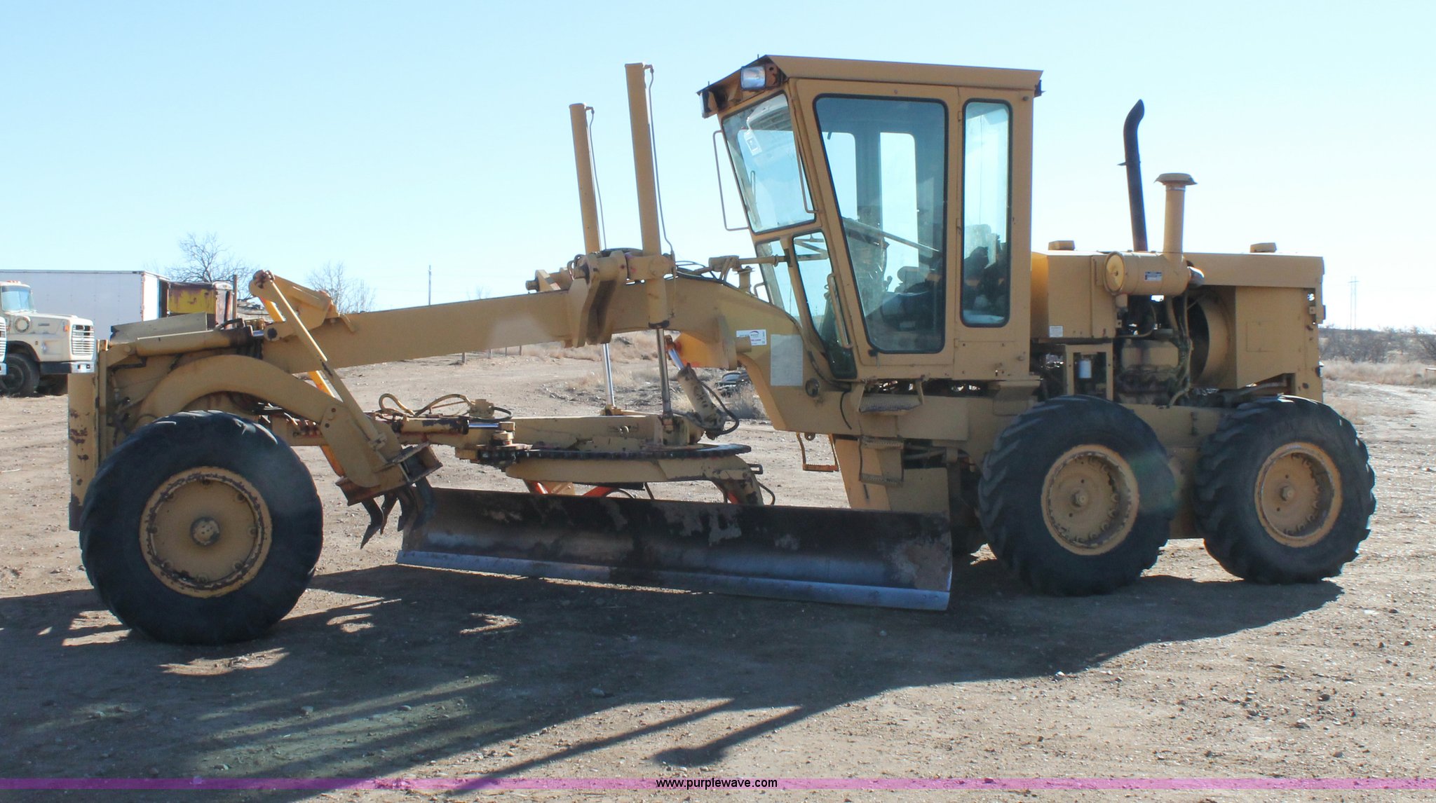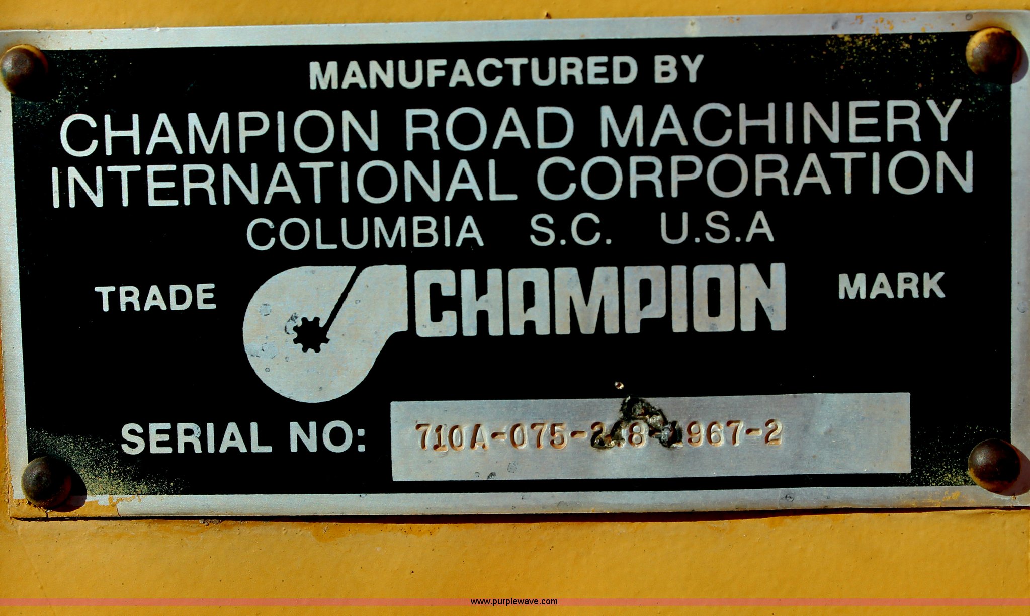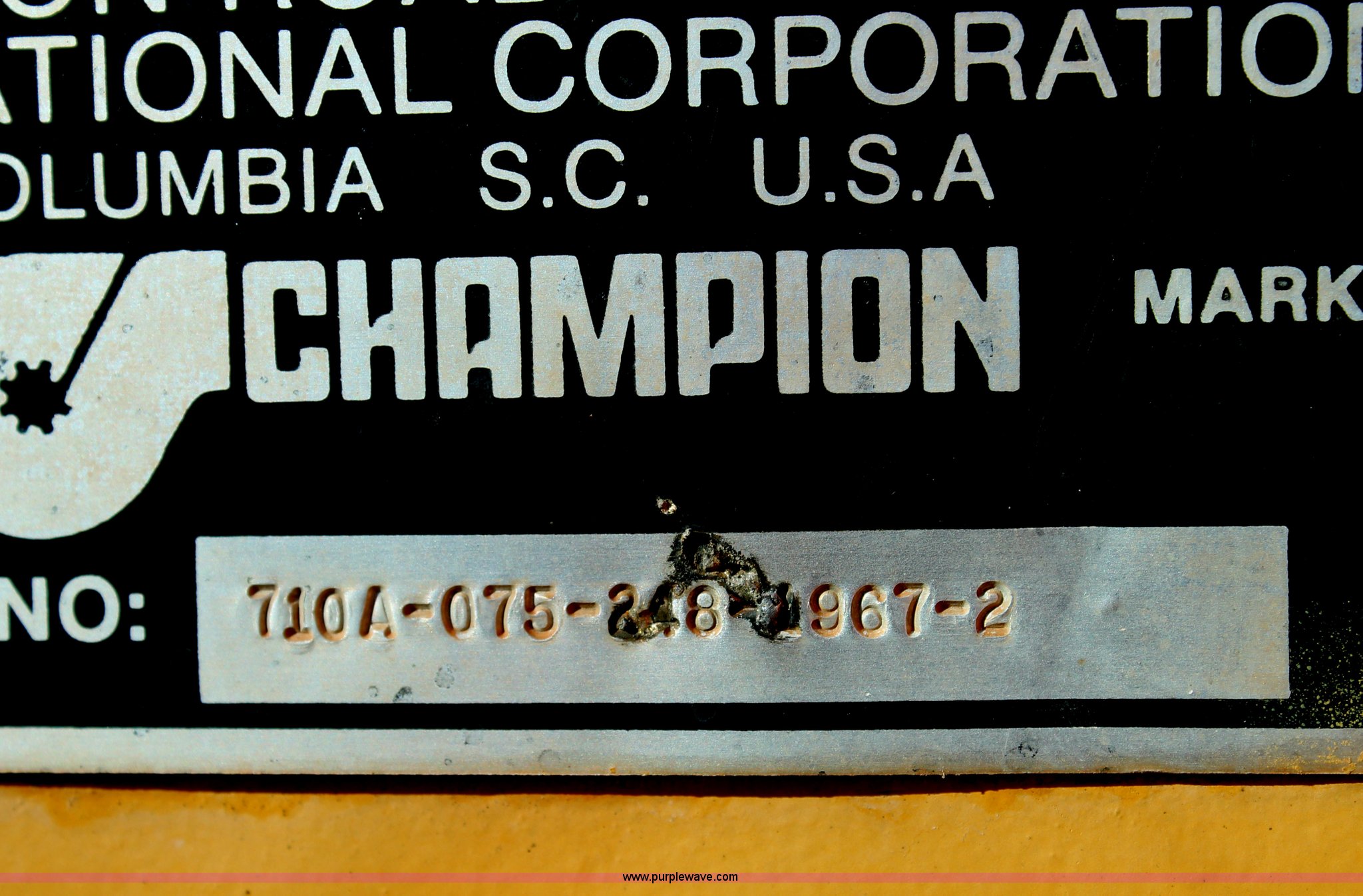 Purple Wave is selling a used Motor Grader in Texas. This item is a 1989 Champion 710A articulated motor grader with the following: Cummins six cylinder diesel engine, 135 HP, Powershift transmission, 8F-4R gears, Four wheel drive, Enclosed cab, AC and heat, AM/FM, Air suspension seat, Front and rear work lights, 12' moldboard, Tip control, Hydraulic slide and tilt, Side shift, Front five tooth scarifier, 14.00-24 tires, 30,630 lbs. base operating weight, Serial 710A-075-248-1967-2