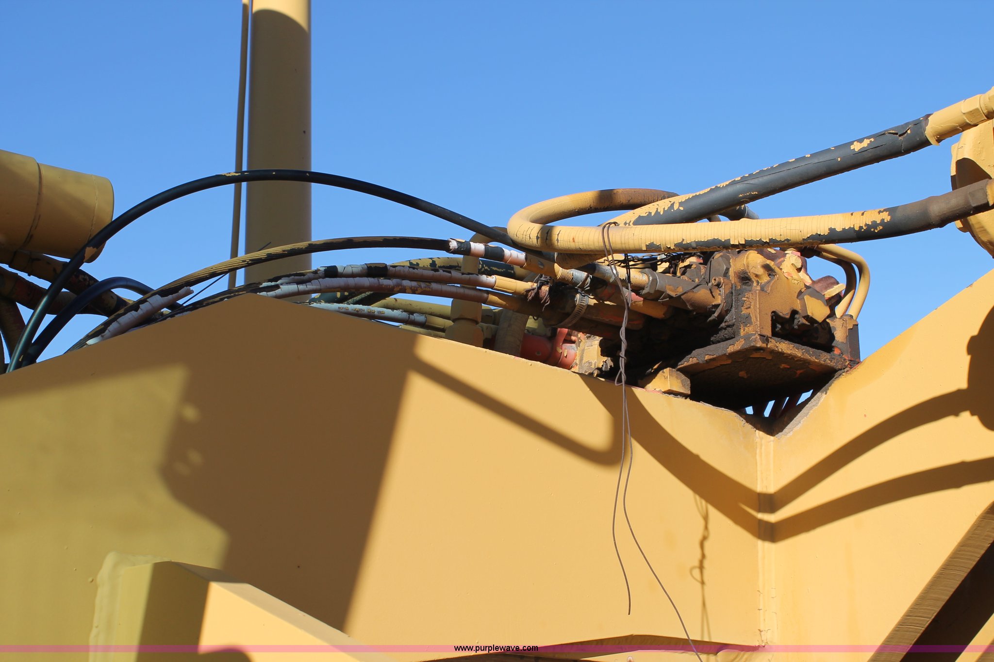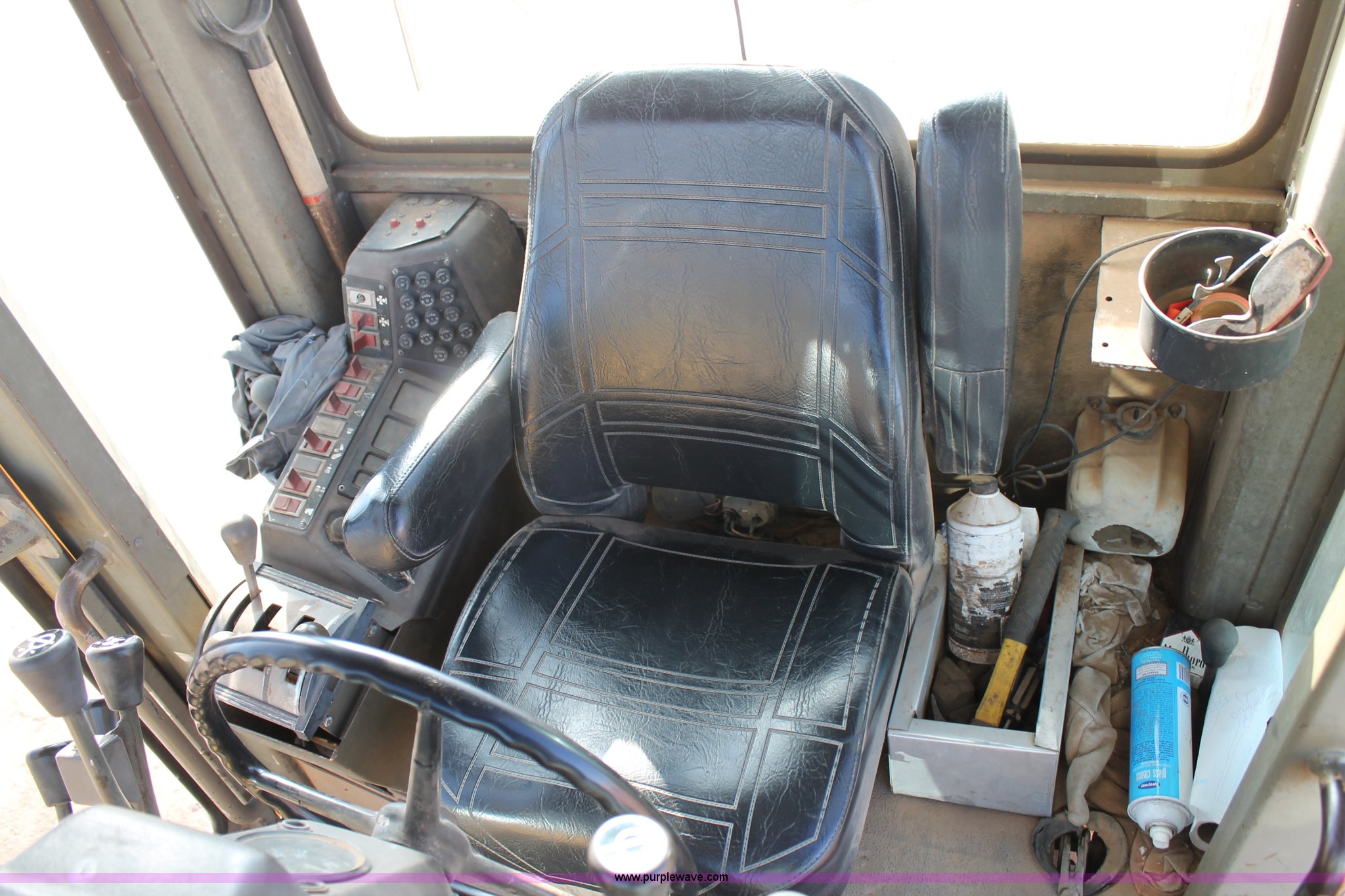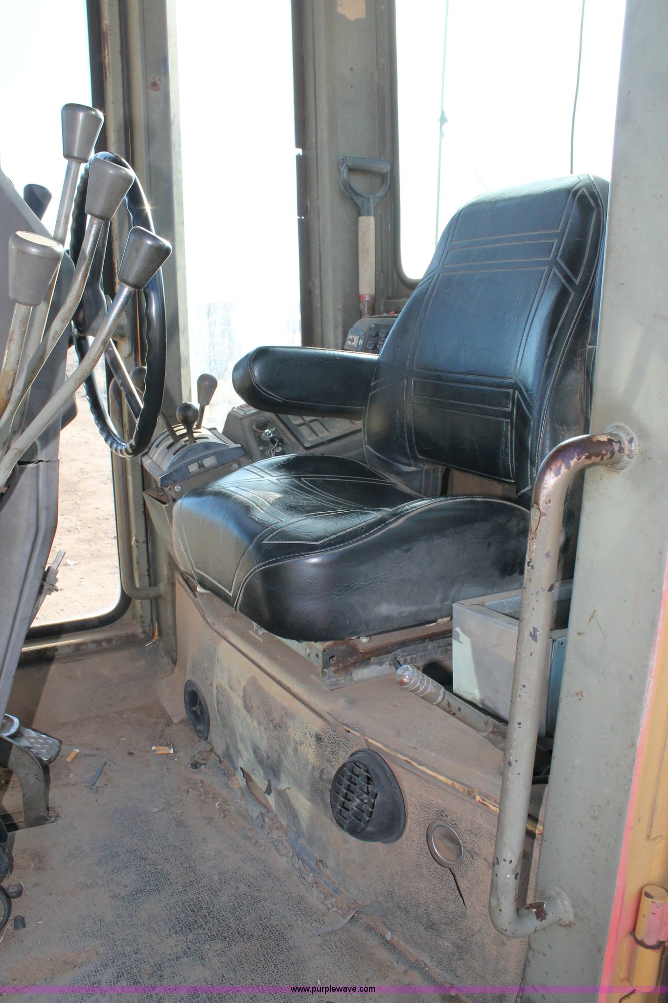 Purple Wave is selling a used Motor Grader in Texas. This item is a 1989 Champion 710A articulated motor grader with the following: Cummins six cylinder diesel engine, 135 HP, Powershift transmission, 8F-4R gears, Four wheel drive, Enclosed cab, AC and heat, AM/FM, Air suspension seat, Front and rear work lights, 12' moldboard, Tip control, Hydraulic slide and tilt, Side shift, Front five tooth scarifier, 14.00-24 tires, 30,630 lbs. base operating weight, Serial 710A-075-248-1967-2
