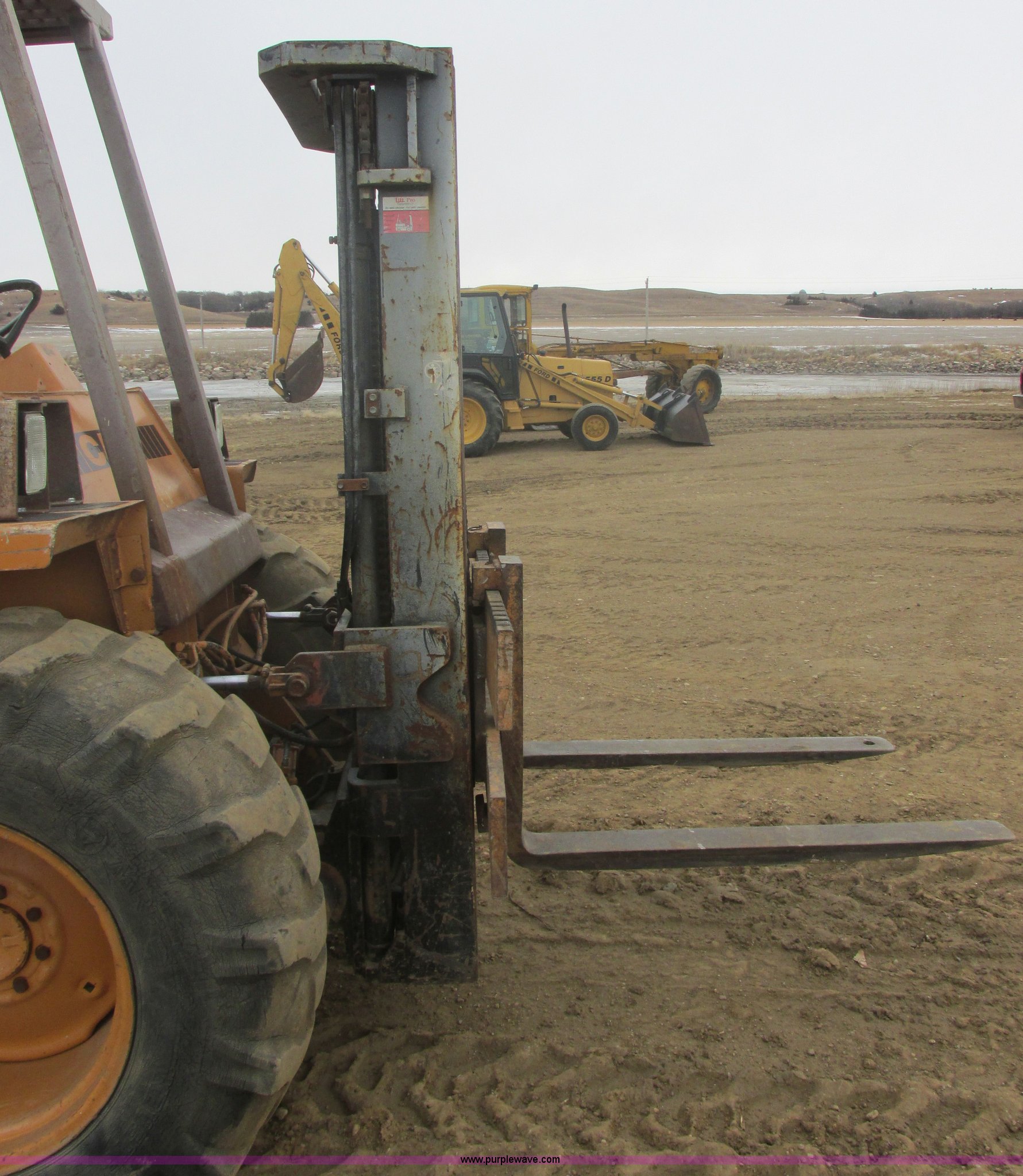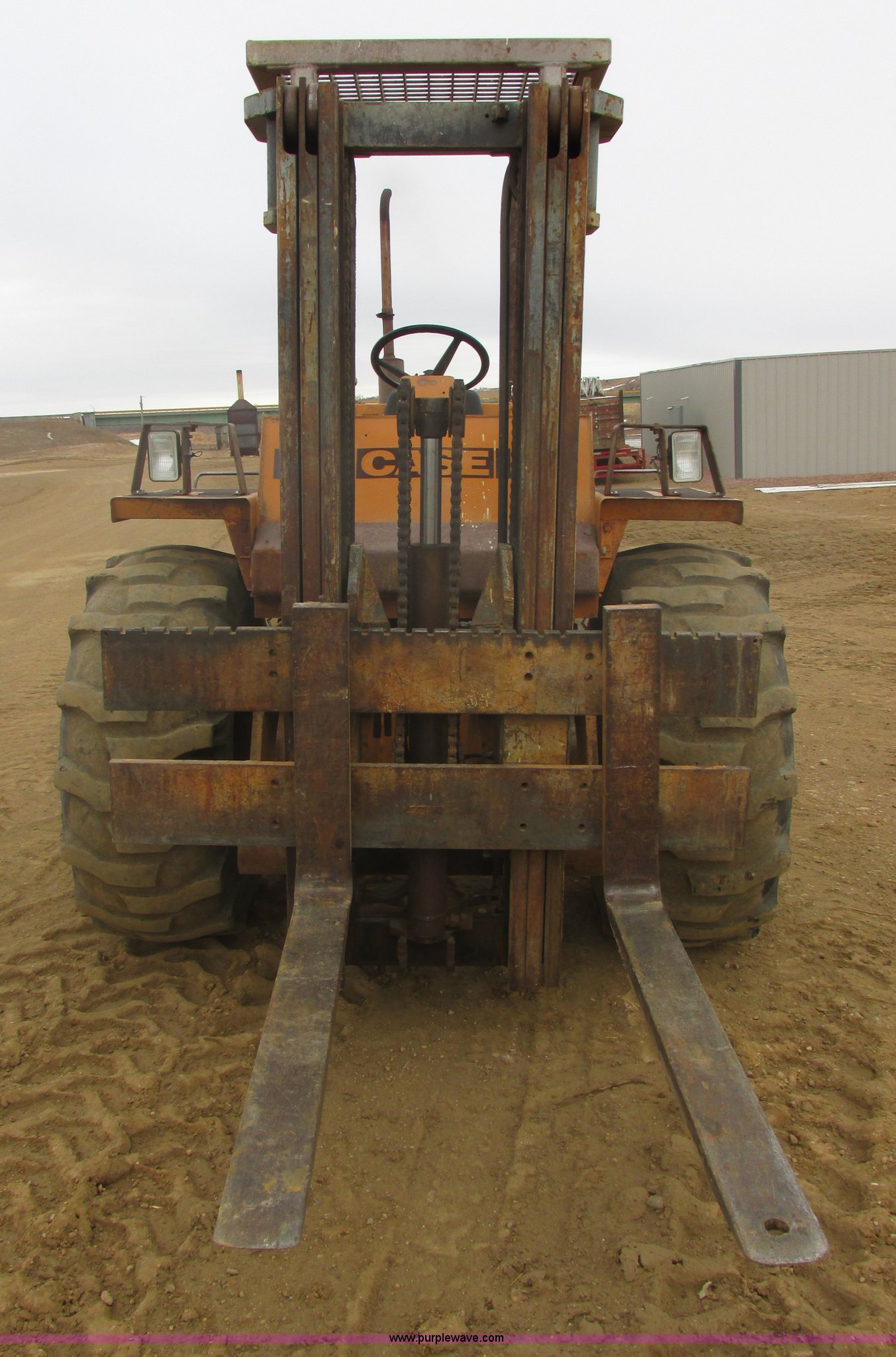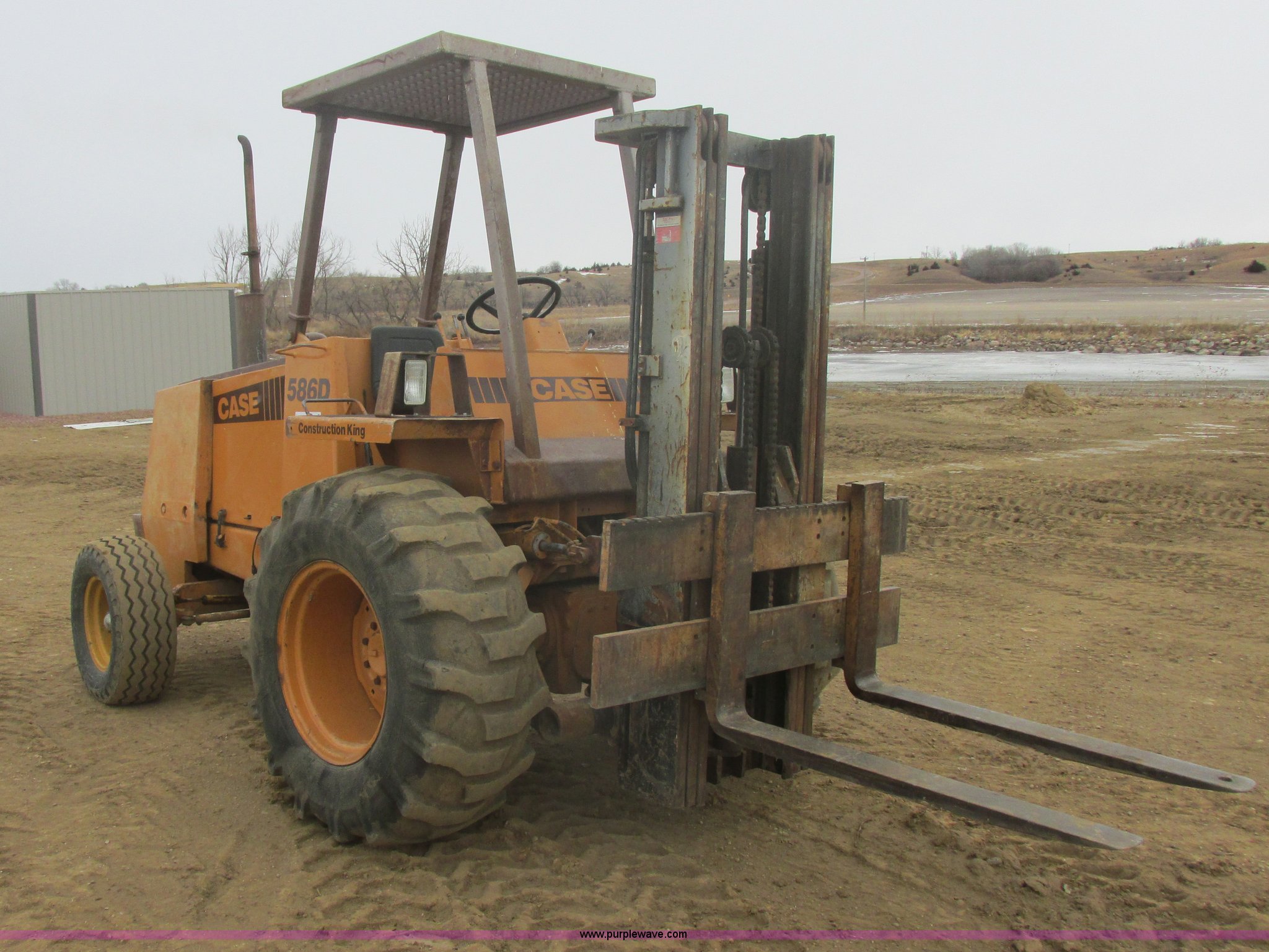 Purple Wave is selling a used Strt. Mast Rough Terr. Forklift in South Dakota. This item is a 1984 Case 586D forklift with the following: Case 6188D four cylinder diesel engine, 52 HP, Four speed synchronized hydrostatic transmission, ROPS, 48" forks, 60" max width, (3) stage mast, 21'5" max height, 6,000 lbs capacity, Tilt mast, Side shift, Front work lights, Rear lights, Rear counter weights, 19.5L-24 front tires, 11L-16.5L rear tires, 12,465 lbs. base operating weight, Serial 16214078