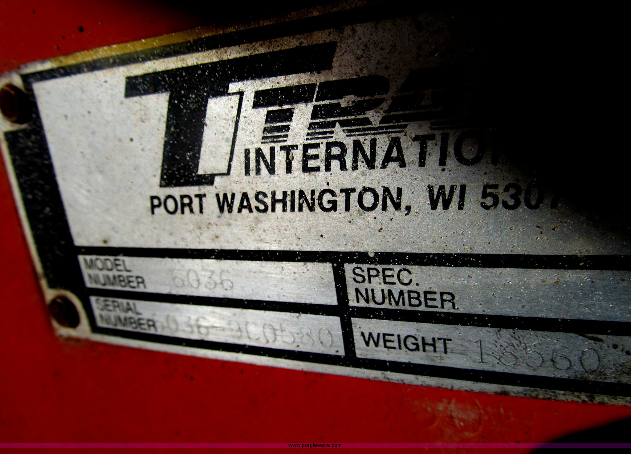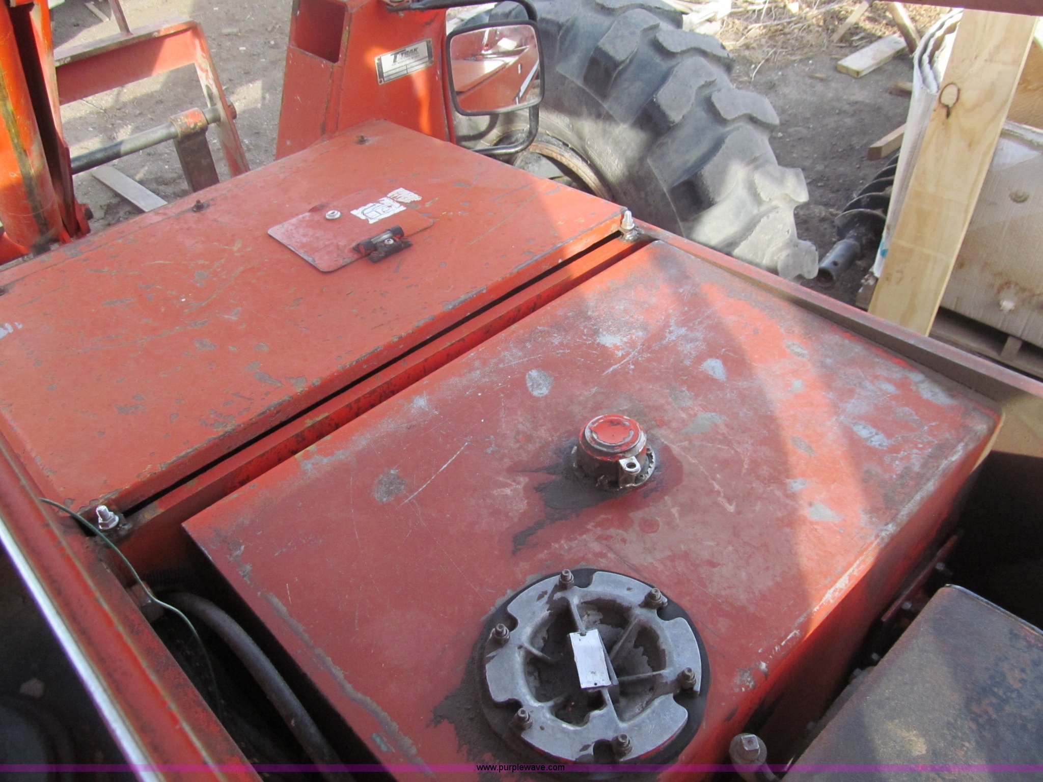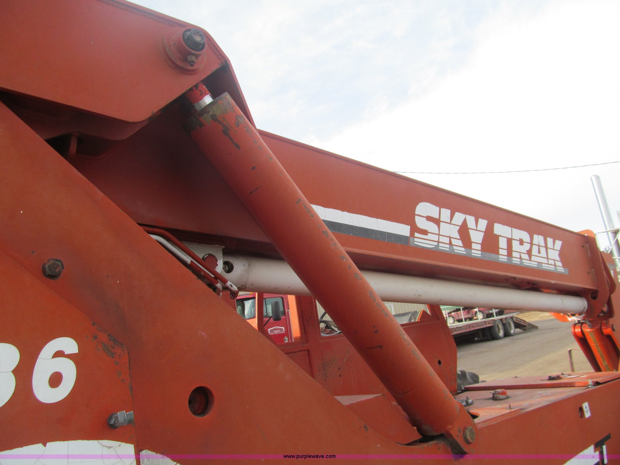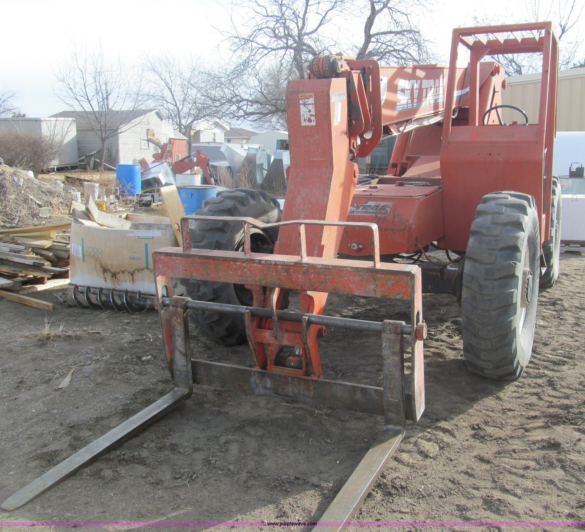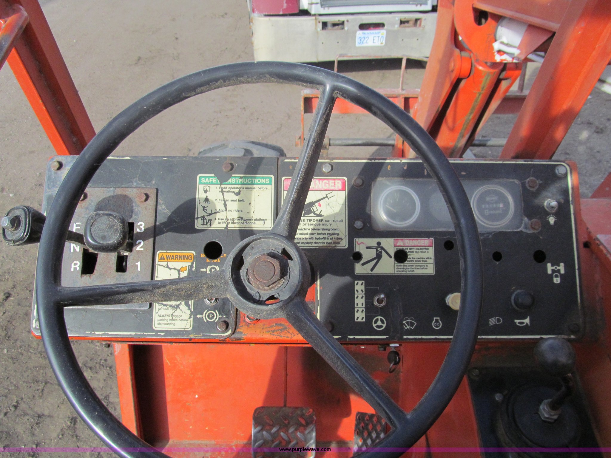 Purple Wave is selling a used Telehandler in Kansas. This item is a 1990 SkyTrac 6036 telehandler with the following: 2,101 hours on meter, Cummins four cylinder diesel engine, Powershift transmission, 3F-3R gears, Four wheel drive, Circle steer, Off-set OROPS, 6,000 lbs lift capacity, 36' max lift height, Pallet fork attachment, 48"L forks, Hydraulic leveling, 13.00-24TG tires, 18,560 lbs. base operating weight, Serial 9C0580