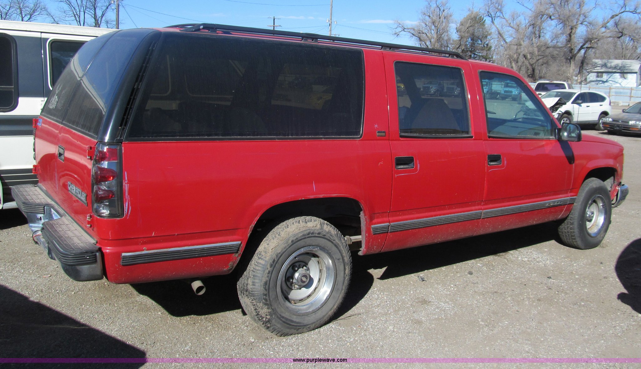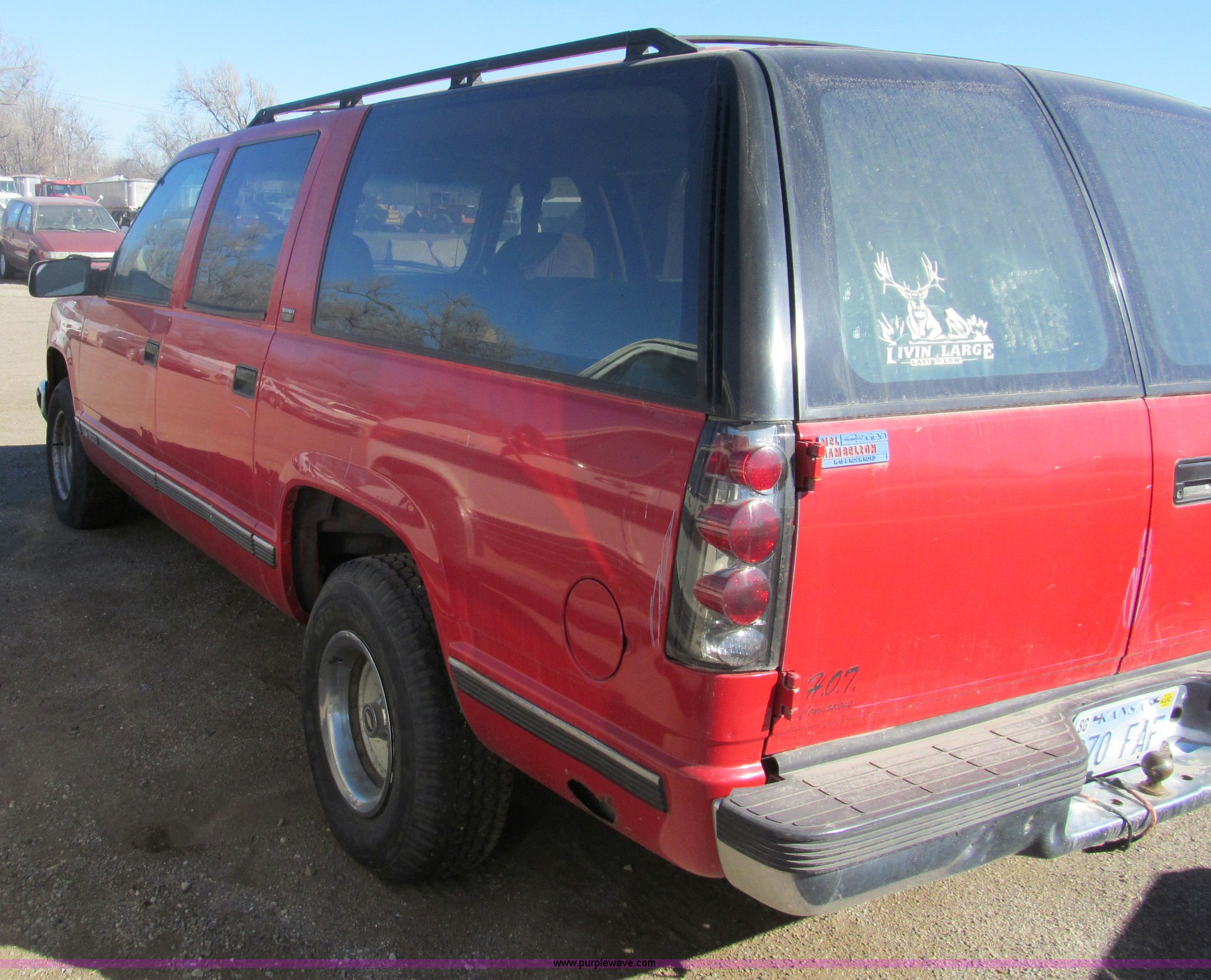 Purple Wave is selling a used Wrecked and Abandoned in Kansas. This item is a 1993 Chevrolet Suburban 1500 SUV with the following: Unknown miles on odometer, 5.7L V8 OHV 16V gas engine, Automatic transmission, AC and heat, AM/FM/CD, Power windows and locks, Cloth interior, Receiver hitch, Trailer wiring, 2" ball hitch, P235/75R15 tires, Vehicle locked, Case# 13C81619