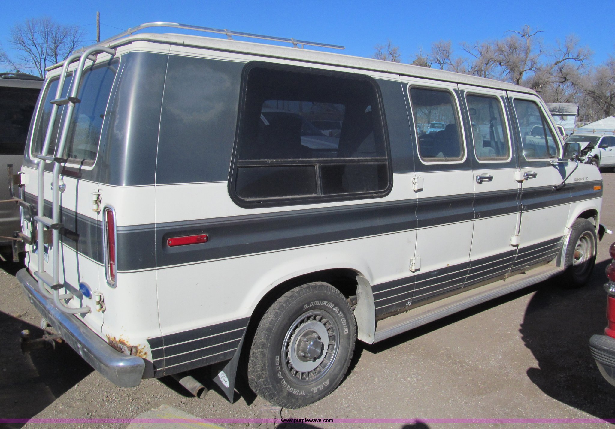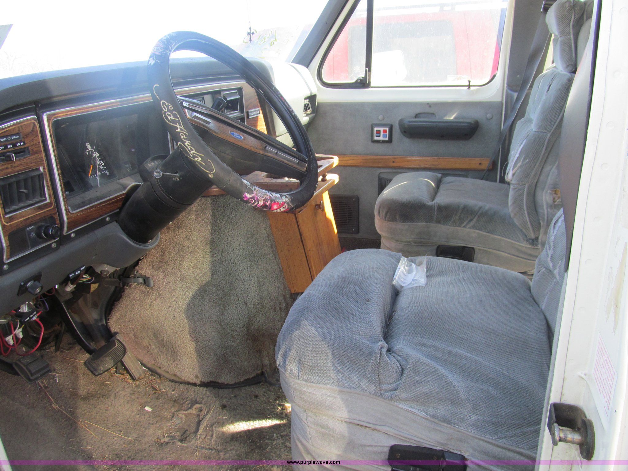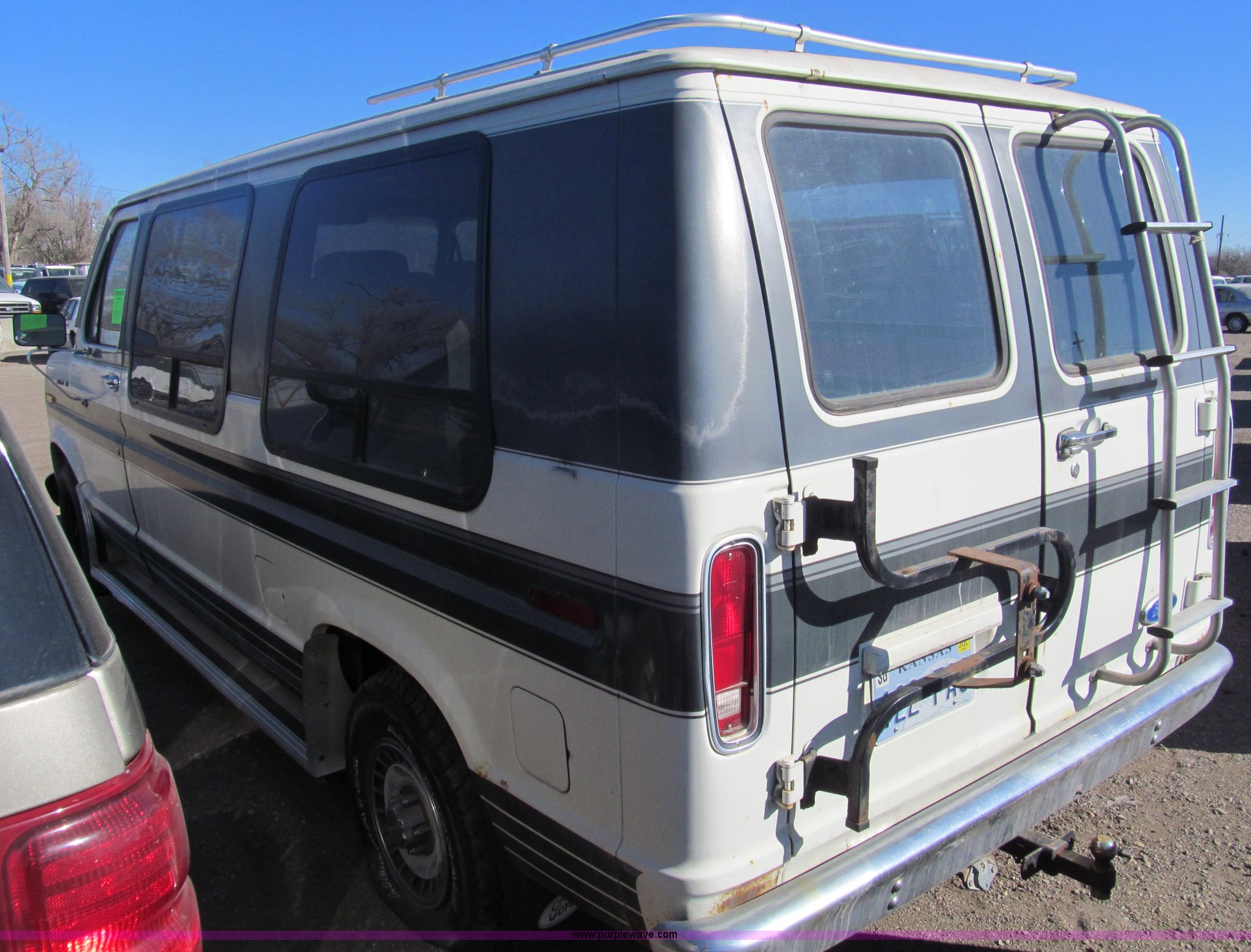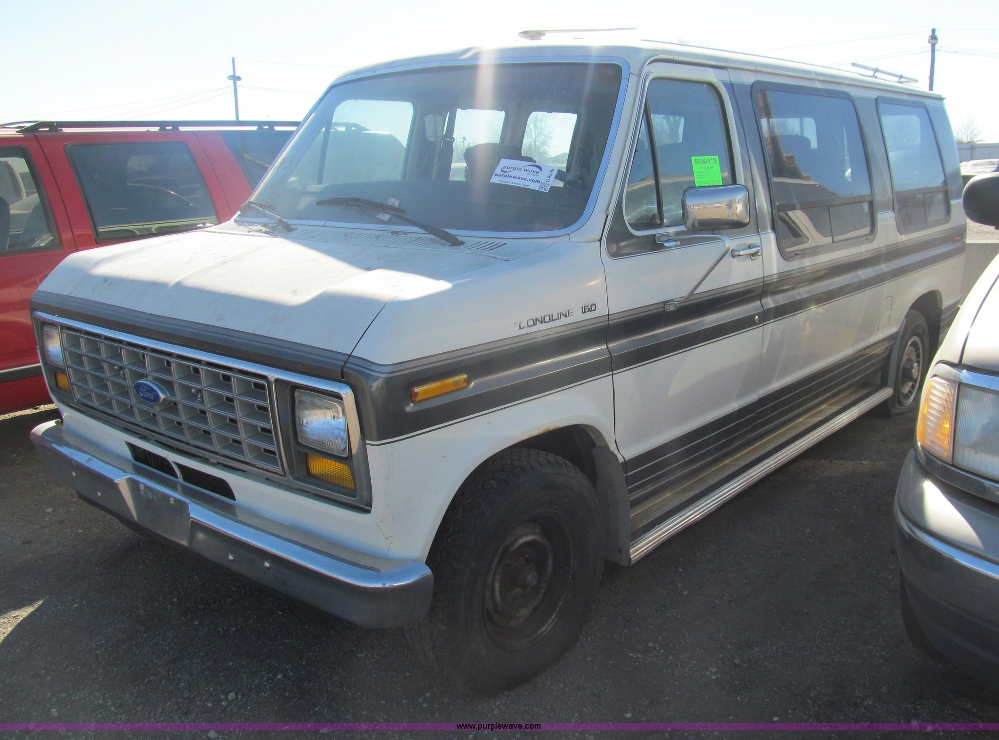Purple Wave is selling a used Wrecked and Abandoned in Kansas. This item is a 1989 Ford Econoline E150 van with the following: 92,082 miles on odometer, 5.0L V8 OHV 12V gas engine, Automatic transmission, AC and heat, AM/FM, Power windows and locks, Cloth interior, Television monitor, 2" ball hitch, Keys, 235/75R15 tires, One tire flat, Case# 13C081429