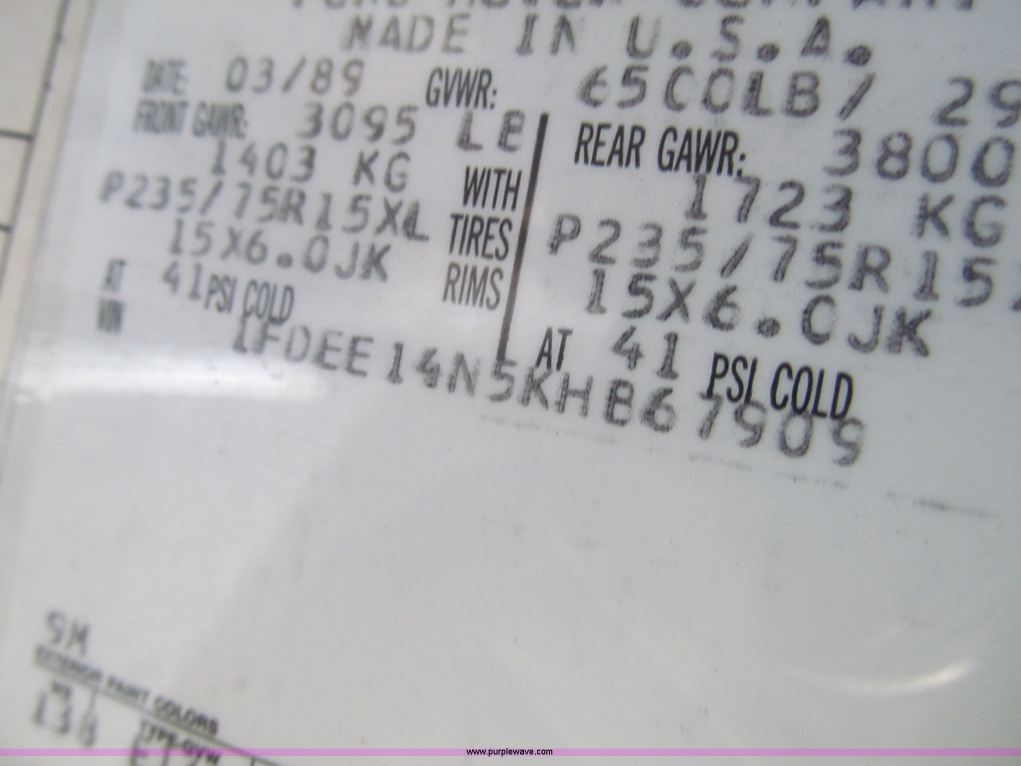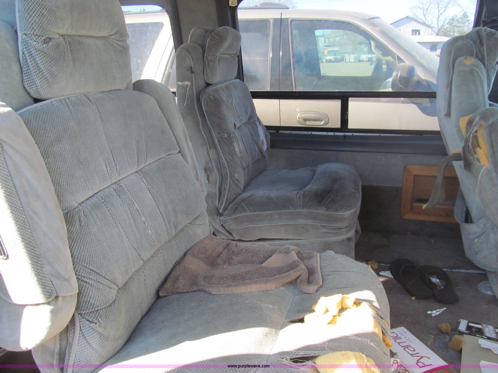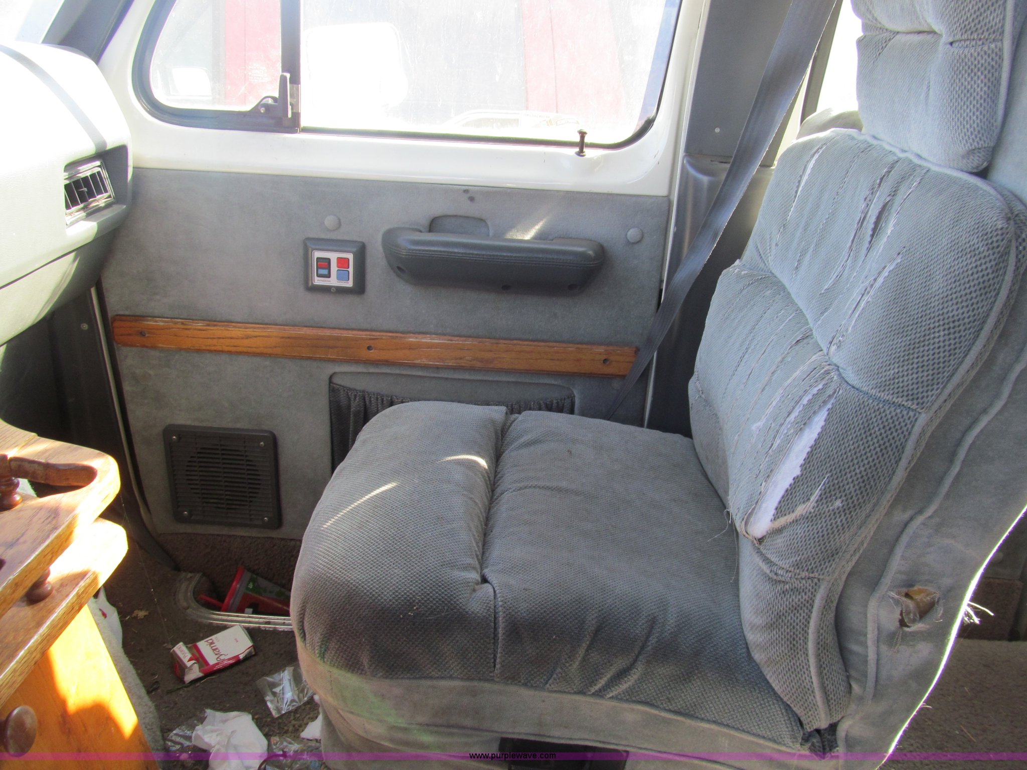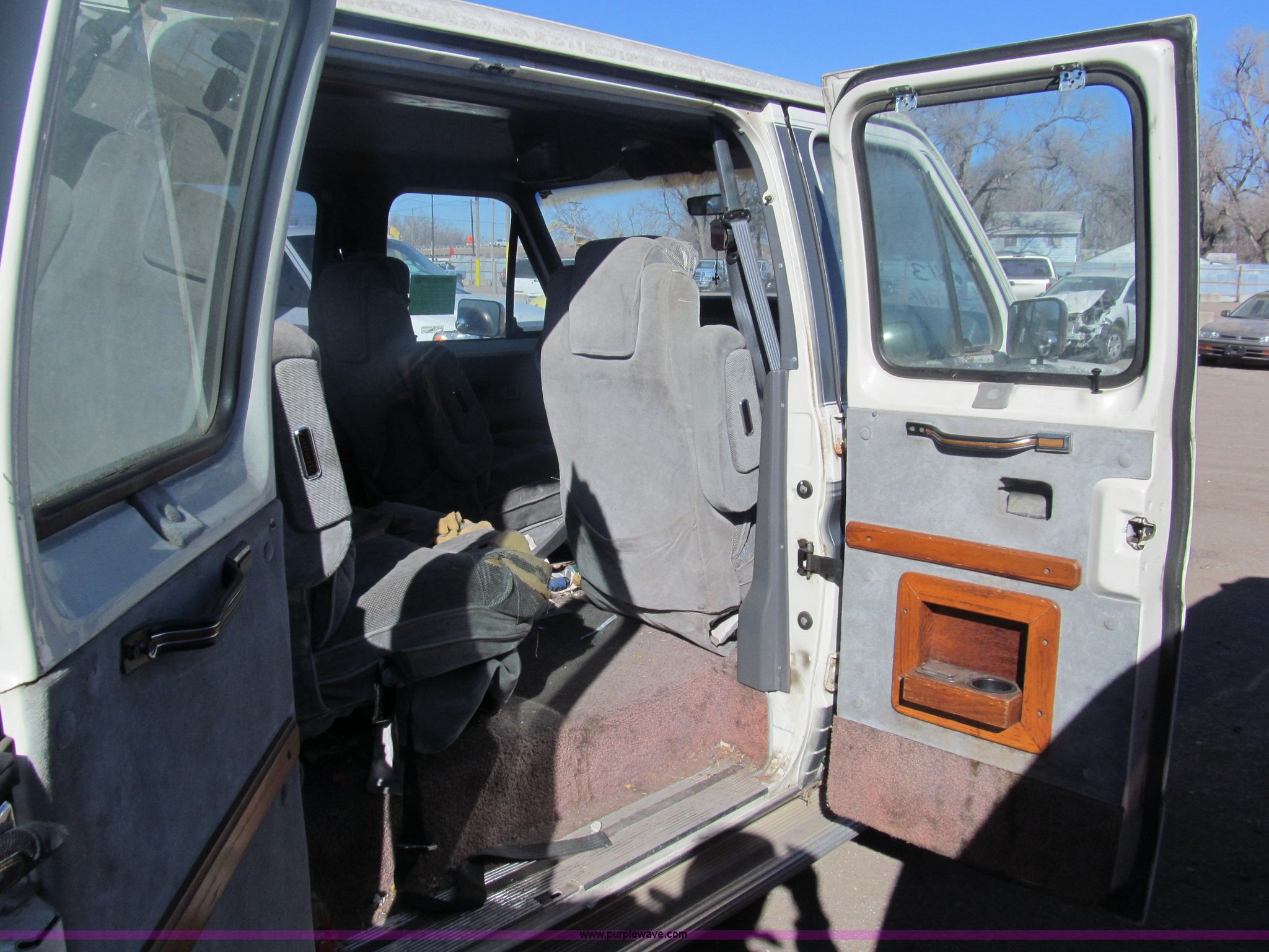 Purple Wave is selling a used Wrecked and Abandoned in Kansas. This item is a 1989 Ford Econoline E150 van with the following: 92,082 miles on odometer, 5.0L V8 OHV 12V gas engine, Automatic transmission, AC and heat, AM/FM, Power windows and locks, Cloth interior, Television monitor, 2" ball hitch, Keys, 235/75R15 tires, One tire flat, Case# 13C081429