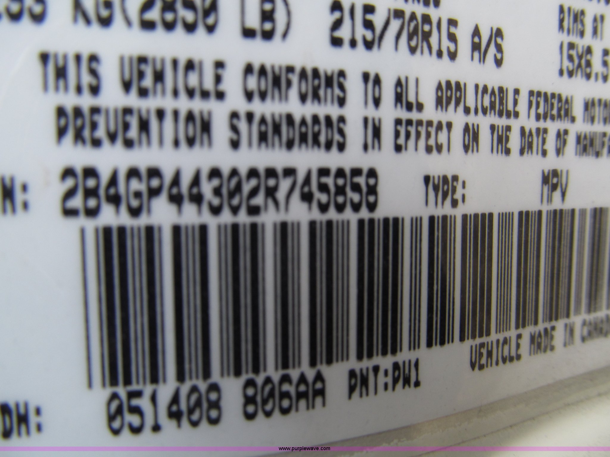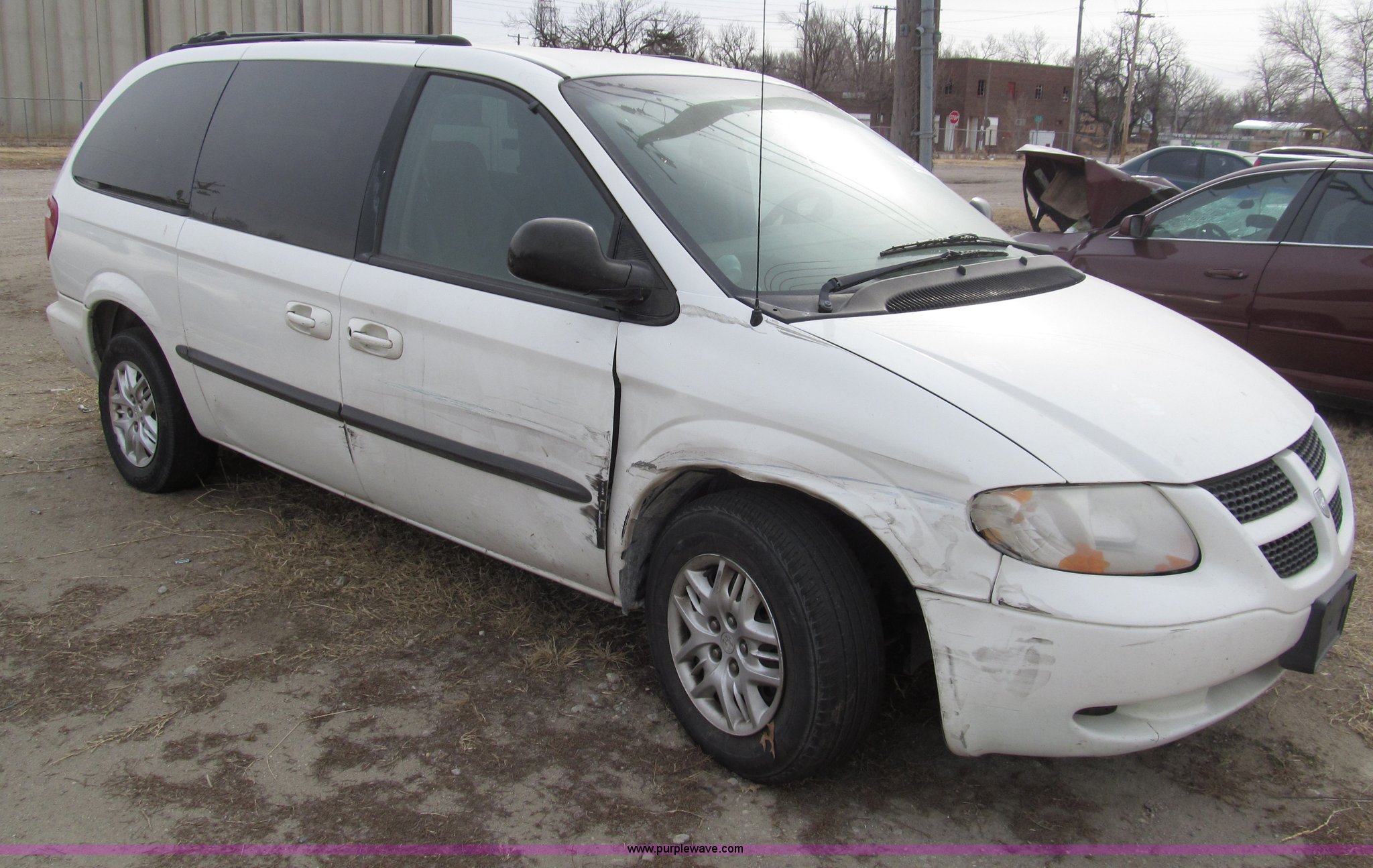 Purple Wave is selling a used Wrecked and Abandoned in Kansas. This item is a 2002 Dodge Grand Caravan Sport van with the following: Unknown miles on odometer, 3.3L V6 OHV 12V FFV gas engine, Automatic transmission, AC and heat, AM/FM/CD, Power windows and locks, Cloth interior, P215/65R15 tires, Windshield cracked, Right fender damaged, Case# 13C79599