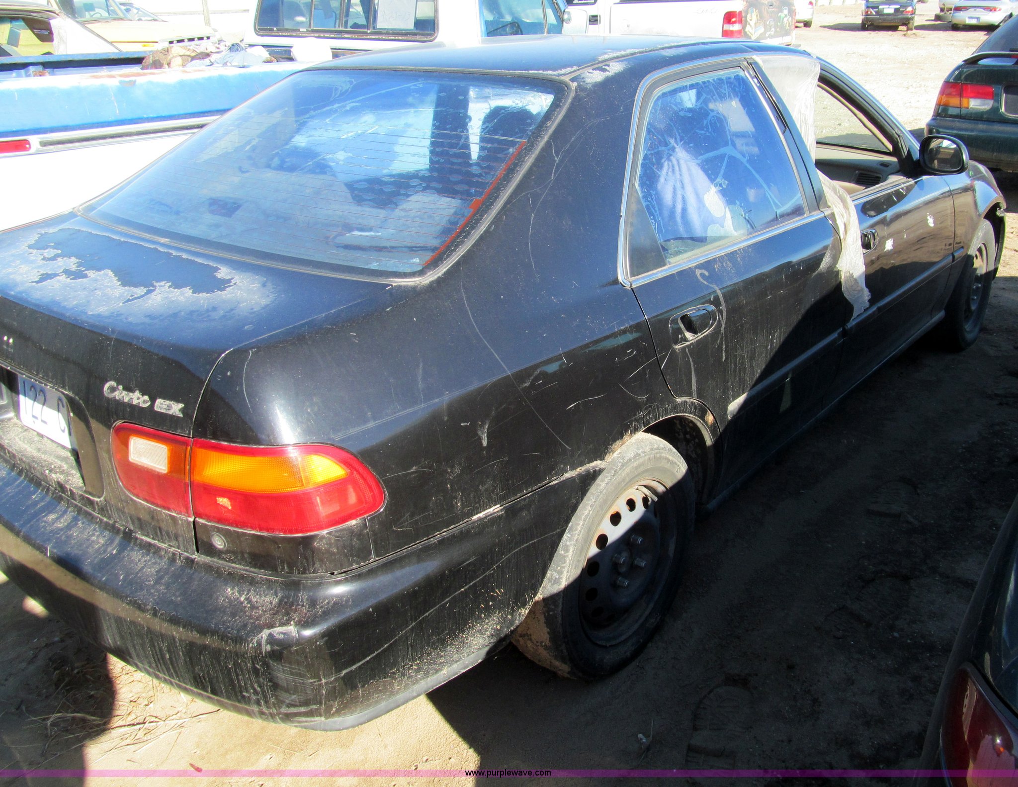 Purple Wave is selling a used Wrecked and Abandoned in Kansas. This item is a 1992 Honda Civic EX with the following: 226,546 miles on odometer, 1.6L L4 SOHC 16V gas engine, Automatic transmission, AC and heat, AM/FM/cassette, Power windows and locks, Sunroof, Cracked, 175/65R14 tires, Front windows broken, Windshield cracked, Hail damage, Paint peeling, Unit# 13C74236