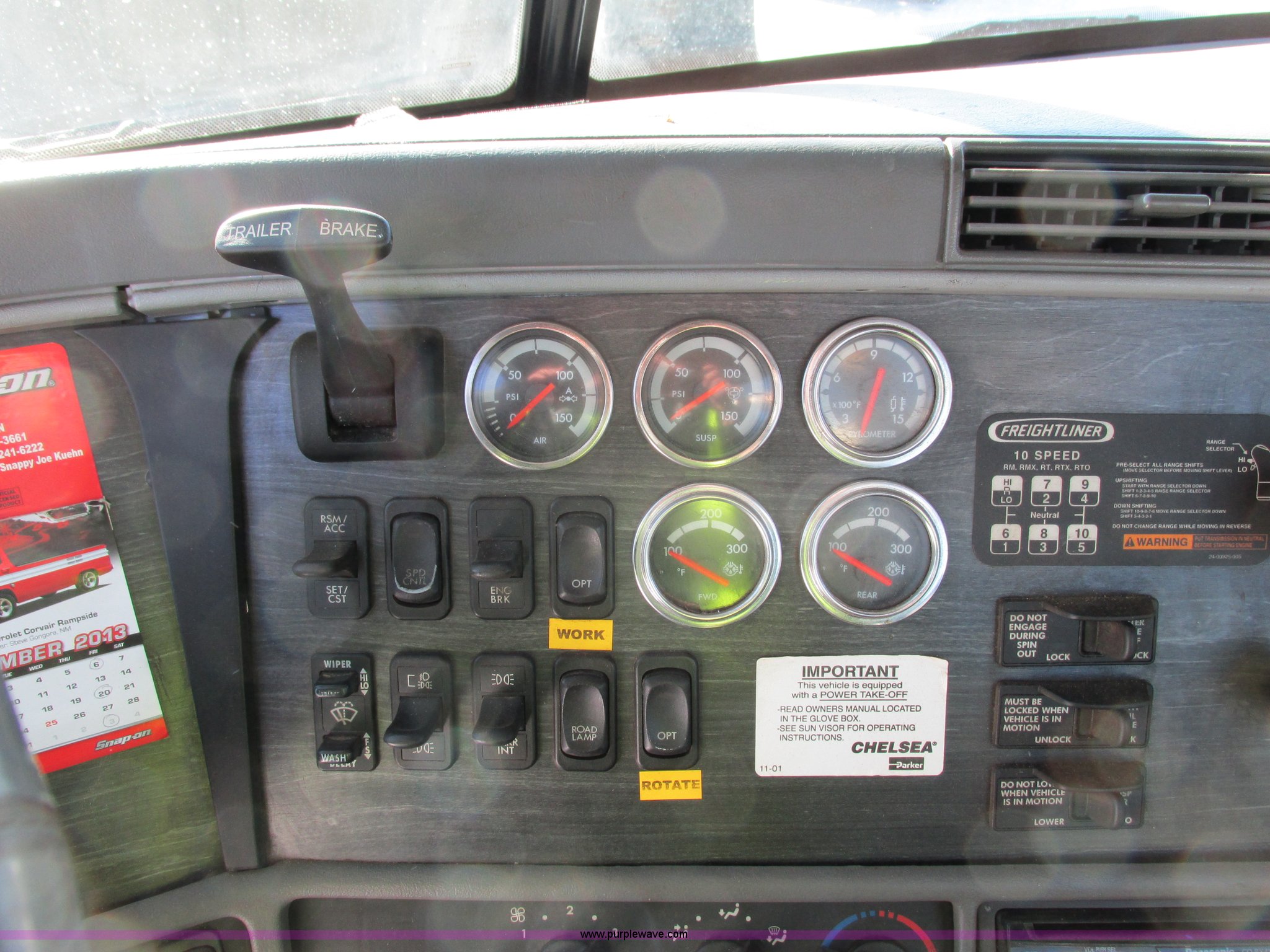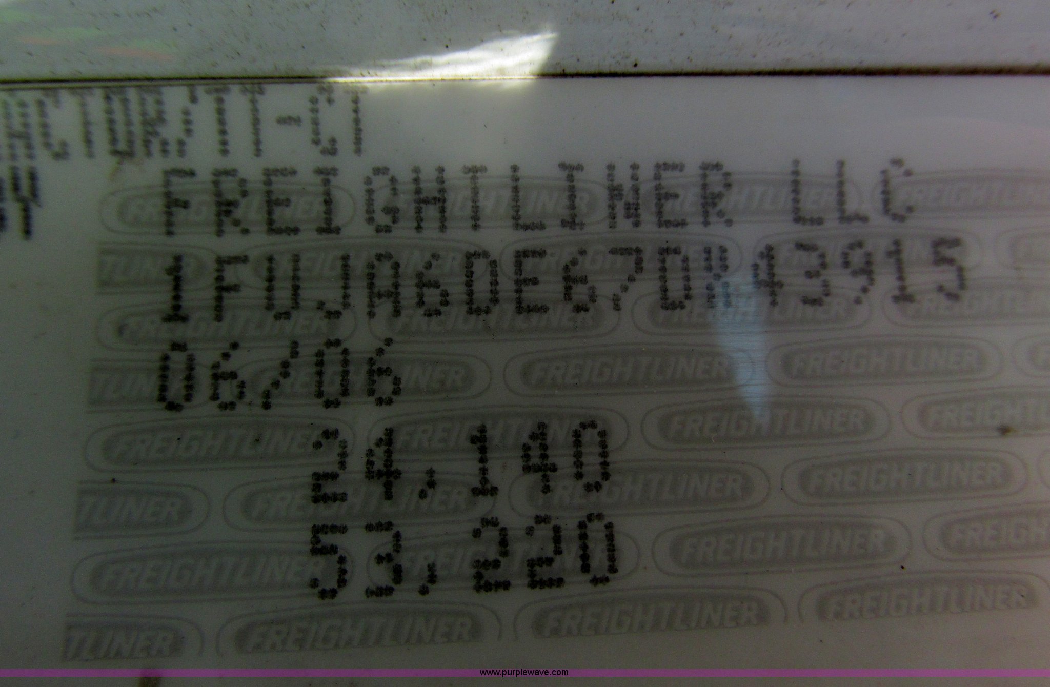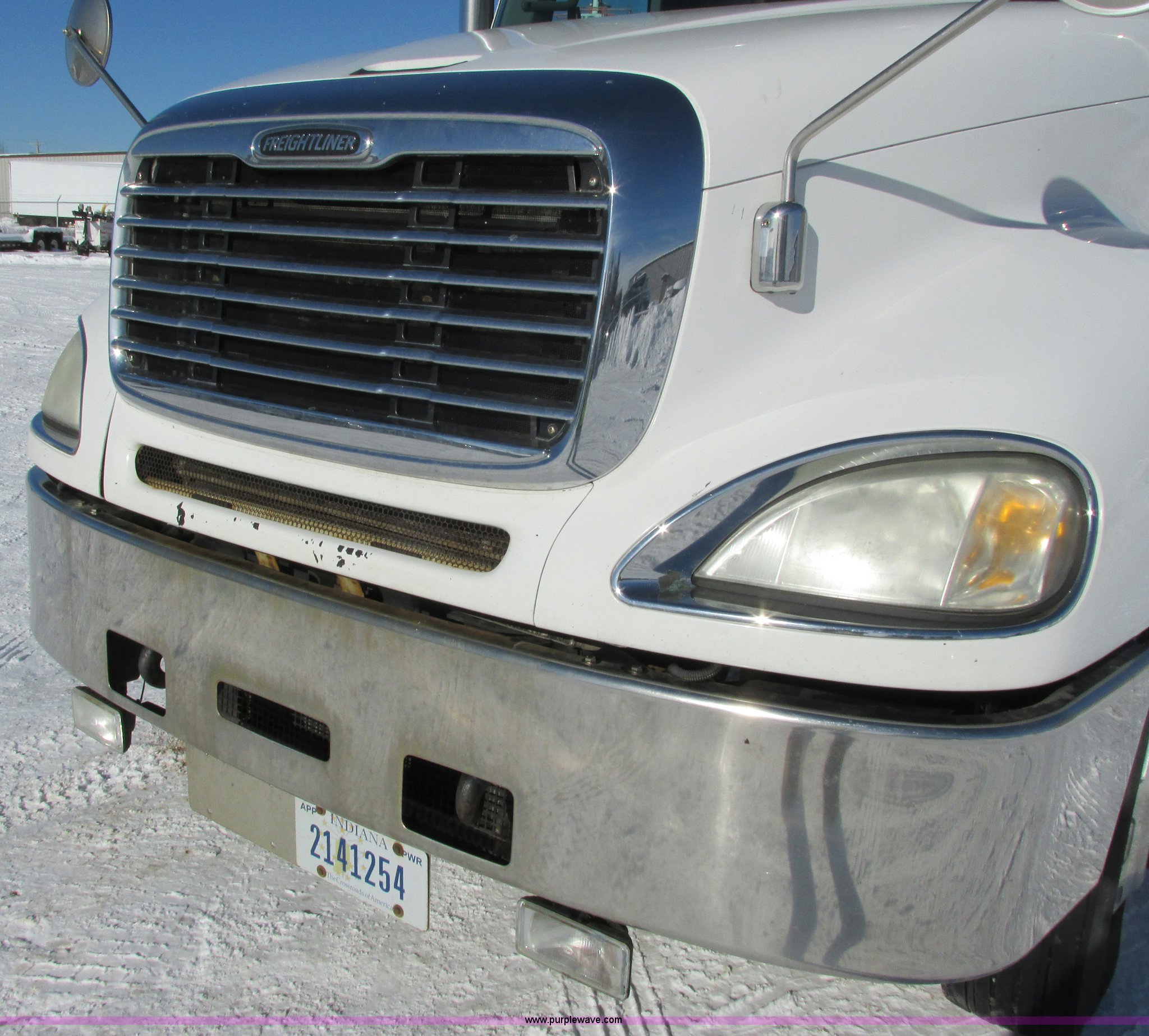 Purple Wave is selling a used Truck Tractor in Wisconsin. This item is a 2007 Freightliner Columbia 120 semi truck with the following: 400,119 miles on odometer, Caterpillar C13 12.5L L6 diesel engine, 10 speed manual transmission, Twin screw, AC and heat, AM/FM/CD, Passenger daylight door, Air suspension seat, Power windows, Heated mirrors, Visor, Chrome bumper, Headache rack, Window, Storage, Chain hanger, Dual 90 gallon fuel tanks, Dual rear exhaust stack, PTO, Wet kit, Dump valves, Spring suspension, Air brakes, Jake brake, 212" wheelbase, Front aluminum wheels, 11R24.5 tires, GVWR 53,220 lbs, FAWR 13,200 lbs, IAWR 20,000 lbs, RAWR 20,000 lbs, Weak batteries, EIN 674474RA