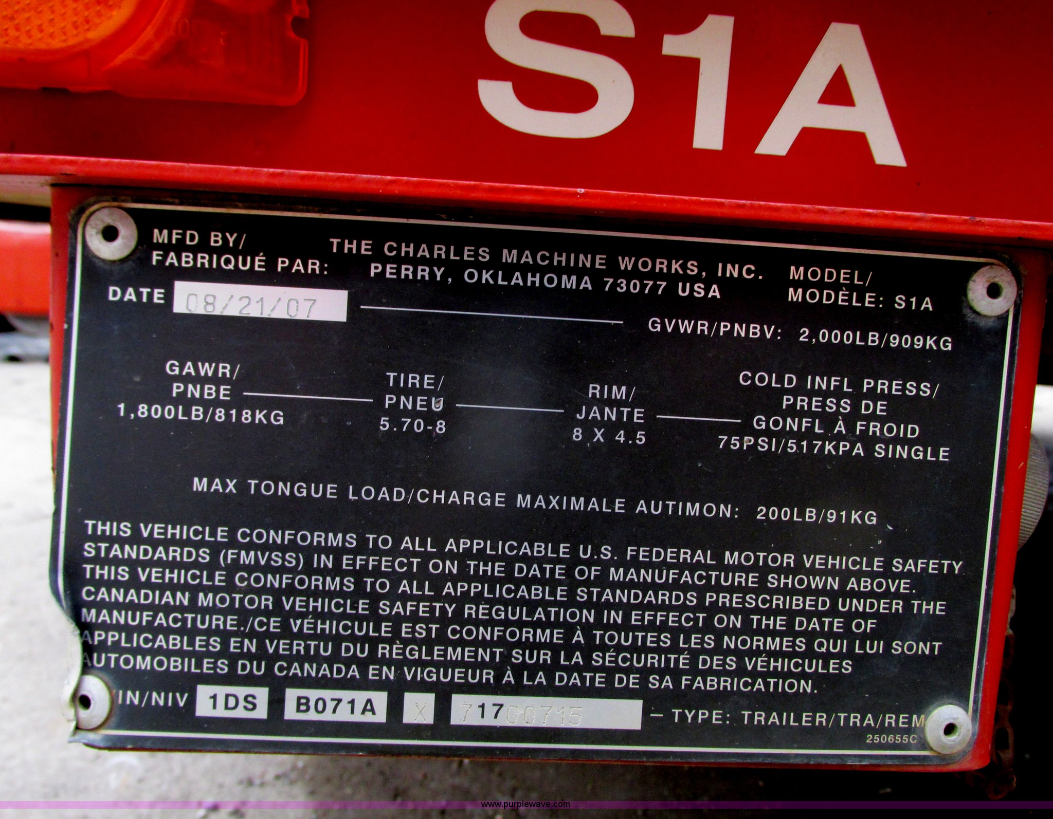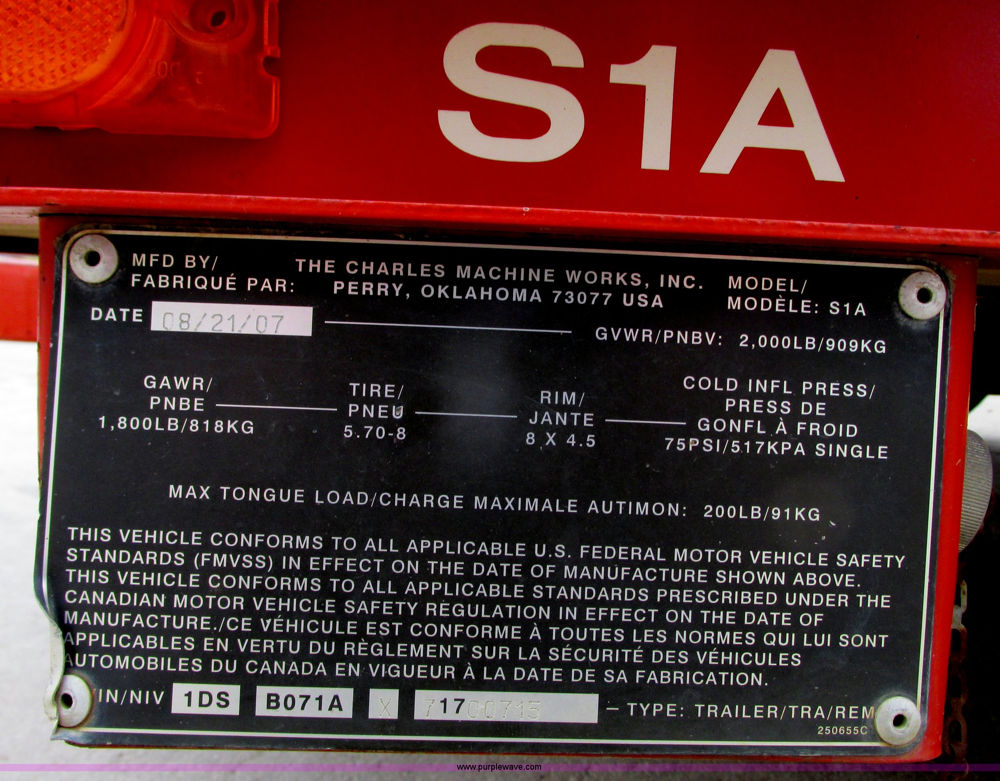 Purple Wave is selling a used Car or Utility Trailer in Illinois. This item is a 2007 Ditch Witch S1A trailer with the following: 78"L x 50"W, Steel and wood decking, 2" ball hitch, Jack stand, Four point tie downs, 8x4.5 wheels, 5.70-8 tires, GVWR 2,000 lbs, GAWR 1,800 lbs, EIN 720302RA