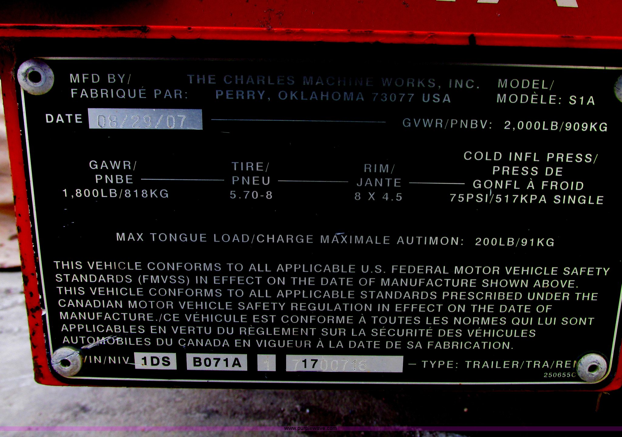 Purple Wave is selling a used Car or Utility Trailer in Illinois. This item is a 2007 Ditch Witch S1A trailer with the following: 78"L x 50"W, Steel and wood decking, 2" ball hitch, Jack stand, Four point tie downs, 8x4.5 wheels, 5.70-8 tires, GVWR 2,000 lbs, GAWR 1,800 lbs, EIN 720301RA