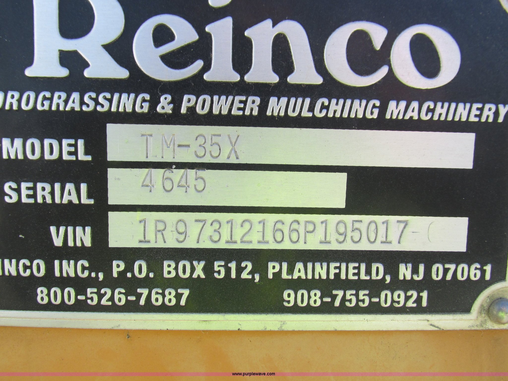 Reinco TM-35X straw blower. 125 hours on meter, Trailer mounted mulcher, Kubota four cylinder diesel engine 34 HP, 65' discharge distance, Seven tons per hour capacity, Manual feed, Direct drive, 360 degree rotation, 60 degree articulation, Serial 4645, EIN 701279RA. View item removal requirement and like-kind exchange information. United Rentals - Springfield. 2700 E Kearney. Springfield, MO 65803