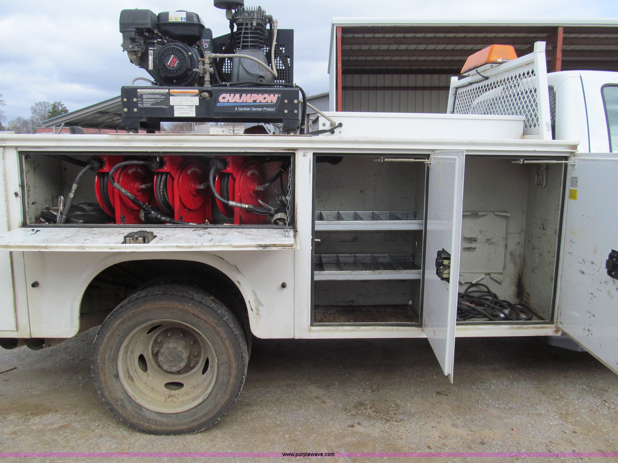 Purple Wave is selling a used Service Truck in Alabama. This item is a 2008 Ford F550 Super Duty XL service truck with the following: 187,501 actual miles, 6.4L V8 OHV 32V turbo diesel engine, Automatic transmission, Tilt, Cruise, AM/FM/CD, Manual windows and locks, Vinyl interior, Cloth cover, Auxiliary controls, Knapheide 11' utility bed, (8) storage compartments, Internal storage, 5" mounted vise, Work lights, Champion air compressor, Honda GX270 gas engine, 8.5 HP, 175 max psi, Hose, reel, and nozzle assembly, Graco oil, lube, and grease system, Motor/hydraulic reservoirs, Graco Fireball 300 pumps, Hose, reel, and nozzle assembly,, Front tow hooks, Front auxiliary hookup, Receiver hitch, Trailer wiring, 225/70R19.5 tires, Vinyl seat damage, Cracked windshield, Rear bumper collision damage, EIN 732580RA