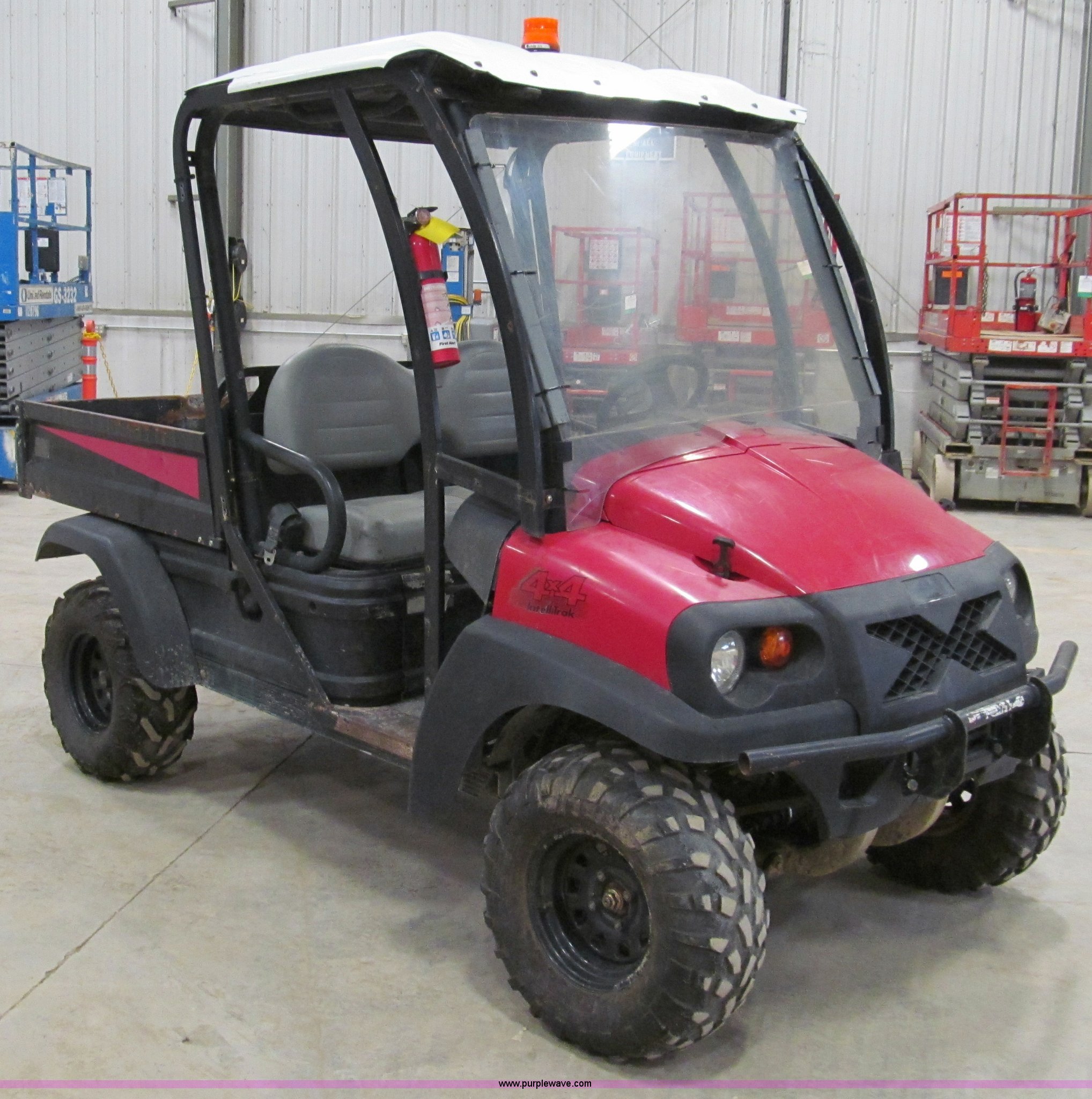 Purple Wave is selling a used Utility Vehicle in Ohio. This item is a 2008 Club Car XRT 1550G utility vehicle with the following: 549 hours on meter, Kawasaki 675 C.I.D. two cylinder gas engine, 20 HP, Automatic transmission, Four wheel drive, 4'L x 4'W x 11'H dump bed, Push bar, 25 x 11.00-12 NHS tires, EIN 750634RA