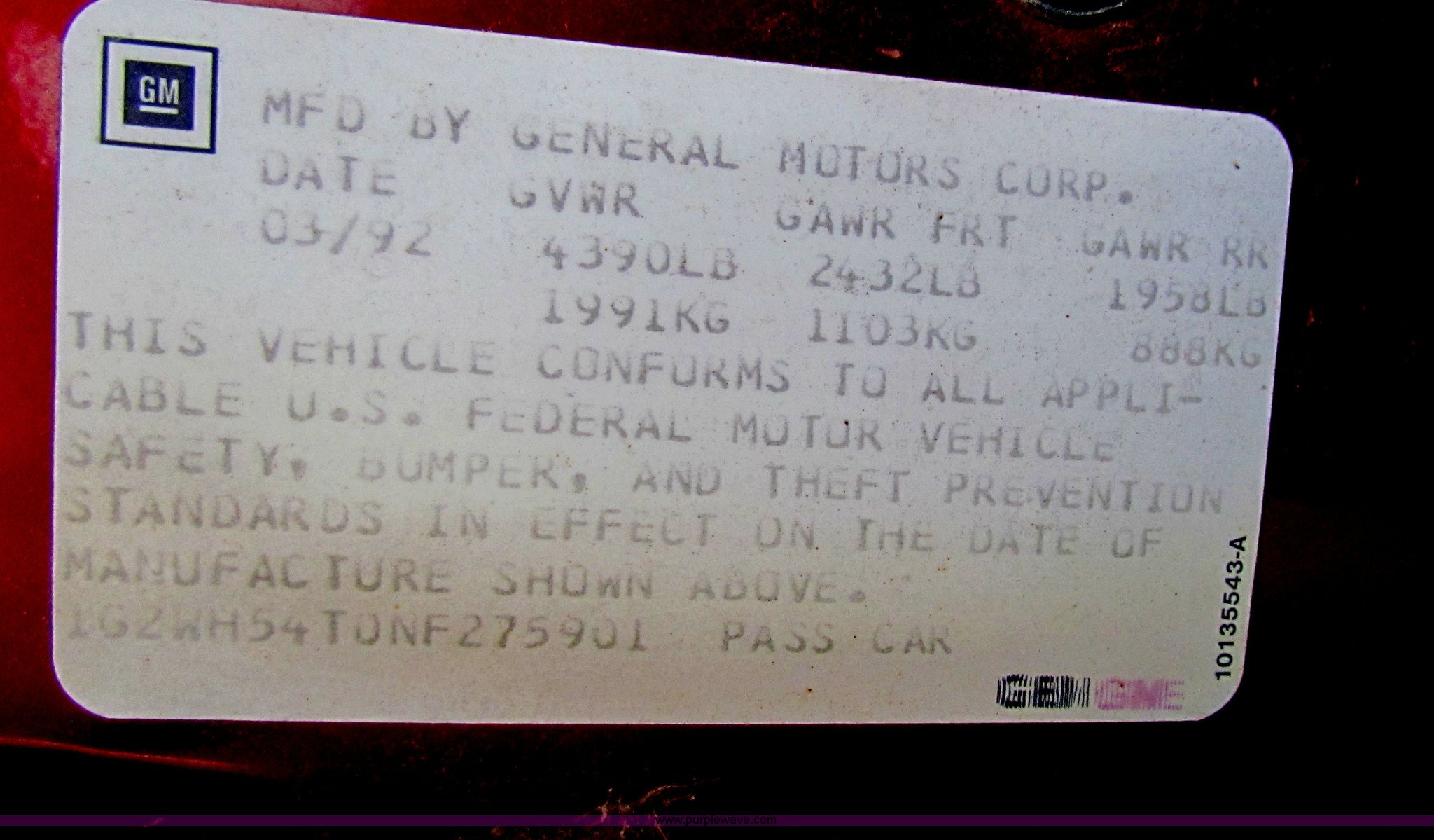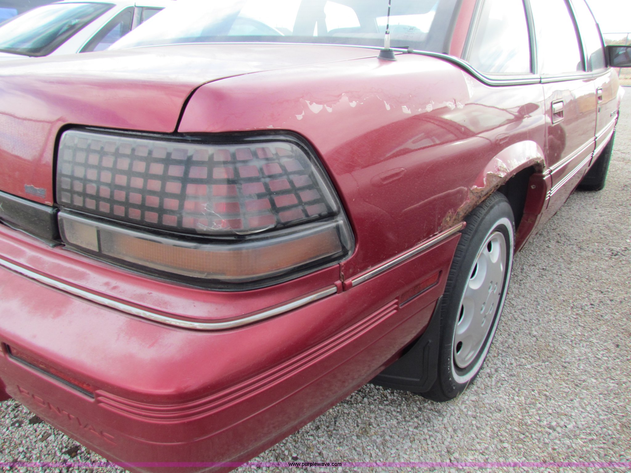 Purple Wave is selling a used Passenger Vehicle in Kansas. This item is a 1992 Pontiac Grand Prix LE with the following: 115,714 miles on odometer, 3.1L V6 OHV 12V gas engine, Automatic transmission, AC and heat, Tilt, Cruise, AM/FM, Power windows and locks, 205/75R15 tires, Paint peeling, Interior/exterior cosmetic damage, Unknown operating condition