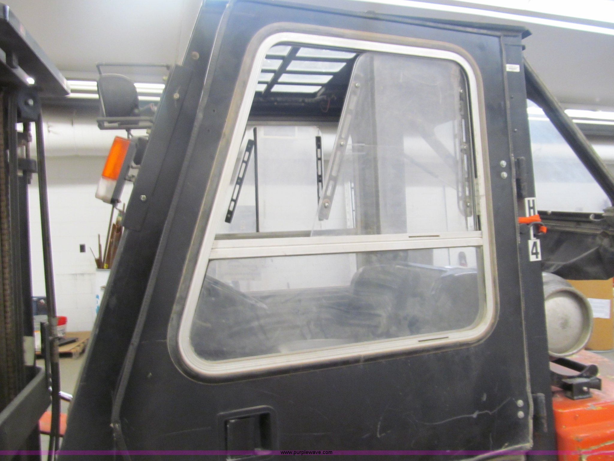 Purple Wave is selling a used Cushion Tire or Pneumatic Forklift in Kansas. This item is a Nissan 50 forklift with the following: 13,129 hours on meter, Four cylinder LP engine, Martin 1176 ROPS, Fan, Windshield wiper, Sliding side windows, Serial 015958, 5,000 lbs maximum lift capacity, Three stage mast, Side shift, 4' forks, Front work lights, Rear pin hitch, 7.00 x 12 tires, 6.00 x 9 tires, LP tank is not included, Serial E349041