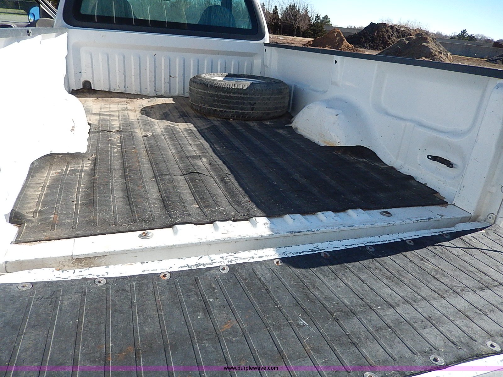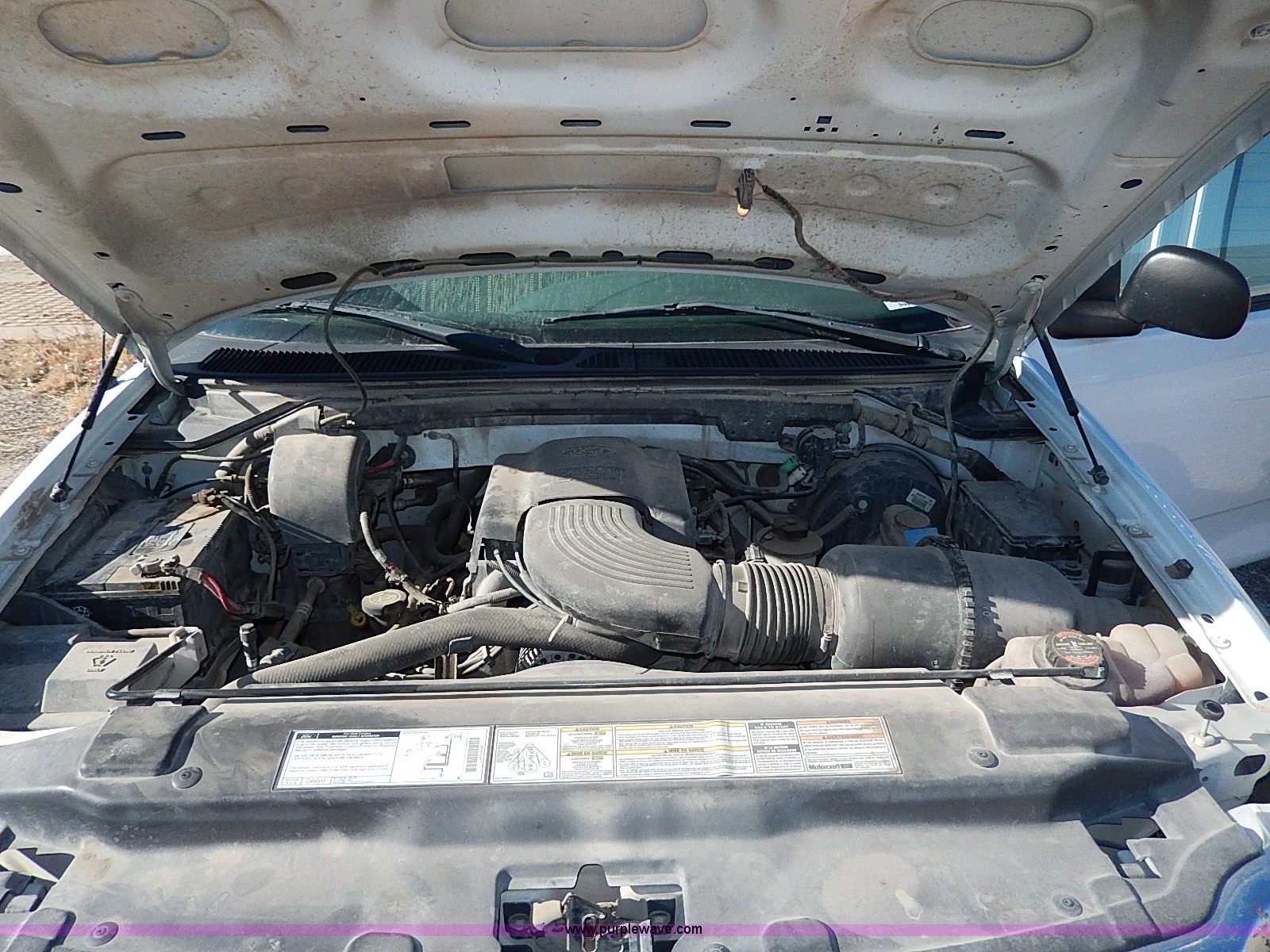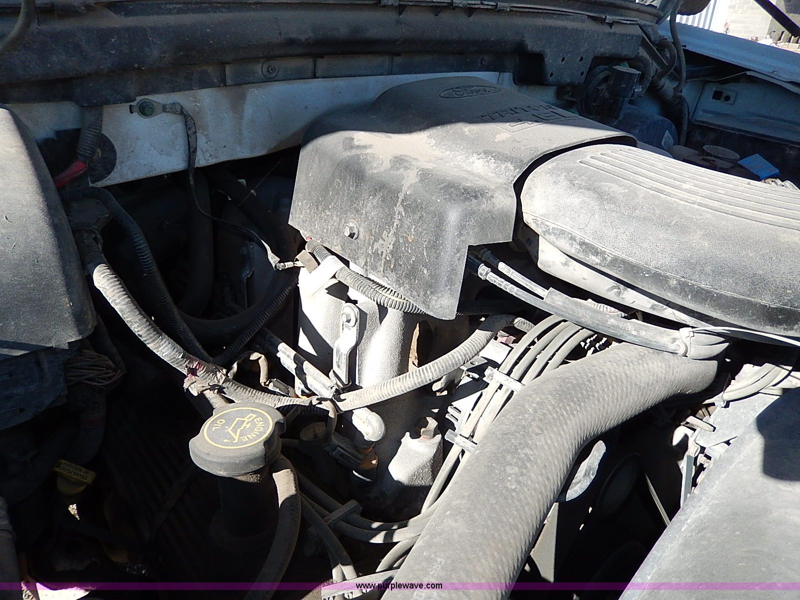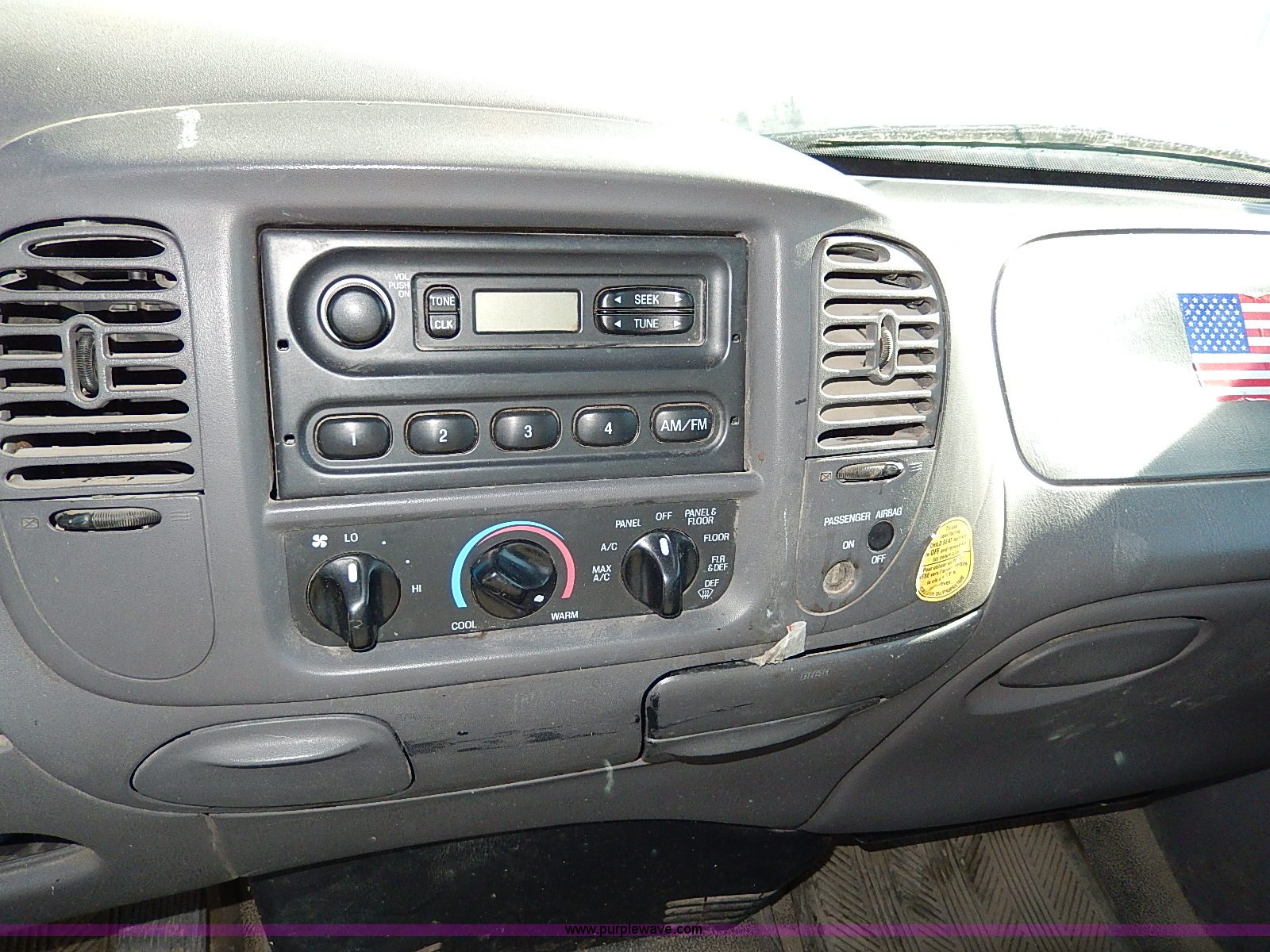 Purple Wave is selling a used Passenger Vehicle in Kansas. This item is a 1999 Ford F150 XL pickup truck with the following: 104,097 miles on odometer, 4.6L V8 SOHC 16V gas engine, Automatic transmission, AC and heat, Tilt, Cruise, AM/FM/cassette, Manual windows and locks, Cloth interior, Long bed, Bed mat, 255/70R16 tires, Engine uses oil, Third gear inoperable, Interior/exterior cosmetic damage, Dents and scratches, Rust, Ball not included, Heater and radiator repaired in 2012