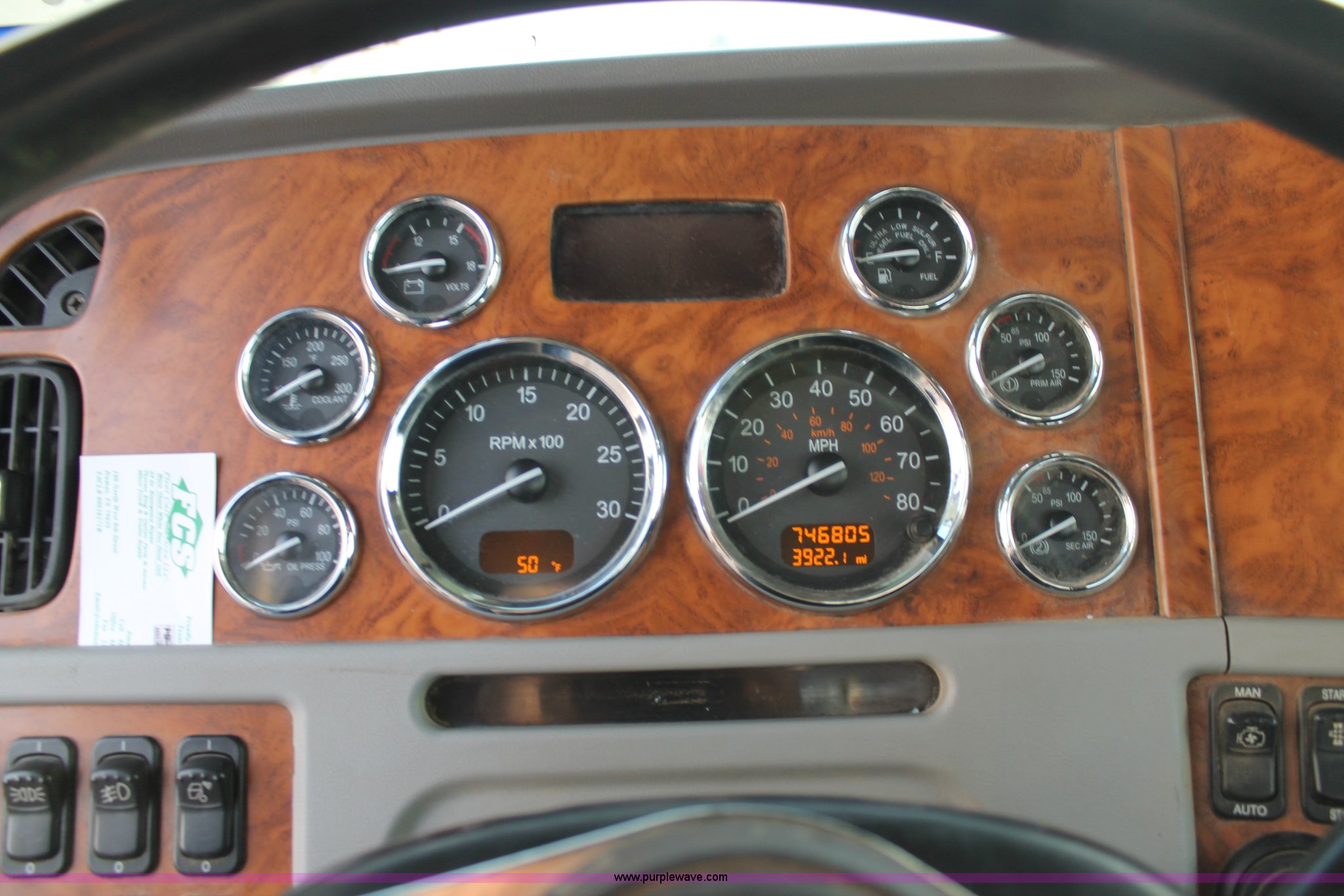Purple Wave is selling a used Truck Tractor in Texas. This item is a 2009 Peterbilt 367 semi truck with the following: 746,805 miles on odometer, Cummins ISX 14.9L L6 diesel engine, Eaton Fuller Autoshift 18 speed automatic transmission, AC and heat, Cruise, AM/FM/CD, Passenger daylight door, Air suspension seat, Power windows and mirrors, Air ride cab, Visor, Chrome bumper, Dual fuel tanks, 100 and 90 gallon capacity, Dual rear exhaust stack, Steel deck plate, Wet kit, Air suspension, Air brakes, Wheel covers, 285/75R24.5 tires, FAWR 14,600 lbs, RAWR 46,000 lbs