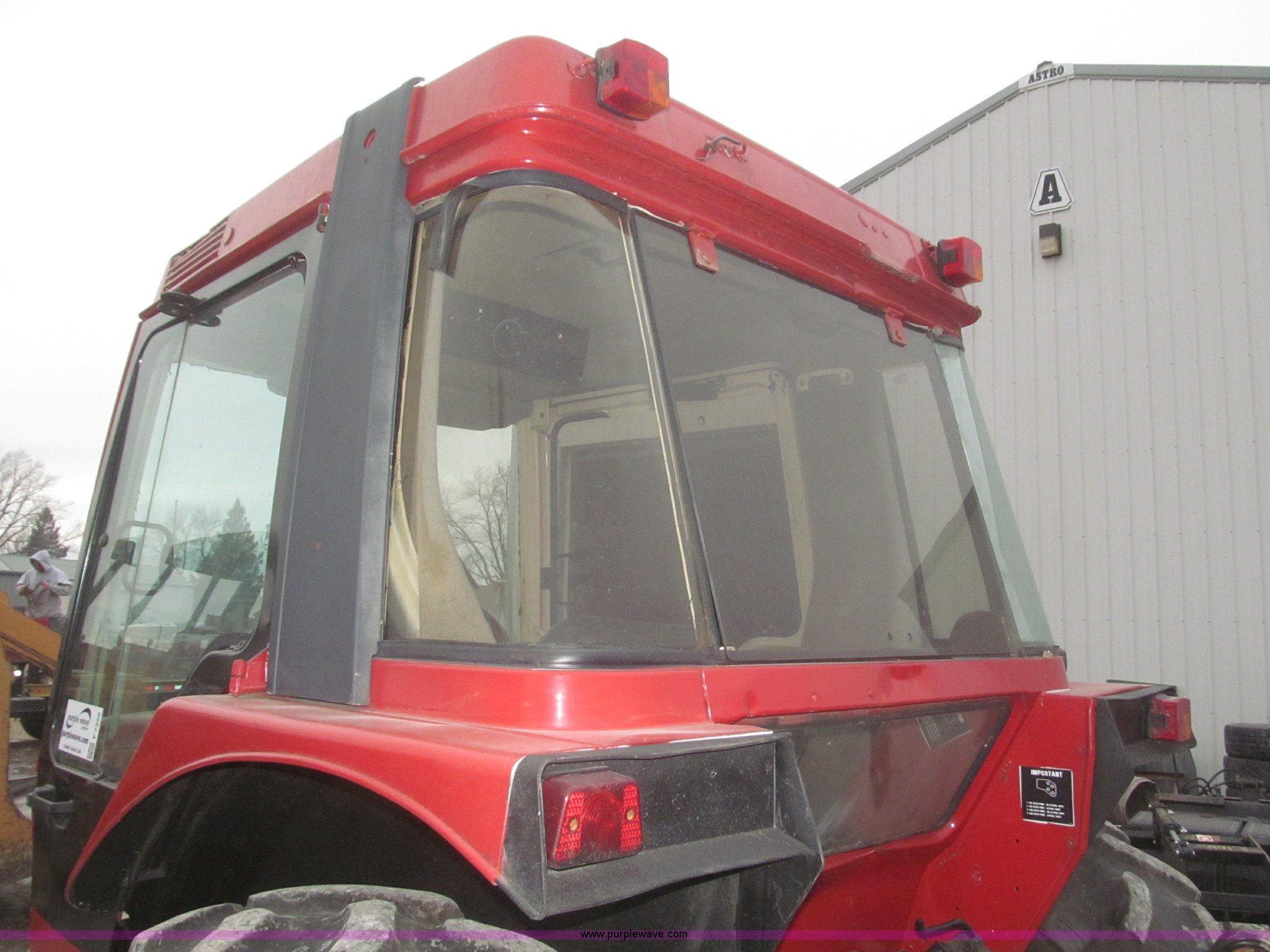 Purple Wave is selling a used Tractor in Iowa. This item is a 1994 Case IH 4210 utility tractor with the following: Case D239 3.9L four cylinder diesel engine, 72 HP, Synchro transmission, 8F-4R gears, Heat, Spring suspension seat, Shades and visors, Cab roof top emergency hatch, Category II three point, Auxiliary outlet, 540 PTO, Rear hydraulic remote, 20 gallon fuel tank, 88.7" wheelbase, 11L-15SL front tires, 16.9-30 rear tires, Rear glass recently replaced, No latch on panel, Door latches need replaced, Right side door screwed shut, Bad latch, Cab door handles won't latch, Right side front tire worn, One lug nut missing on front wheels, One stud missing on front wheels, Serial 4210RXLJJE0901174