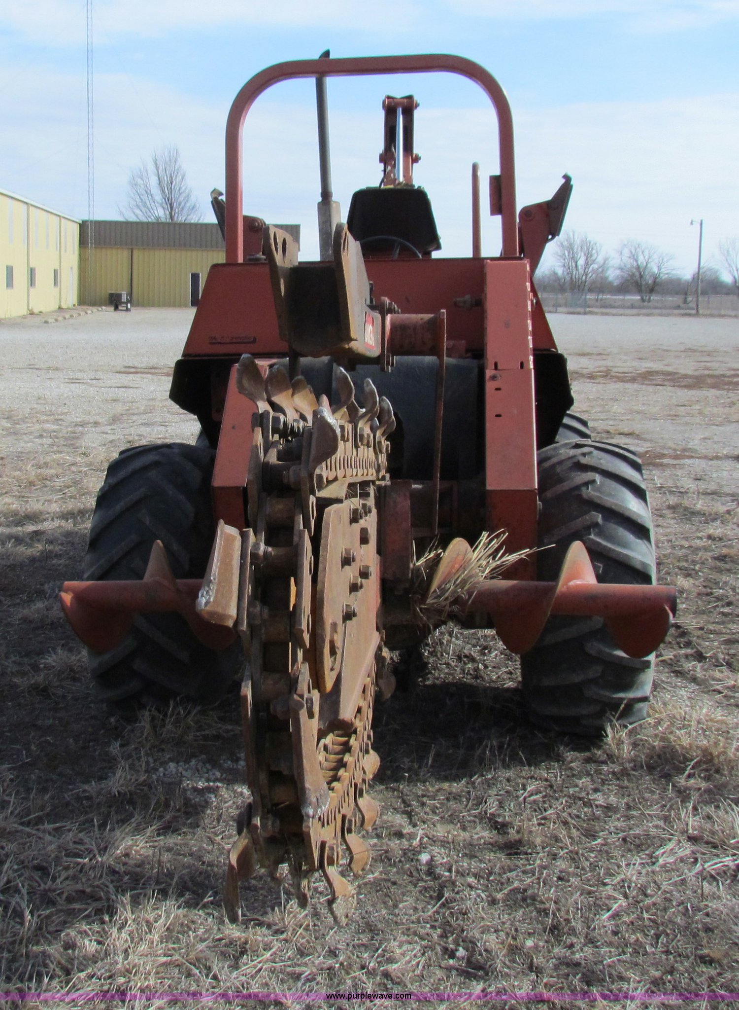 Purple Wave is selling a used Trencher or Rock Saw in Kansas. This item is a Ditch Witch 6510 trencher with the following: 660 hours on meter, Deutz four cylinder diesel engine, Four speed transmission, Four wheel drive, Crab steer, 6'W back fill blade, A420 backhoe, 18" backhoe bucket, 10.5L-16.1 tires, Recently replaced hydraulic cylinder, Makes noise when shifting into reverse, Serial 6B1199