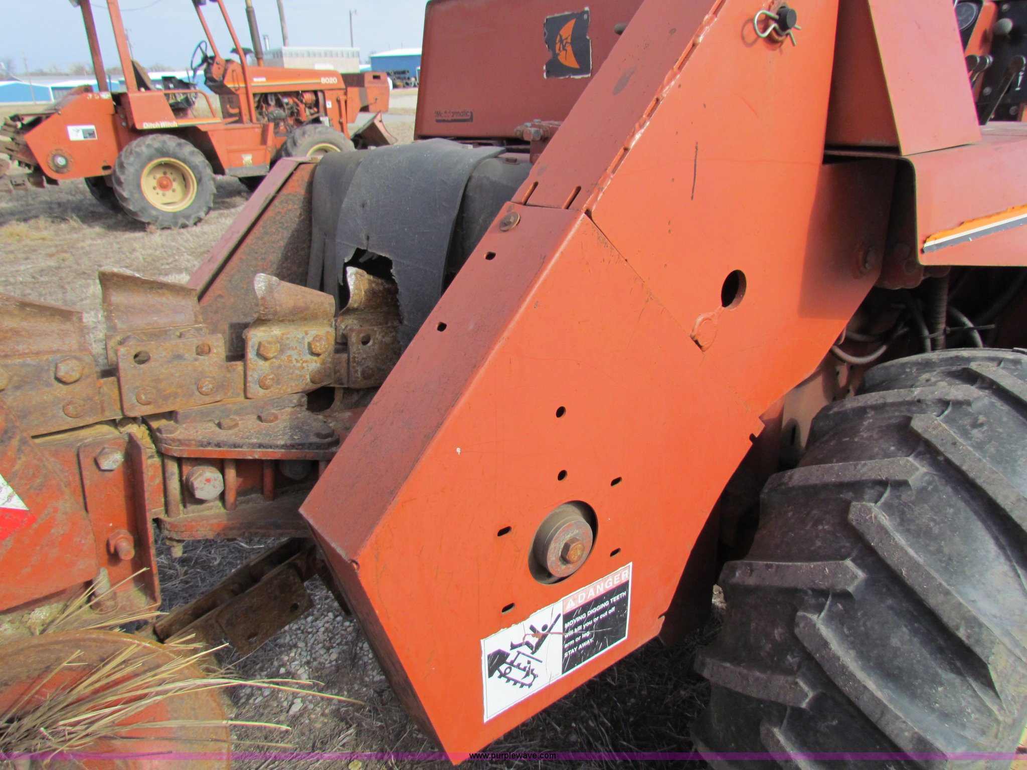 Ditch Witch 6510 trencher. 660 hours on meter, Deutz four cylinder diesel engine, Four speed transmission, Four wheel drive, Crab steer, 6'W back fill blade, A420 backhoe, 18" backhoe bucket, 10.5L-16.1 tires, Recently replaced hydraulic cylinder, Makes noise when shifting into reverse, Serial 6B1199. View equipment video. B&B Cooperative Ventures. Burlington, KS 66839
