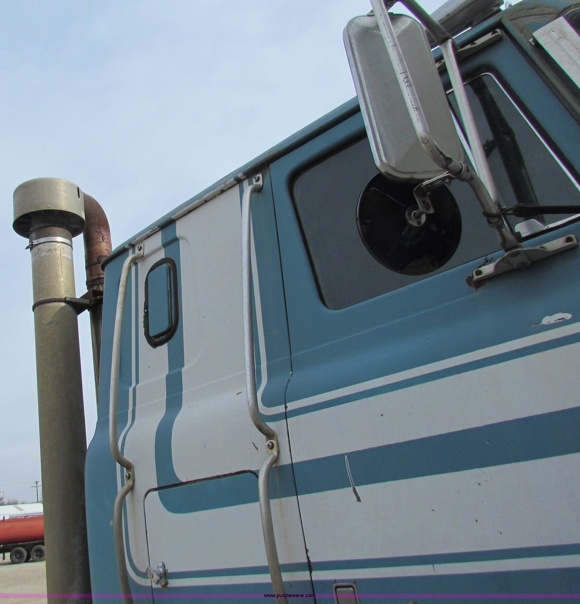 Purple Wave is selling a used Truck Tractor in Kansas. This item is a 1976 International Transtar II semi truck with the following: 728,557 miles on odometer, Not Actual Mileage, 2,705 hours on meter, Diesel engine, RT9513 nine speed manual transmission, Twin screw, Heat, Dual fuel tanks, Single rear exhaust stack, Spring suspension, Air brakes, 285/75R24.5 tires, Interior/exterior cosmetic damage
