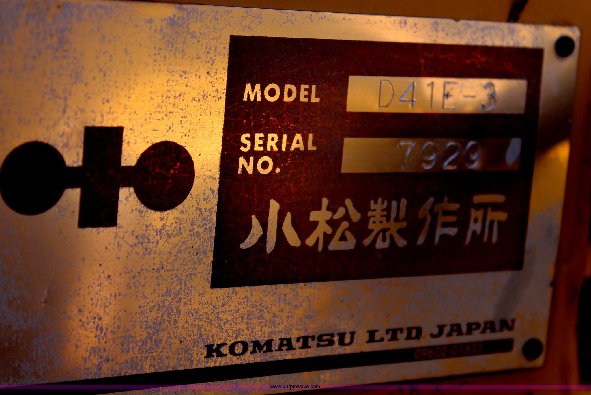 Take a look at this used 1996 Komatsu D41E-3 dozer being sold on February 27th, 2014 in the SOLD! February 27 Construction Equipment Auction made by Komatsu. Take a look at all of the item information below or take a look at similar auctions for Crawlers.