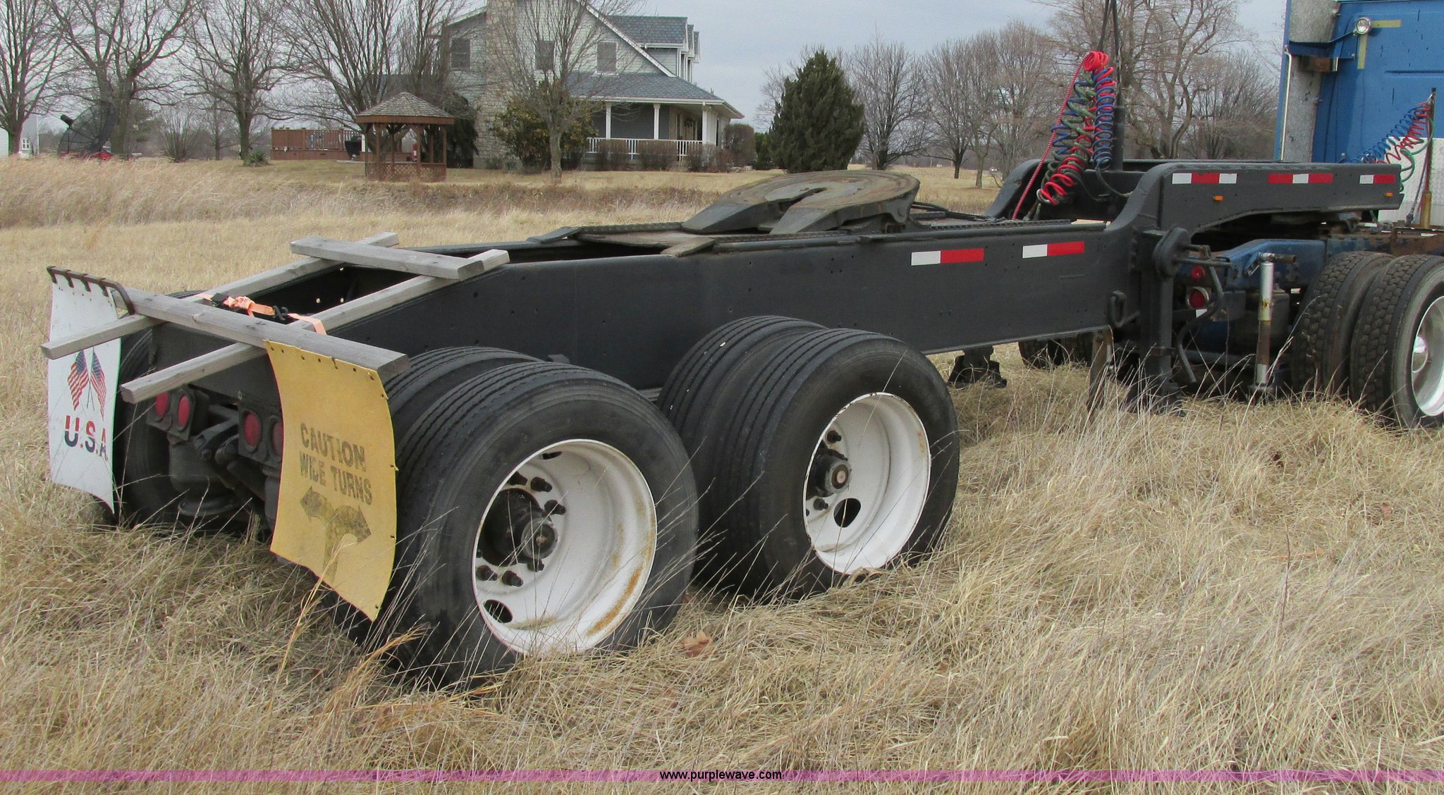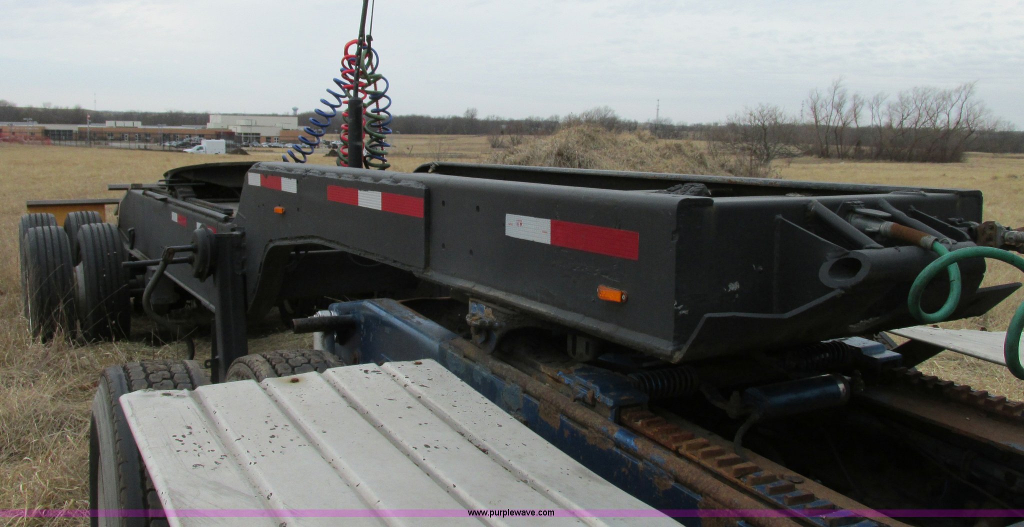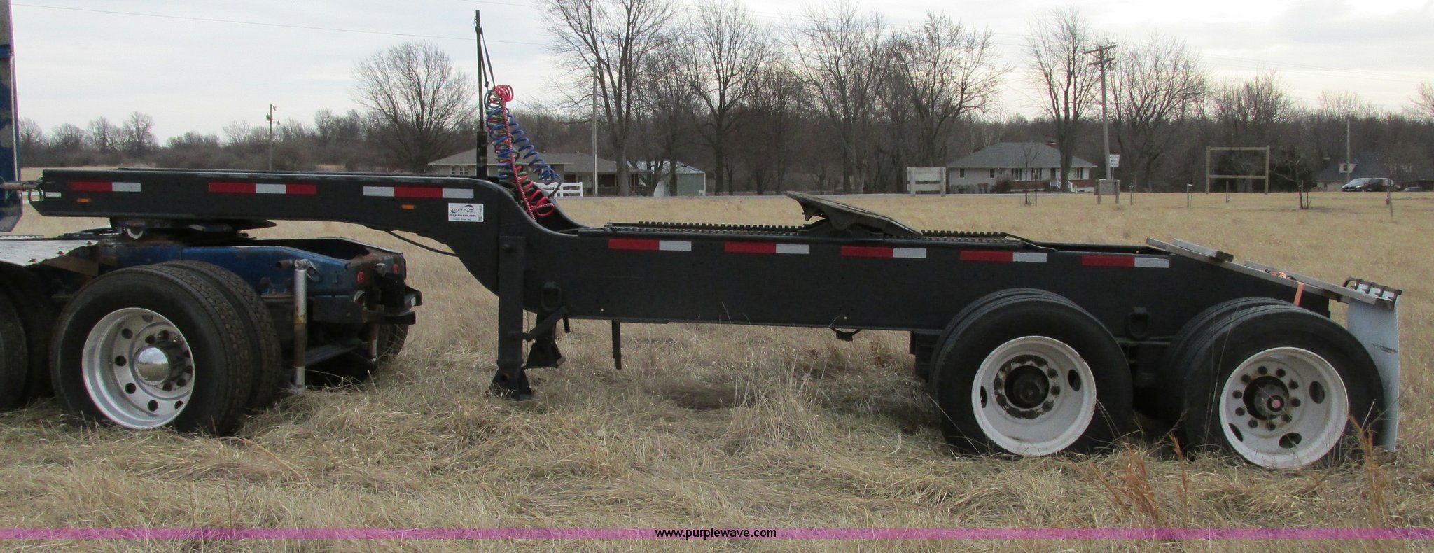 Purple Wave is selling a used Trailer Other in Missouri. This item is a 1980 shop built heavy haul jeep trailer with the following: 24' overall length, 102"L neck, Sliding fifth wheel plate, 84" adjustment, Tail lights, Removable mud flaps, D-ring tie downs, Air suspension, Air brakes, Steel wheels, 275/70R22.5 tires, GVWR 56,500 lbs, GAWR 18,000 lbs
