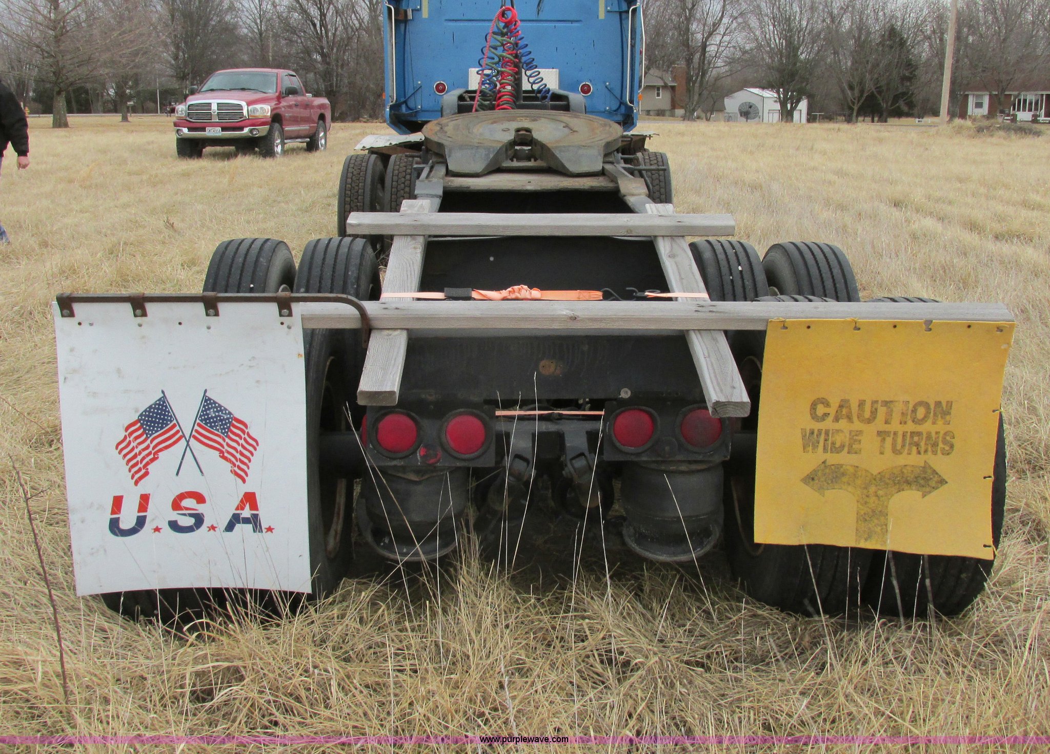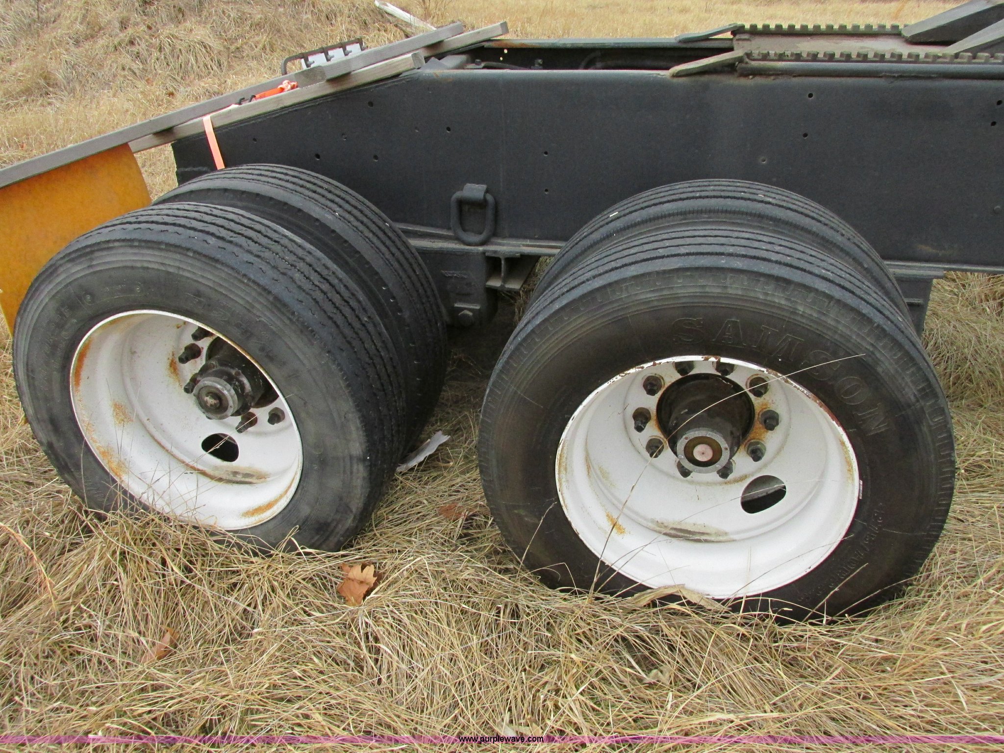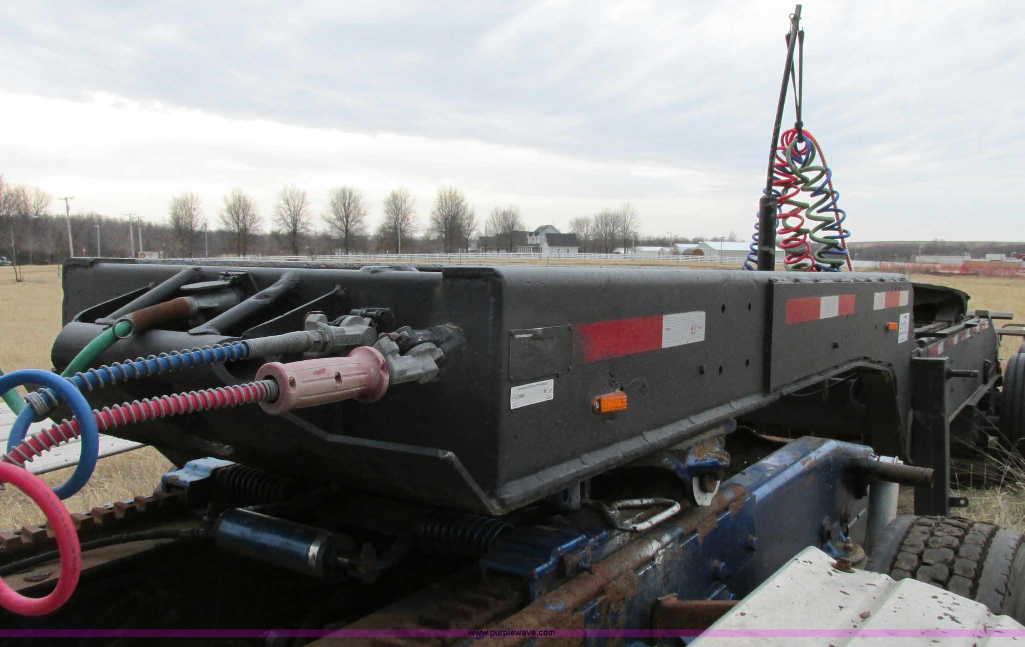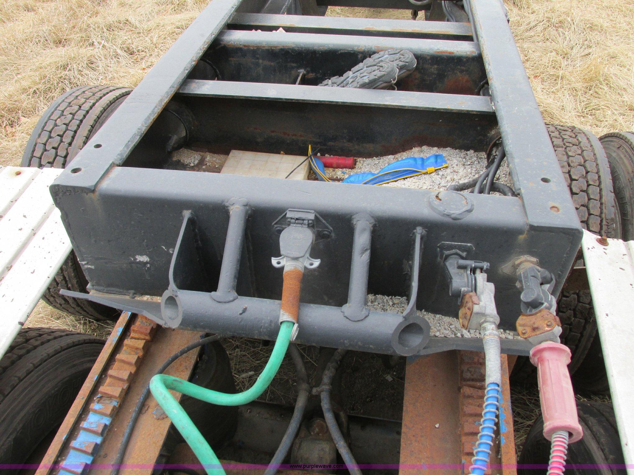 Purple Wave is selling a used Trailer Other in Missouri. This item is a 1980 shop built heavy haul jeep trailer with the following: 24' overall length, 102"L neck, Sliding fifth wheel plate, 84" adjustment, Tail lights, Removable mud flaps, D-ring tie downs, Air suspension, Air brakes, Steel wheels, 275/70R22.5 tires, GVWR 56,500 lbs, GAWR 18,000 lbs