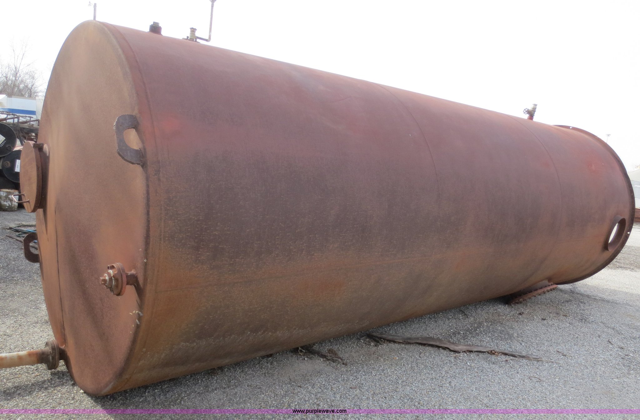 Purple Wave is selling a used Fuel and Lube in Oklahoma. This item is a 1971 steel tank with the following: 7'5"W x 18'H, 3/16" thick