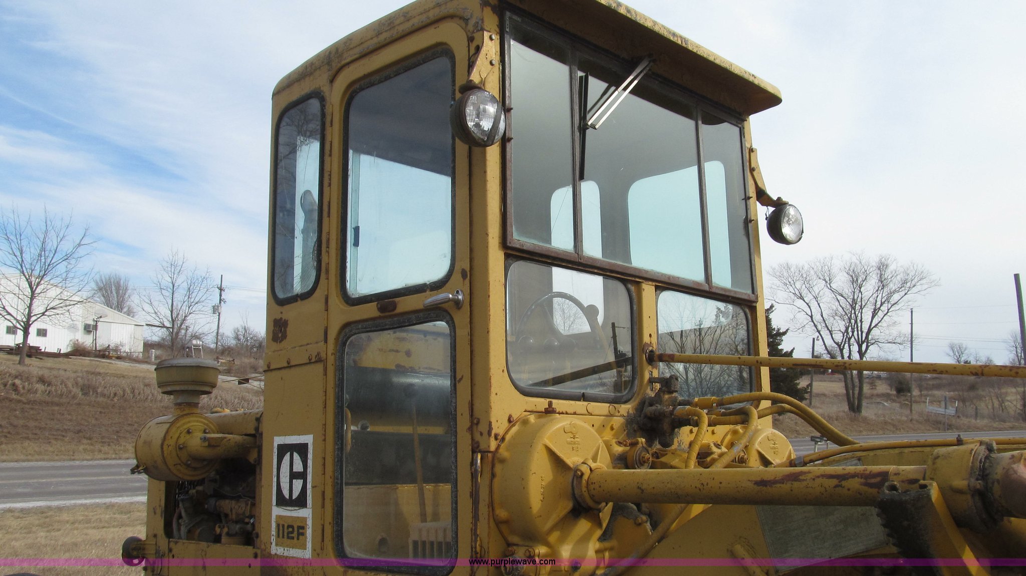 Purple Wave is selling a used Motor Grader in Missouri. This item is a 1973 Caterpillar 112F motor grader with the following: Unknown hours on meter, Caterpillar 3304 four cylinder diesel engine, Serial 78P4418, Direct-drive transmission, 6F-2R gears, Heat, Cab fan, High cab profile, Front and rear work lights, Front windshield wipers, Rear pin hitch, Rigid frame, 12' moldboard, Tip control, Side shift, Left and right blade extension, 13.00-24 rear tires, 22,455 lbs. base operating weight, Cab glass cracked, Serial 89J2028
