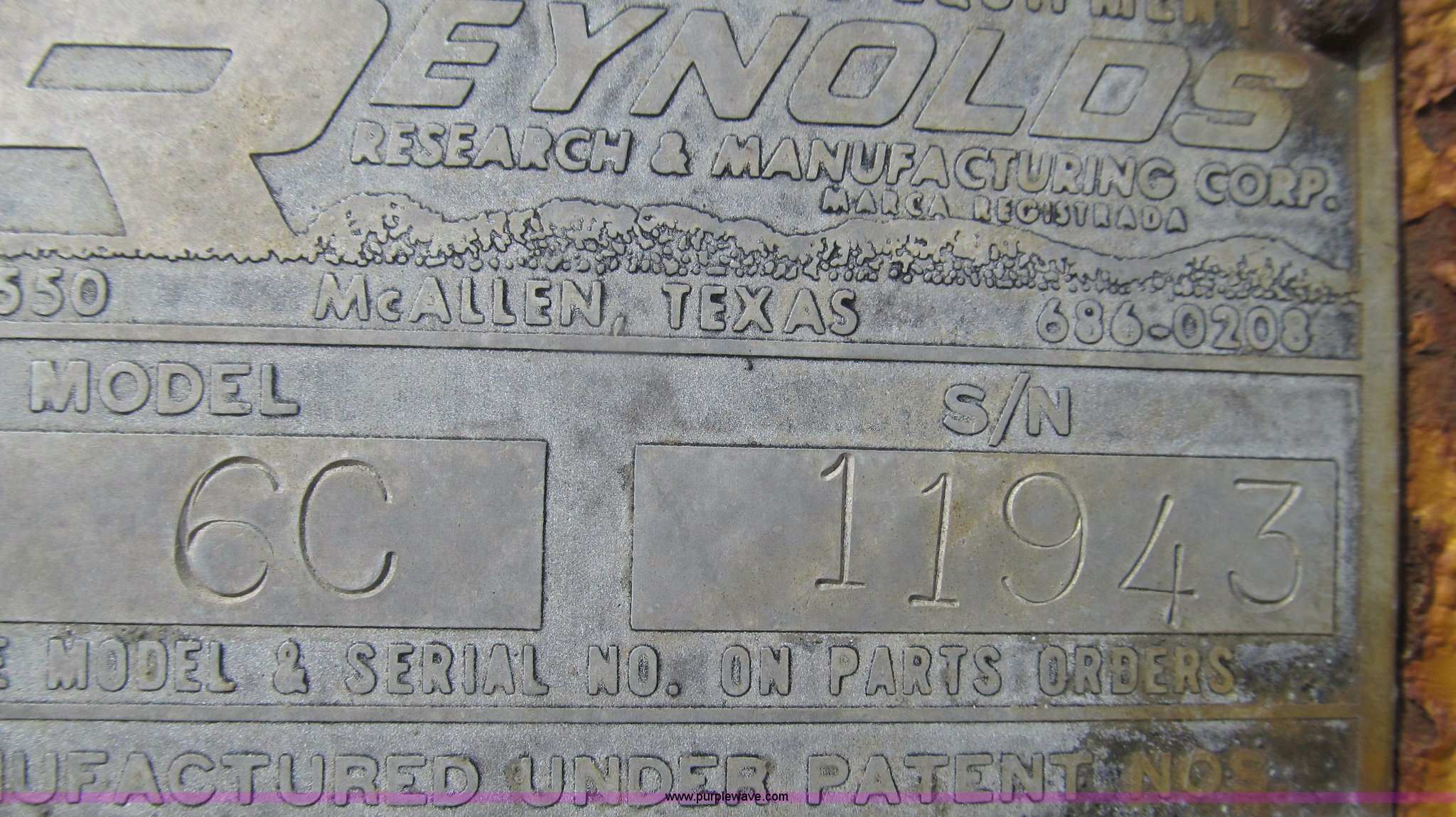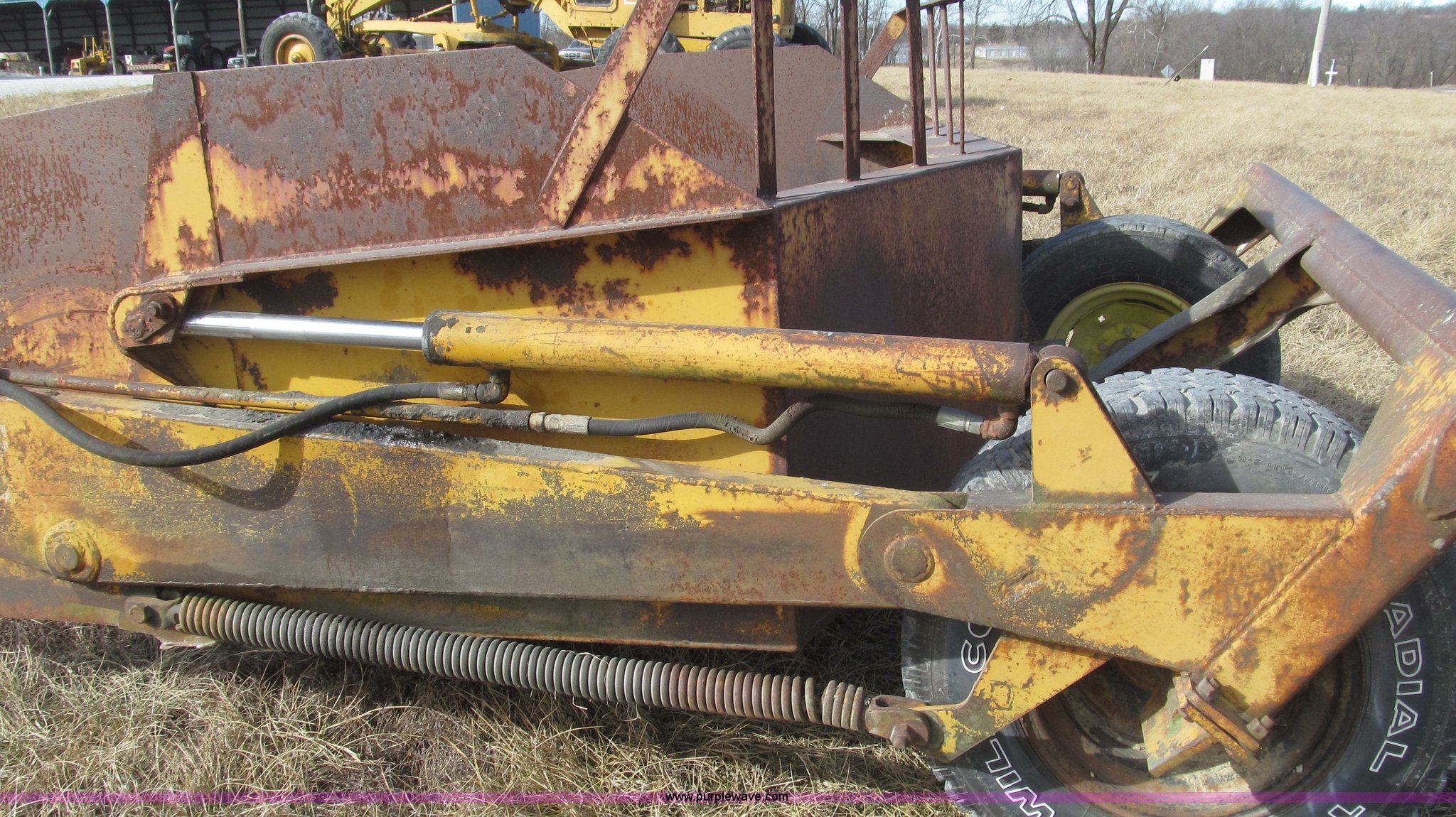 Purple Wave is selling a used Pull Type Scraper in Missouri. This item is a Reynolds pull type tandem scrapers with the following: Front model 6C, Reynolds rear dirt pan, Hydraulic controlled, 6C has hydraulic door, 6' bolt-on cutting edge on front scraper, 7' bolt-on cutting edge on rear scraper, 11L-16 tires on front scraper, 245/75R16 tires on rear scraper, Dual rear tires on front scraper, Single rear tires on rear scraper, Serial 11943