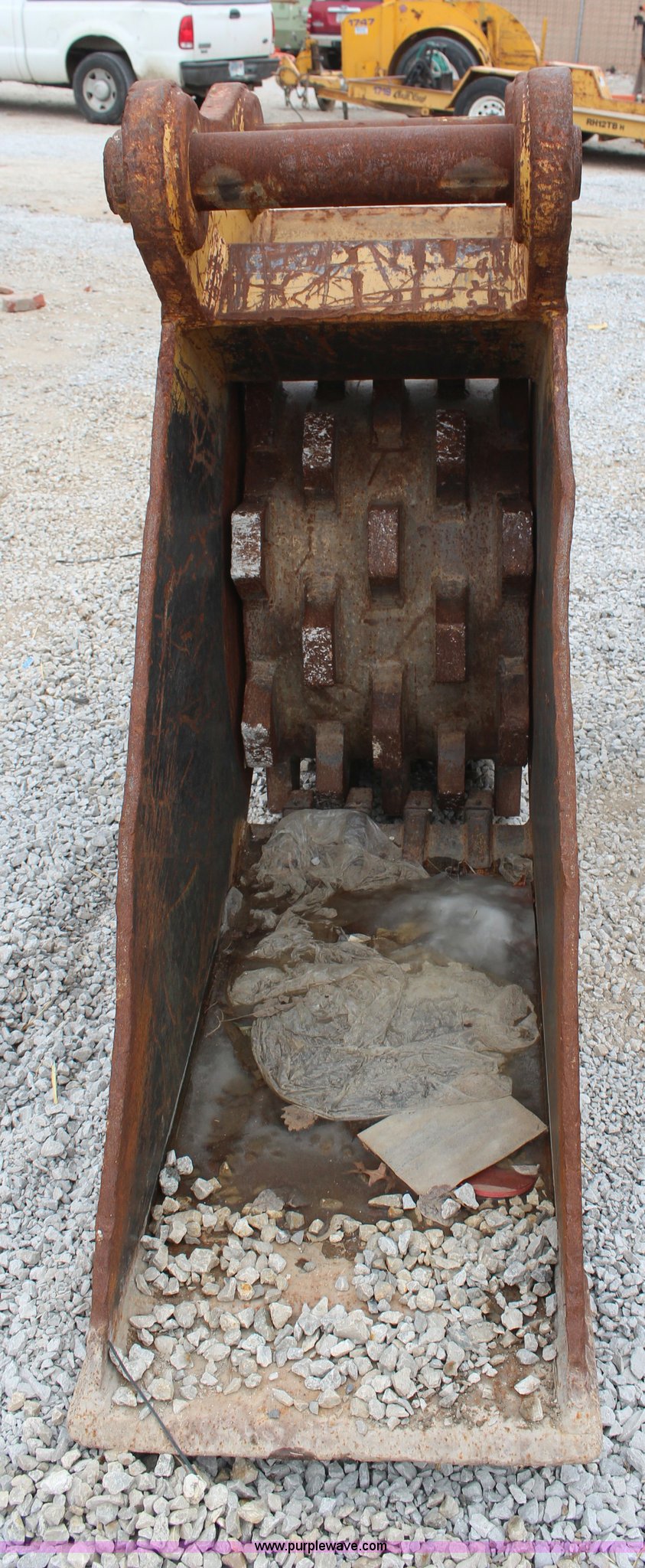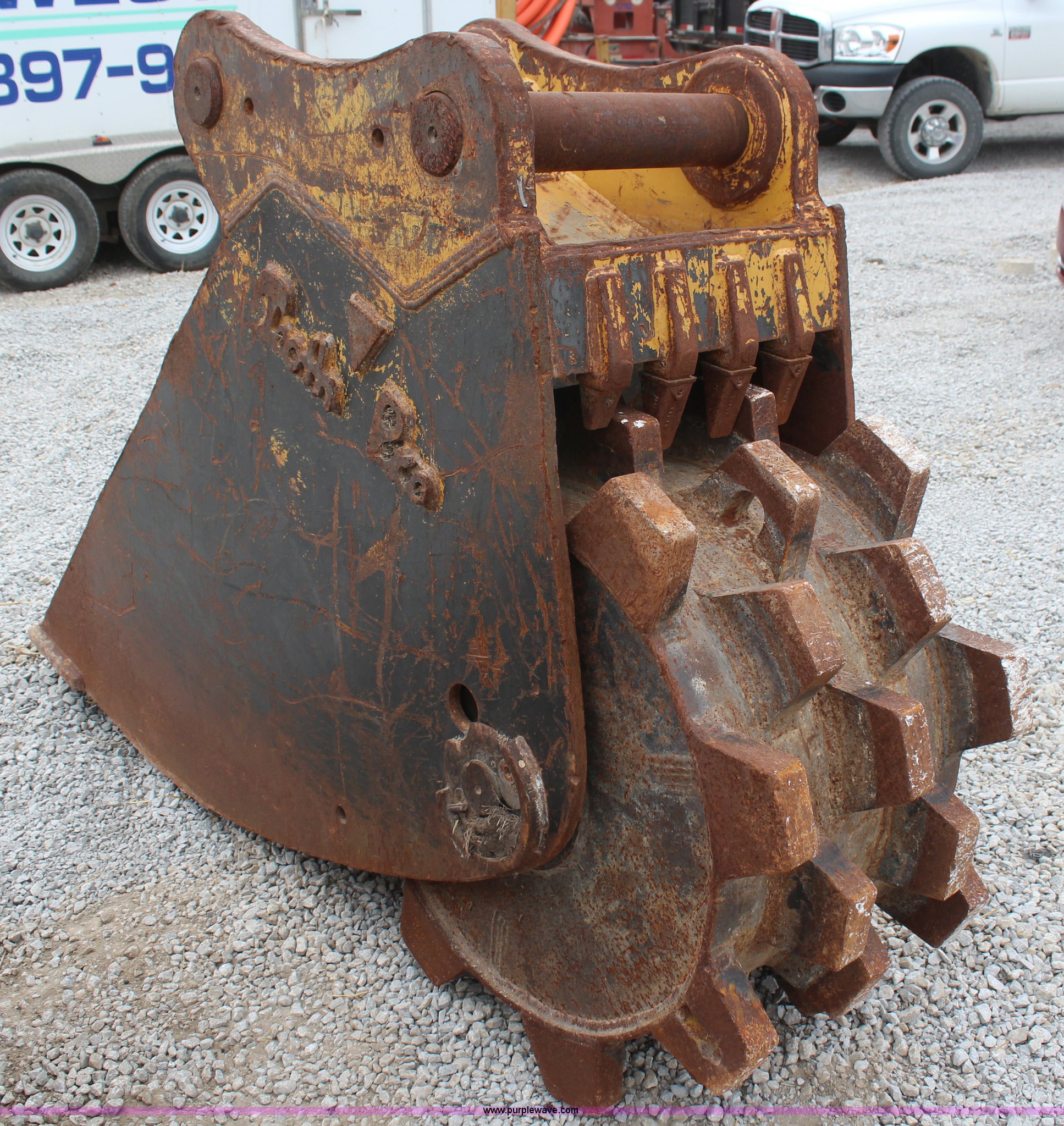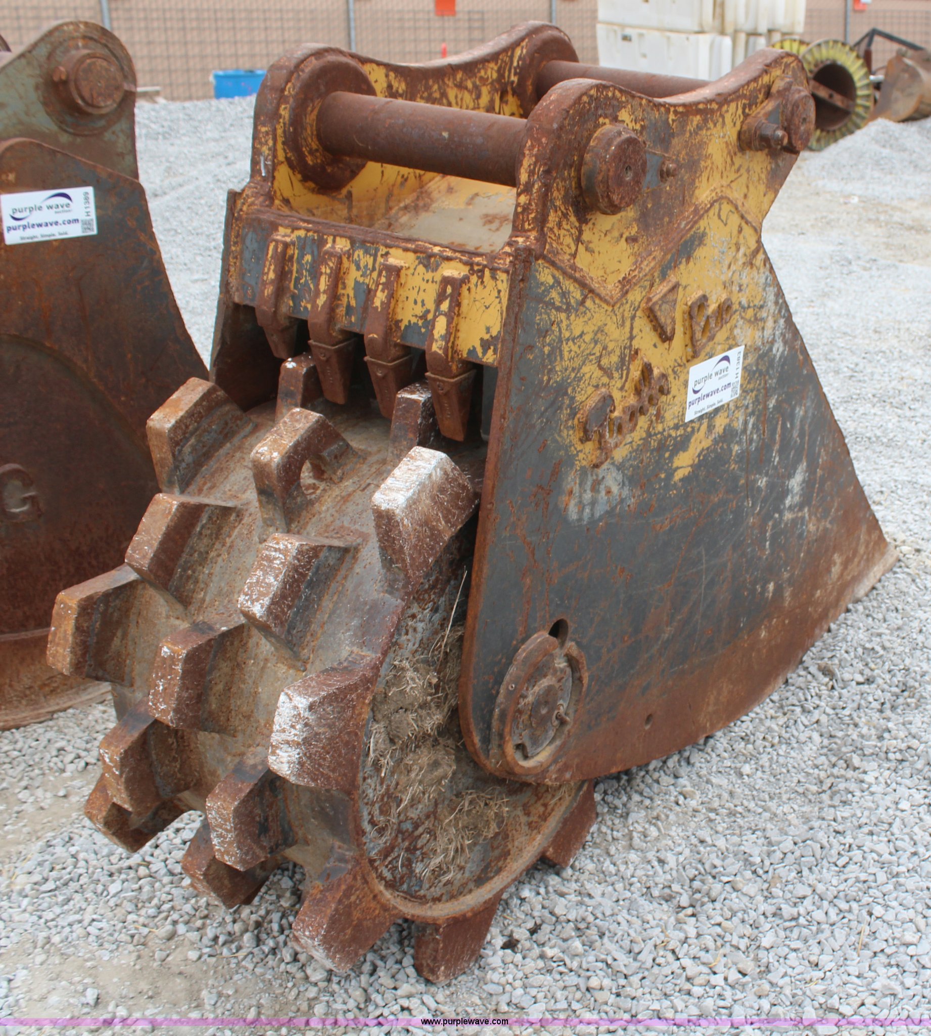 Purple Wave is selling a used Other Attach. or Equip. in Kansas. This item is a Tooth Pro 24" excavator bucket with the following: Compaction wheel, Fits John Deere 350