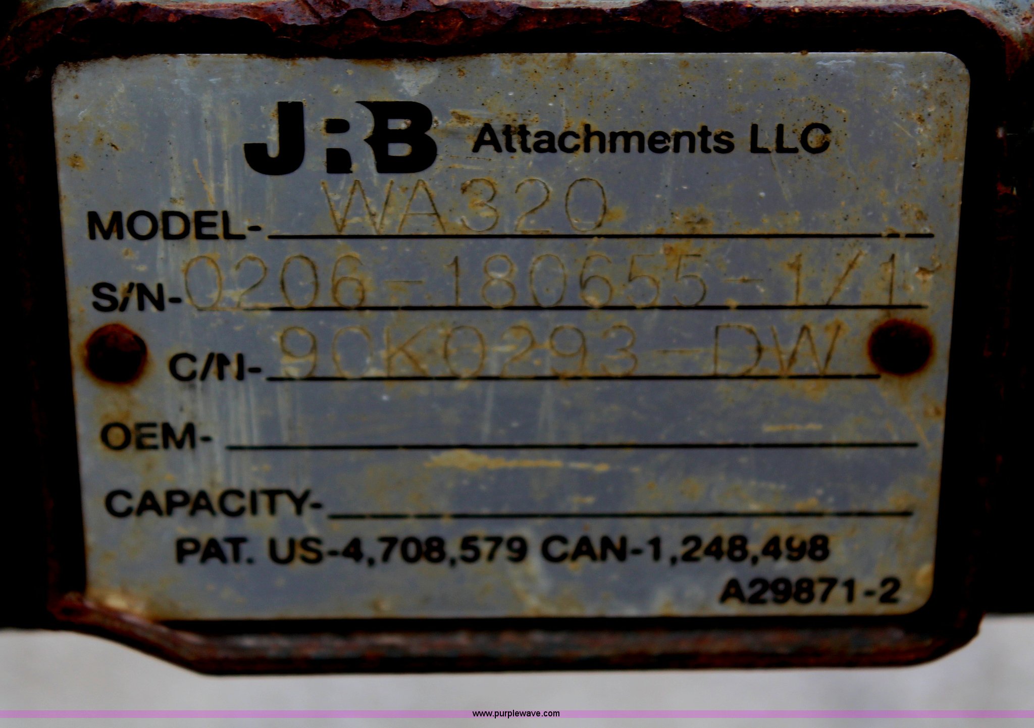 Purple Wave is selling a used Forklift Attach. in Kansas. This item is a JRB WA320 forks attachment with the following: 60"L x 6"W, 8'W carriage, Serial D206-180655-171