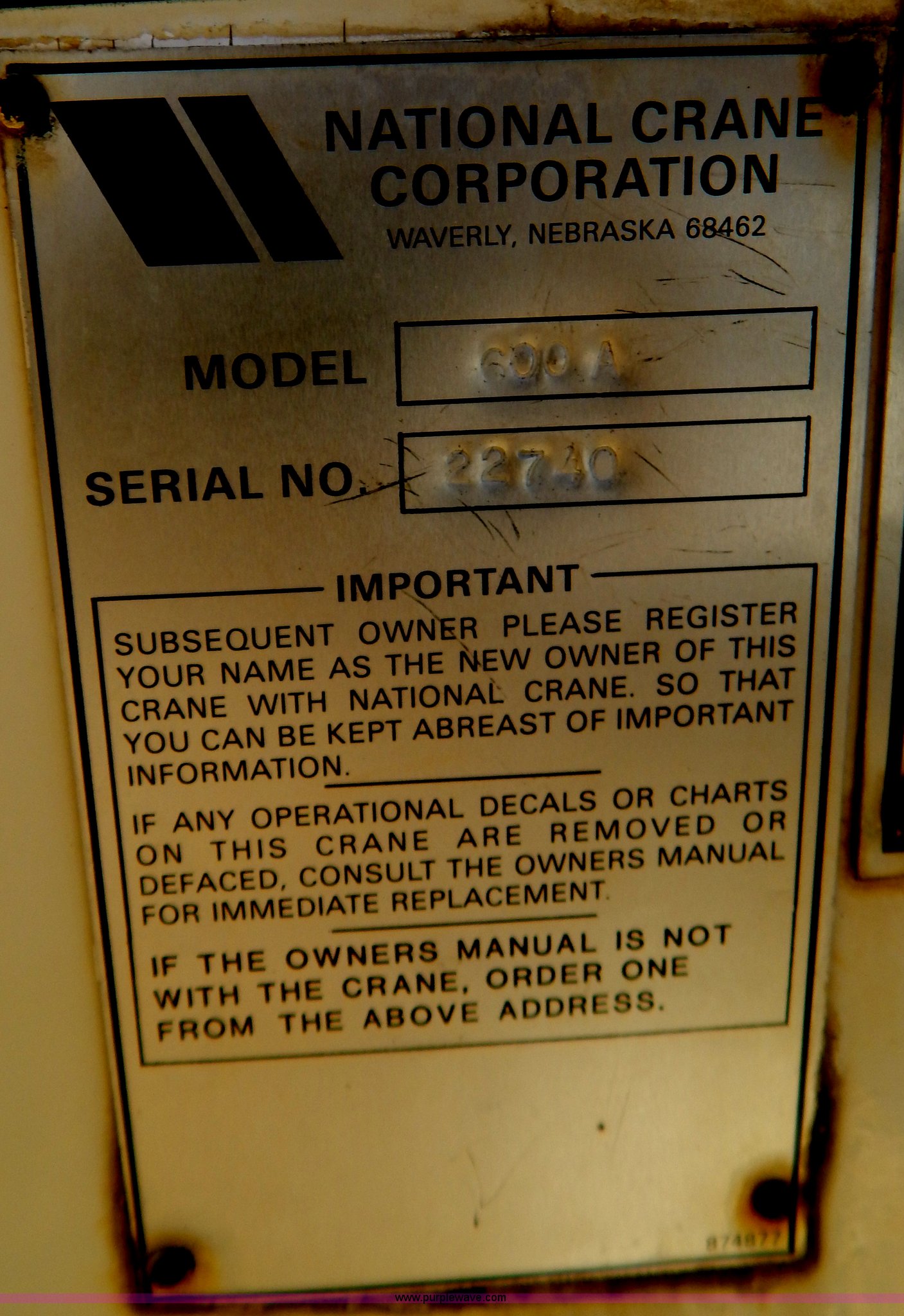 1998 Freightliner FL80 crane truck. 36,032 miles on odometer, 9,816 hours on meter, Cummins ISC 8.3L L6 diesel engine, Eaton Fuller nine speed manual transmission, AC and heat, National 600A series crane 65' maximum lift height, 55' maximum reach, (4) hydraulic outriggers, Does not have current inspection, 18'L x 8'W bed Wood deck, Rear D-ring tie downs, PTO, Dual 50 gallon fuel tanks, Pintle hitch, Air brakes, 275/80R24.5 tires, GVWR 48,000 lbs, FAWR 19,000 lbs, IAWR 17,000 lbs, RAWR 17,000 lbs, Unit# 615. 1FVXJLBB5WH991576. James H. Drew Corporation. 1578 E Boonville Street. Sedalia, MO 65301
