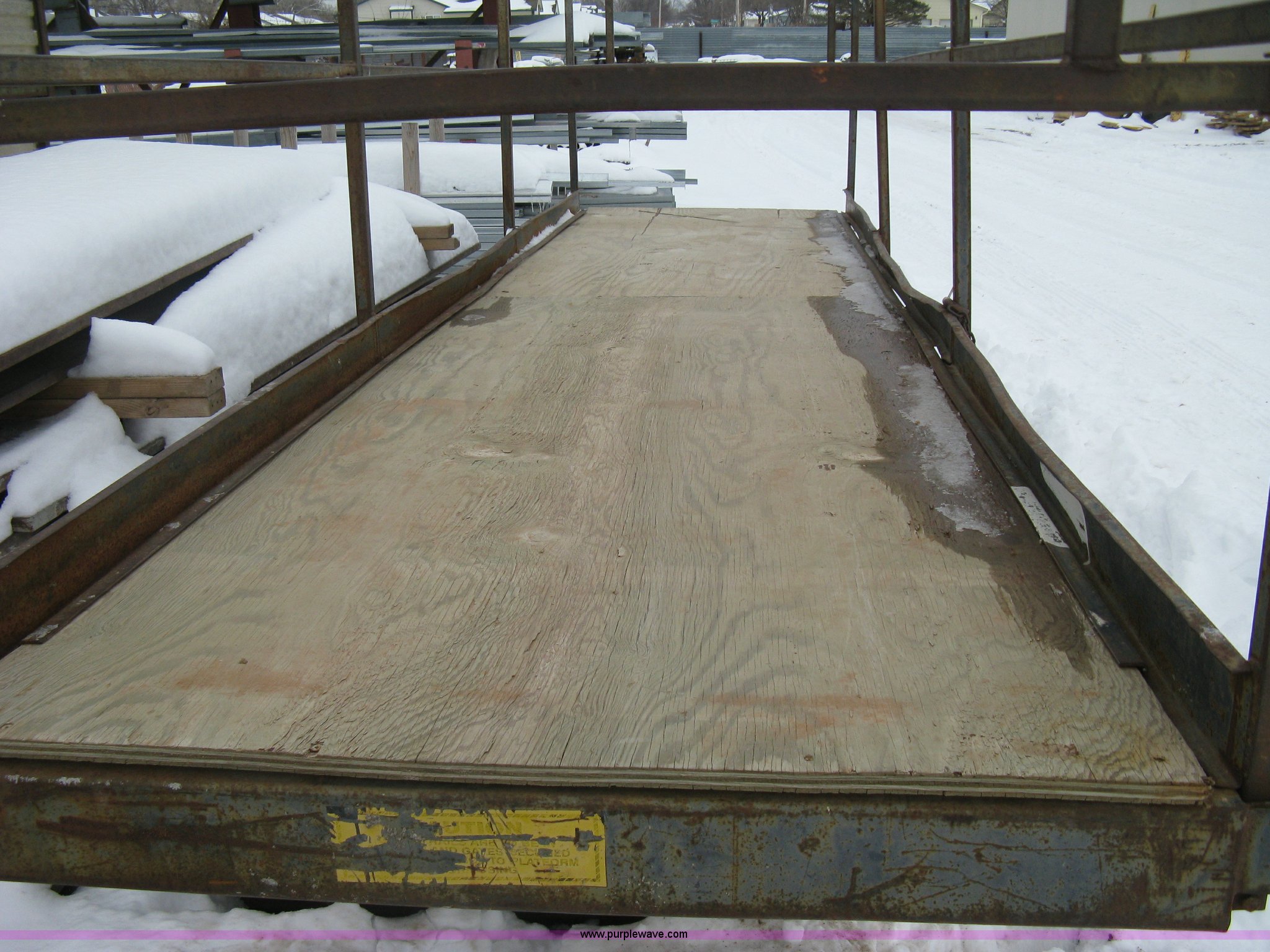 Purple Wave is selling a used Tools in Kansas. This item is a Star work platform with the following: 1,000 lbs capacity, Fork slots, 16'L x 48"W, 43"H railing, Plywood floor