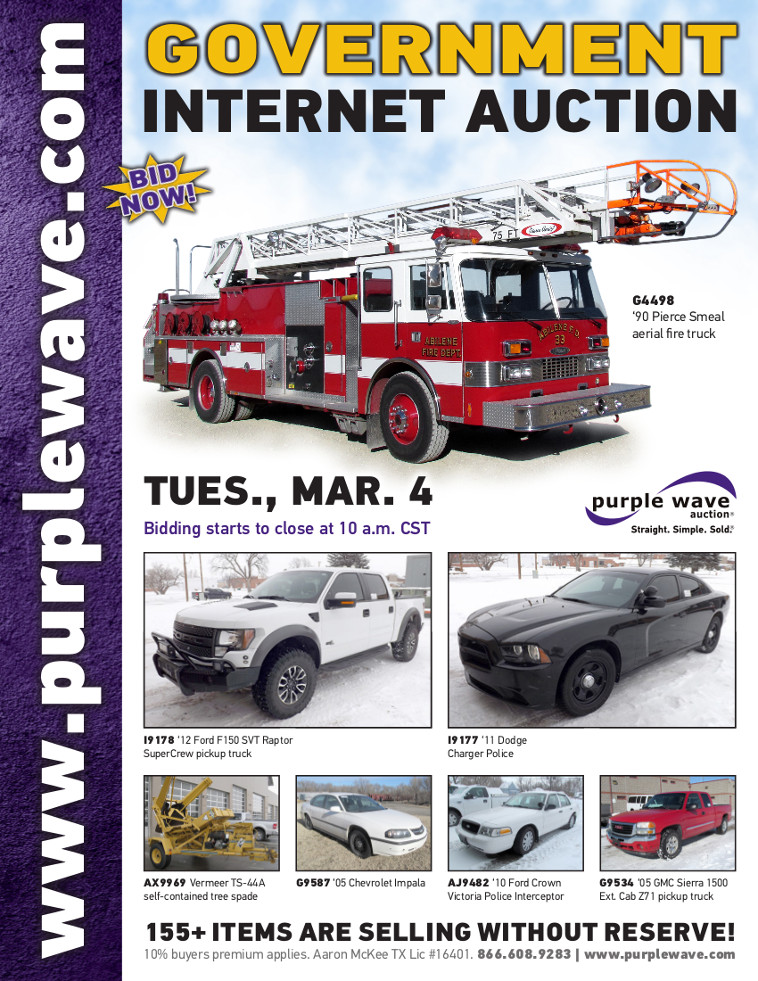 Bids over the amount of $10,000.00 are subject to Purple Wave's qualification process. Verification may include, but is not limited to, providing a bank letter of guarantee, credit references or credit card pre-authorization. Purple Wave may take any or all of these measures at any point during the auction. Purple Wave reserves the right to strike any Internet bid if the bidder refuses or fails to timely cooperate with Purple Wave's efforts to verify the bidder's qualification to bid. By registering to bid in this auction, you authorize all credit references, banks and credit reporting agencies to provide complete information about your credit to Purple Wave. For questions regarding Purple Wave's bid qualification process, please contact Amanda Hawk, Credit Specialist, at [email protected] or call 785.246.5718.