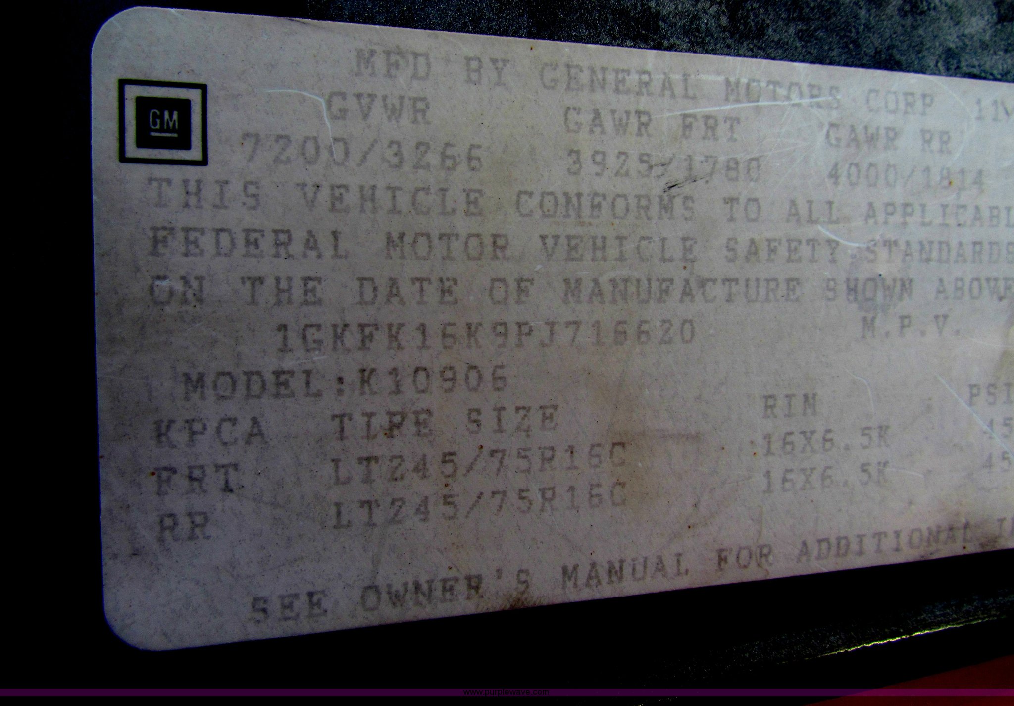 1993 Chevrolet Suburban K1500 SUV. 147,383 miles on odometer Not Actual Mileage, 5.7L V8 OHV 16V gas engine, Automatic transmission, Four wheel drive, AC and heat, Tilt, Cruise, AM/FM/cassette, Power windows, locks, and mirrors, 235/85R16 tires, Tekonsha trailer brake controller, 235/85R16 tires, Recently replaced Interstate battery, Interior/exterior cosmetic damage. 1GNFK16K4PJ334630. Marion County EMS. Marion, KS 66861