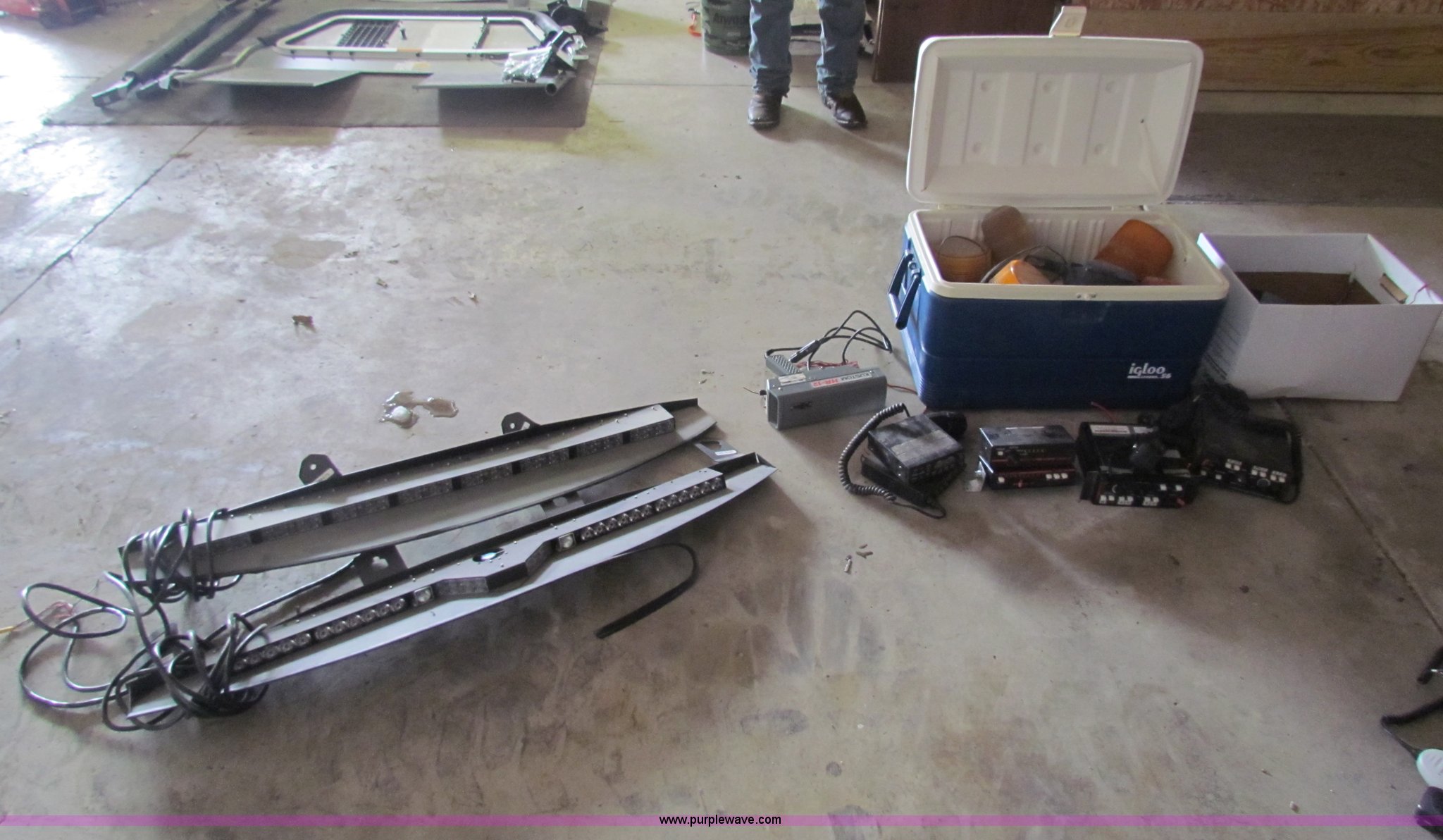 Purple Wave is selling a used Automotive Parts or Acces. in Kansas. This item is a Assorted lights and controls with the following: Sho-Me 21T9660, (2) Code 3, Model 389266, Code 3 Narrow Stix, Code Arrow Stix, Wheelen Supervisor bar, Arrow stick, Yellow beacon, Kustom H-12 radar, Bear scanner, CB radio and more