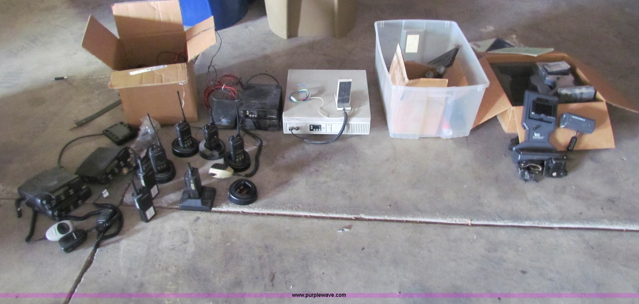 Purple Wave is selling a used Electronics in Kansas. This item is a (3) Motorola CDM1250 mobile radios with the following: 400 MHz, (3) Motorola GP300 hand-held radios, Charger, (4) Motorola HT1250 hand-held radios, Charger, Motorola Max Trac base station, Astron power station, 11 amps at 50% duty cycle, 7 amp continuous, Motorola Desk Trac base station, Eye witness camera system parts, (2) heads, Camera,