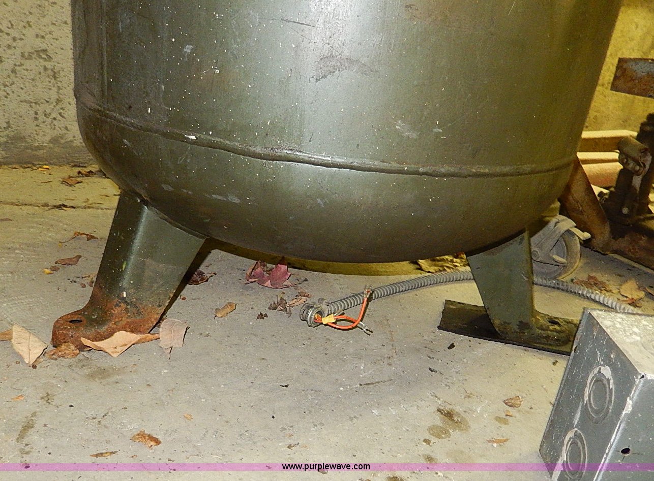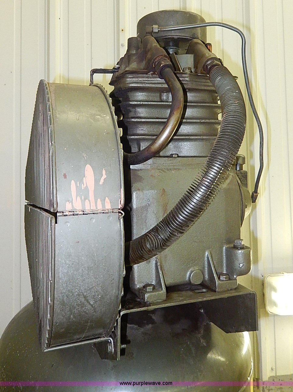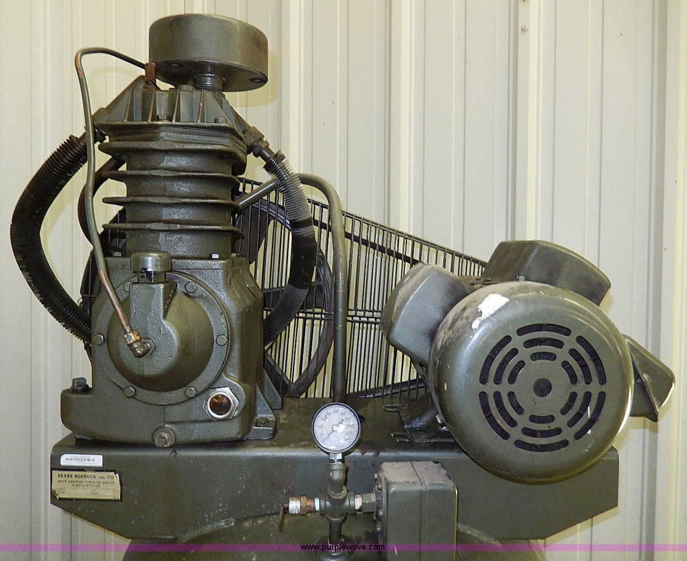 Purple Wave is selling a used Air Compressor in Kansas. This item is a 1982 Sears 80 gallon air compressor with the following: Model 106.175361, 5 HP single phase electric motor, 240V, Two stage, 150 psi maximum air capacity