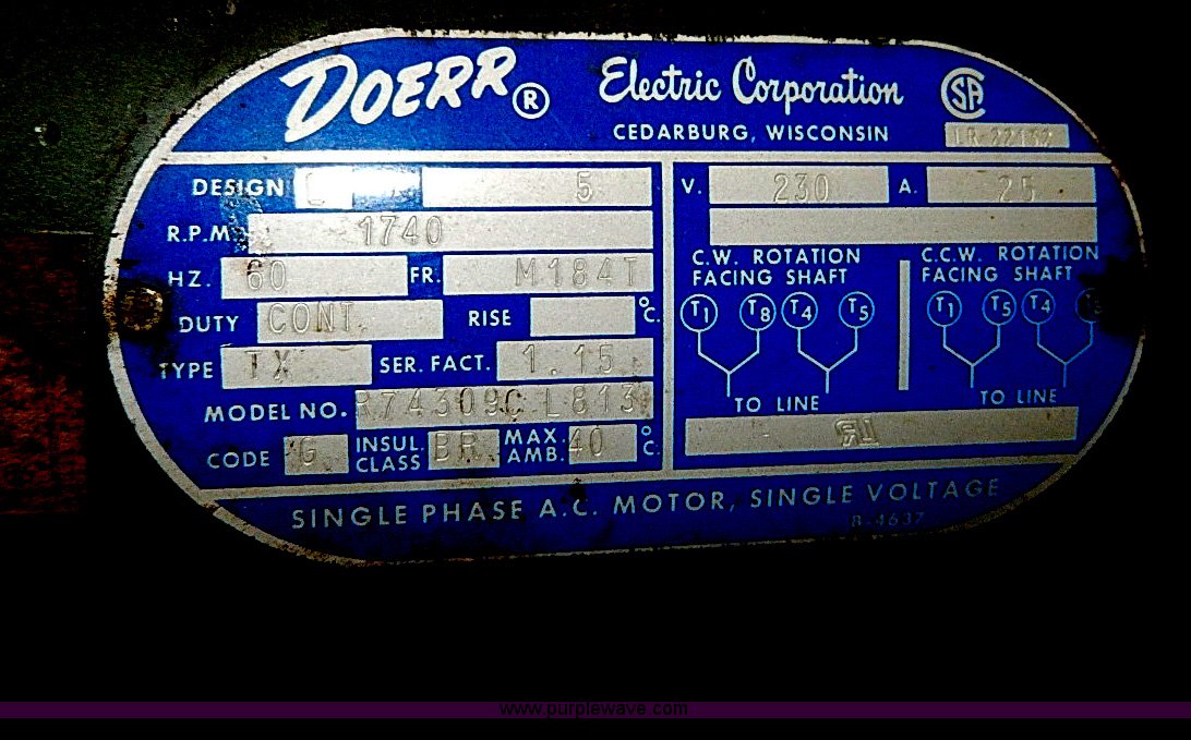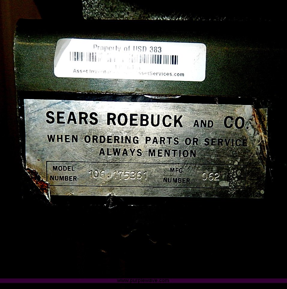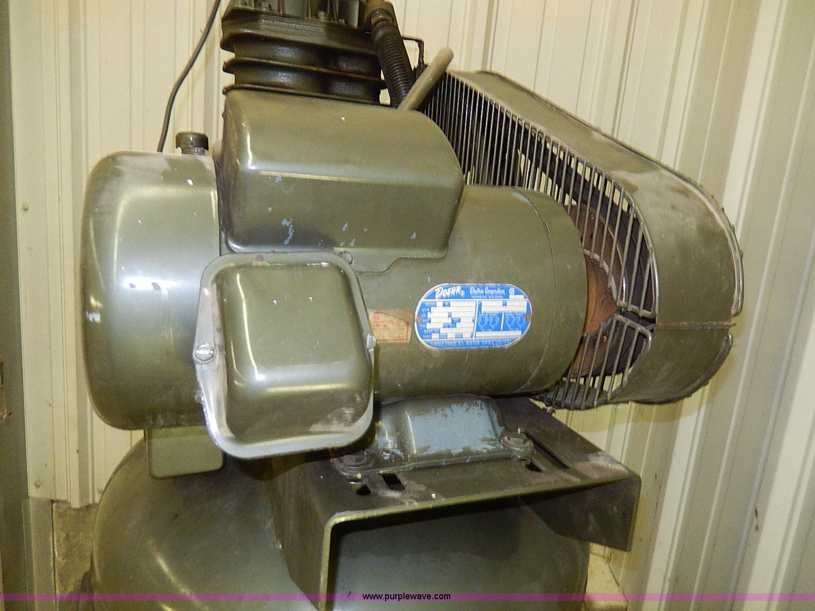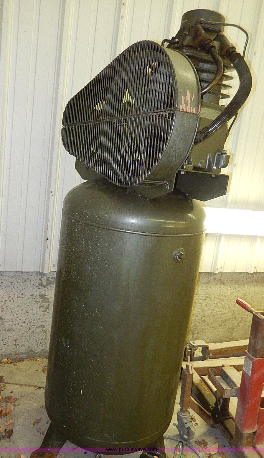 Purple Wave is selling a used Air Compressor in Kansas. This item is a 1982 Sears 80 gallon air compressor with the following: Model 106.175361, 5 HP single phase electric motor, 240V, Two stage, 150 psi maximum air capacity