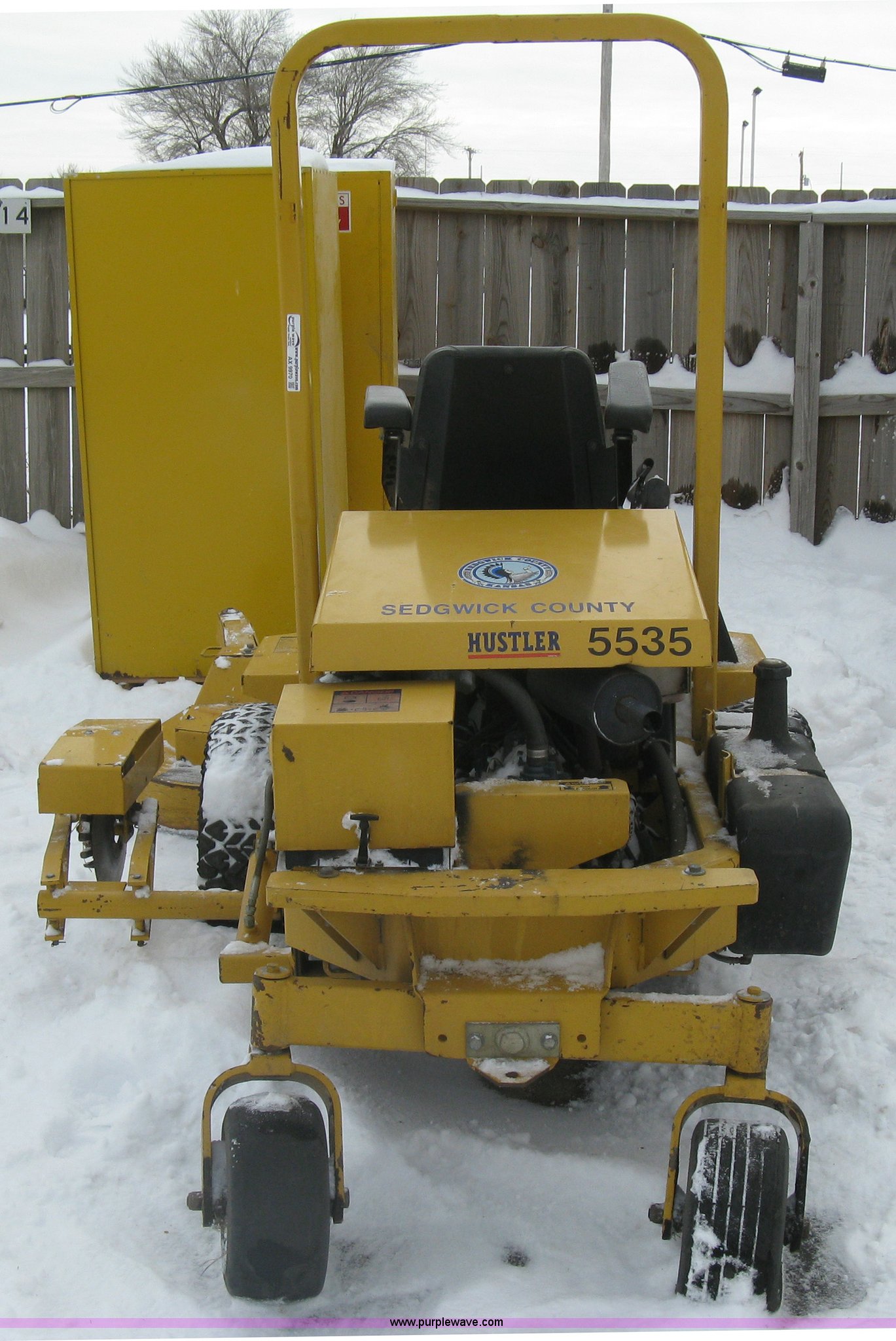 Purple Wave is selling a used Commercial Turf Mower in Kansas. This item is a Hustler 3400 ZTR lawn mower with the following: 1,702 hours on meter, Kubota 1.5L three cylinder diesel engine, Hydrostatic transmission, Open station, Suspension seat, Roll bar, 72" four-way quadcycler deck, Rear counter weight, Rear pin hitch, 23x10.50-12 NHS tires, Unit# 5535