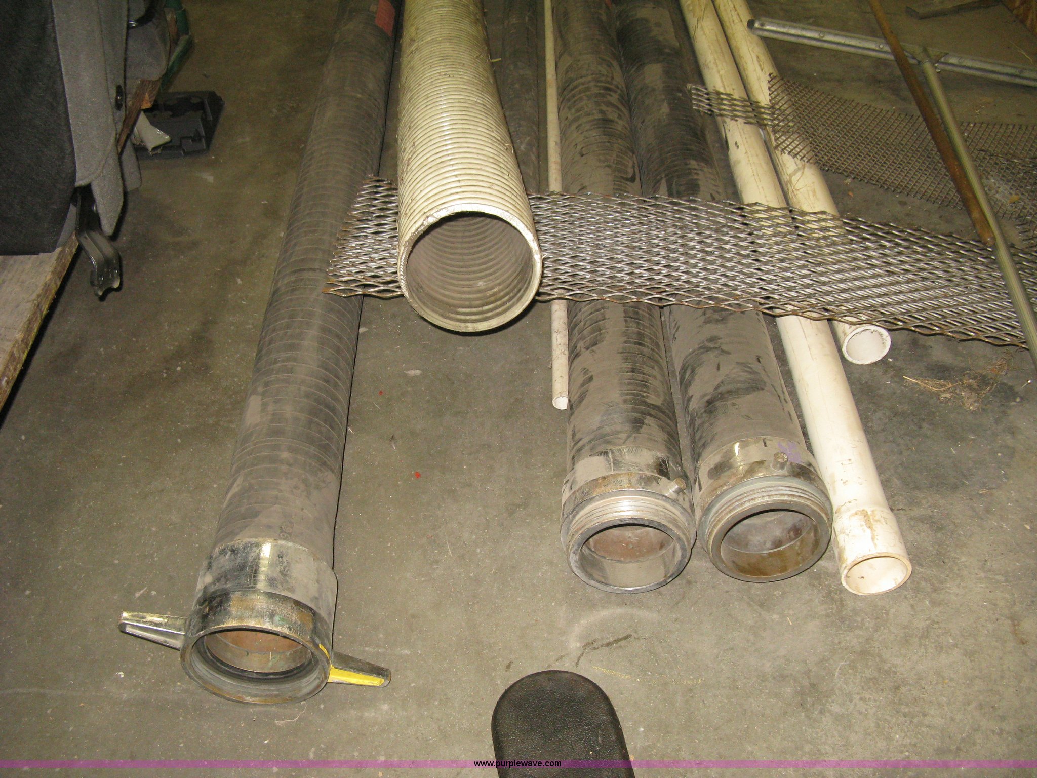 Purple Wave is selling a used Tools in Kansas. This item is a Assorted fire department suction hose sections with the following: 10'L x 6" diameter, (3) 10'L x 5" diameter, 8'L x 2.5" diameter, (2) 10'L x 2.5" diameter PVC