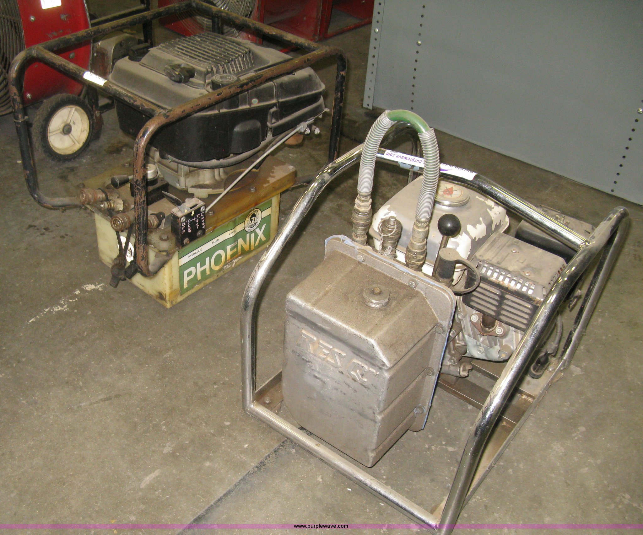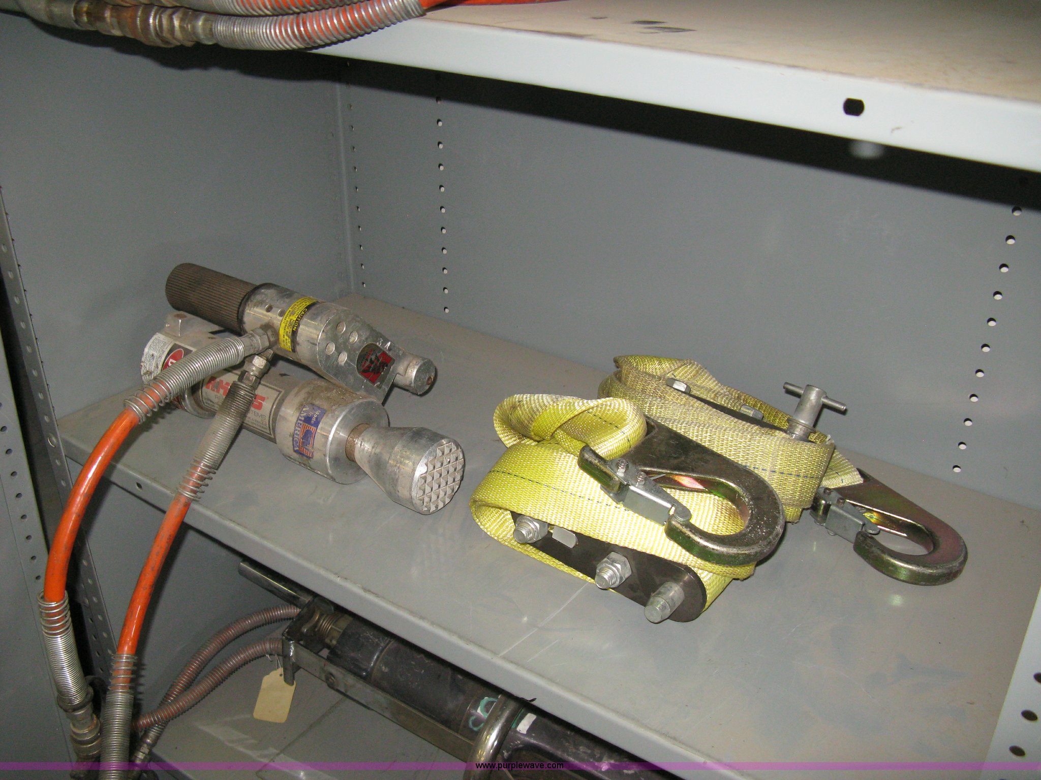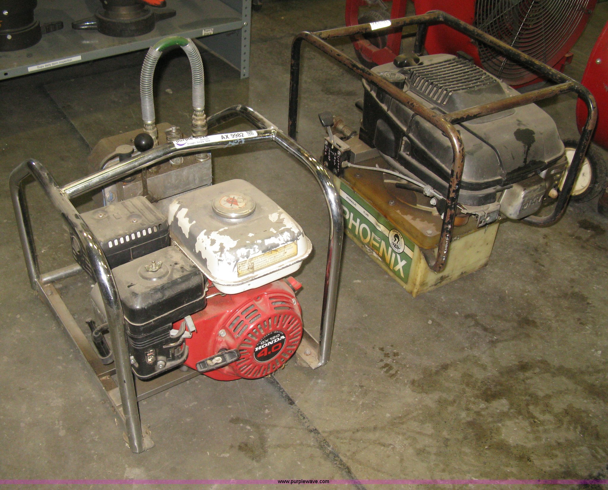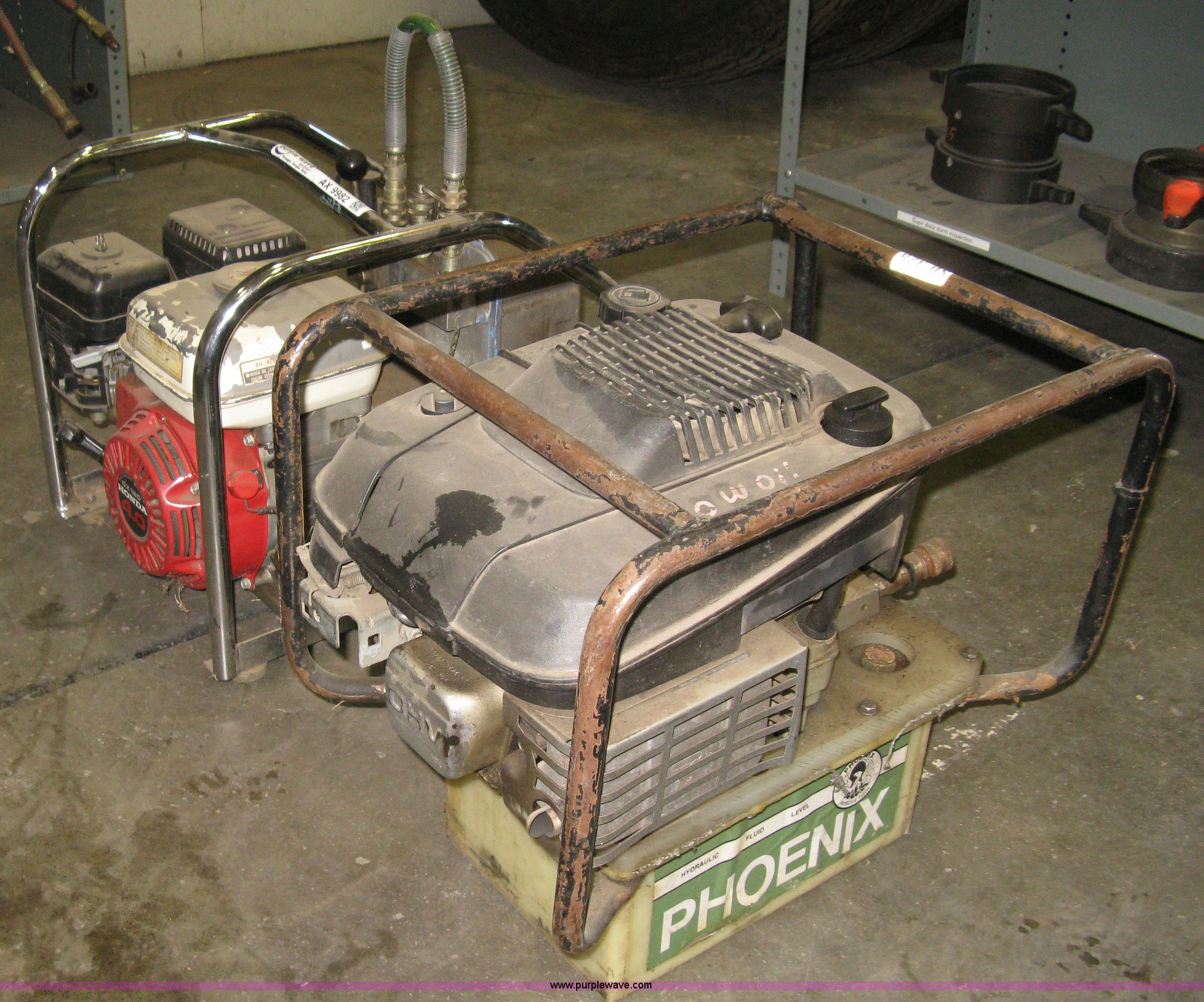 Purple Wave is selling a used Tools in Kansas. This item is a Hydraulic rescue tools with the following: Phoenix gas powered hydraulic power unit, Honda 4 HP gas powered hydraulic power unit, (4) assorted hydraulic hose, Assorted hydraulic extraction tools, (3) hydraulic rams, Various sizes, (2) hydraulic cutters, Hydraulic cutter/spreader combo, Accessory tool kit, (2) strap attachments, Hydraulic tool dolly cart, Shelf not included