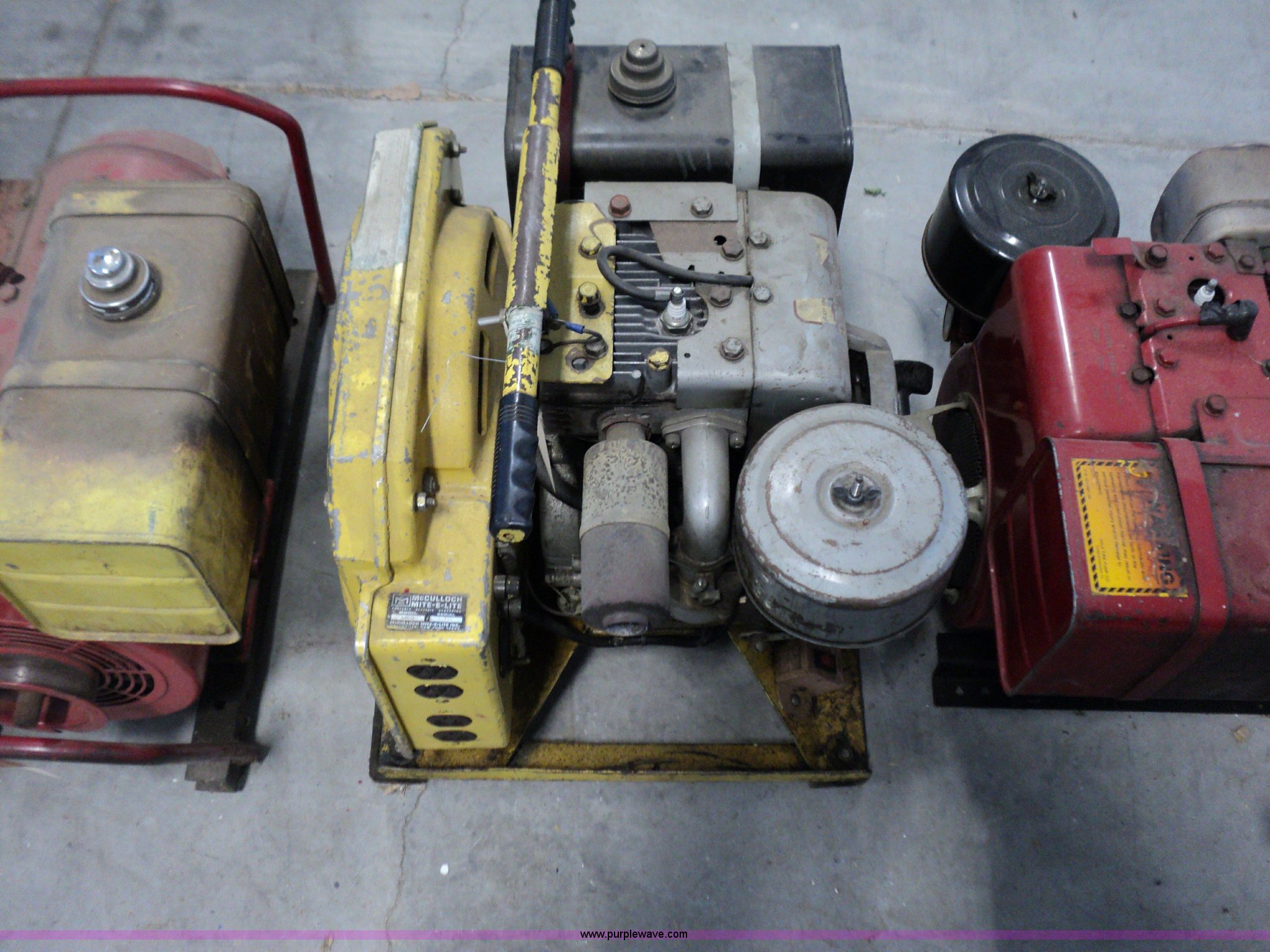 Purple Wave is selling a used Generator Set in Kansas. This item is a (2) generators with the following: Homelite, Serial 1640994, McCulloch Mite-E-Lite, Serial 16178, Unknown operating conditions, Unit# 6